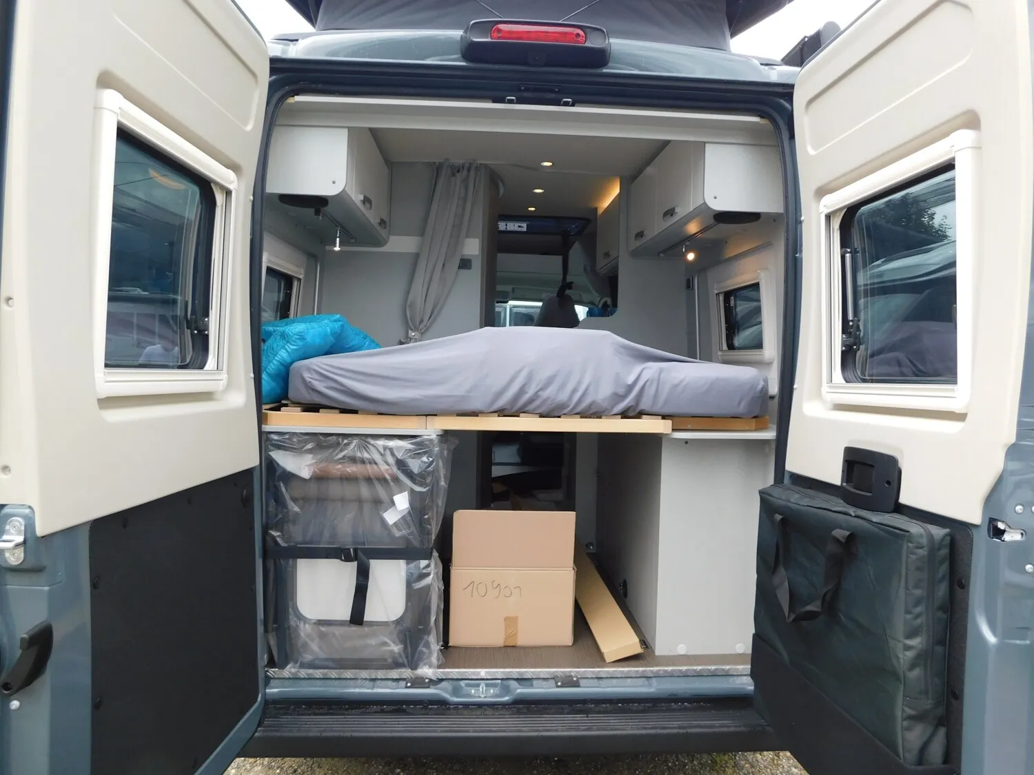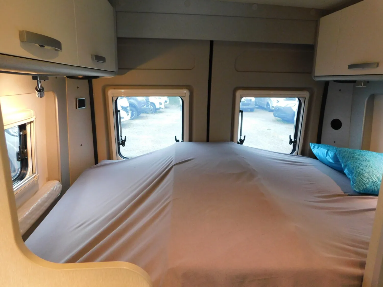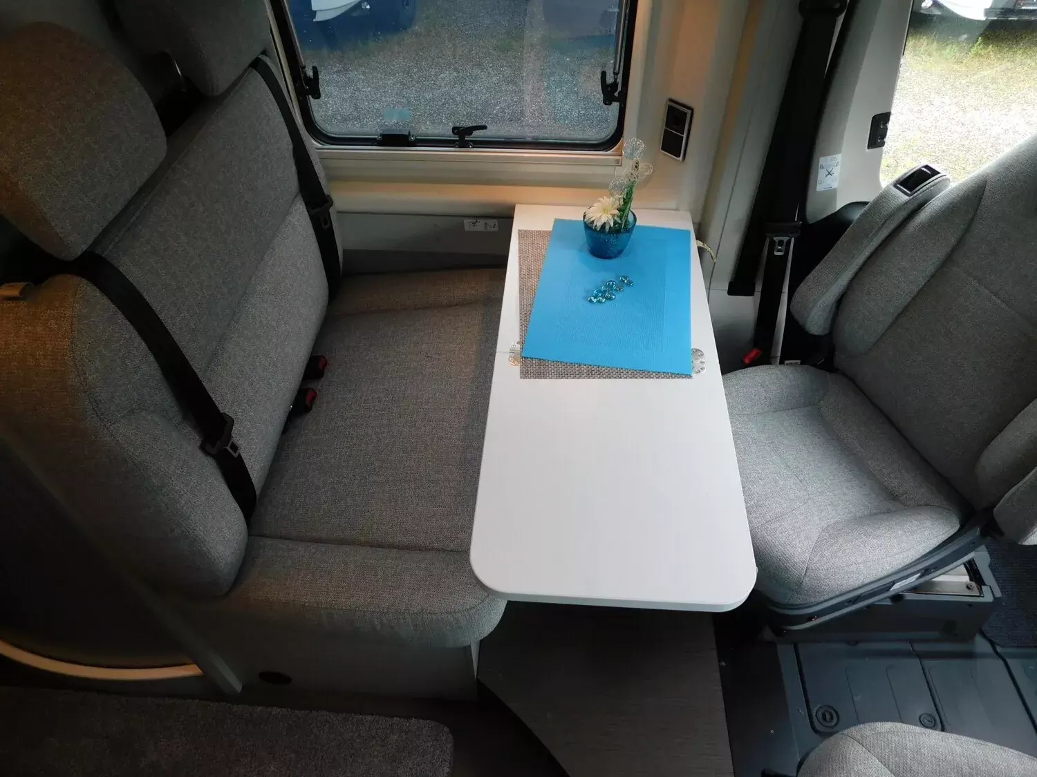- Ausstellfenster im Heck in Fahrtrichtung rechts inkl. Verdunkelungsrollo und Mückenschutz