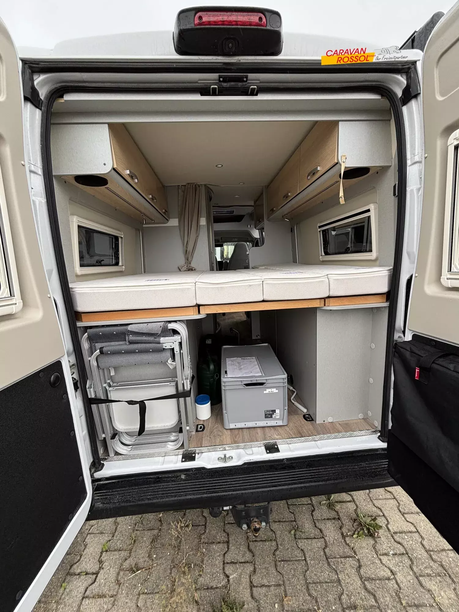 - Ready to camp Paket (Maxi-Chassis) (16" Leichtmetallräder (für Maxi-Chassis/Automatikgetriebe), Faltverdunkelung für Fahrerhaus, 2 x 230 V / 1 x 12 V Zusatzsteckdosen, Wohnwelt "HOME" (2 Kissen und Stofftasche))