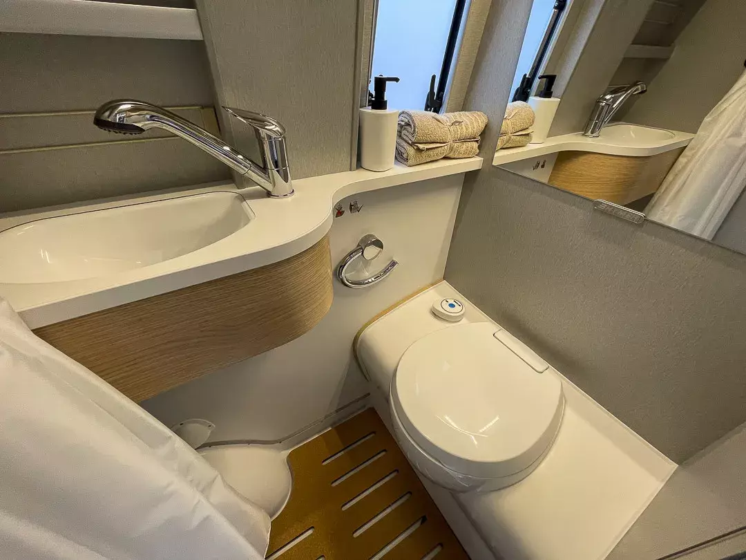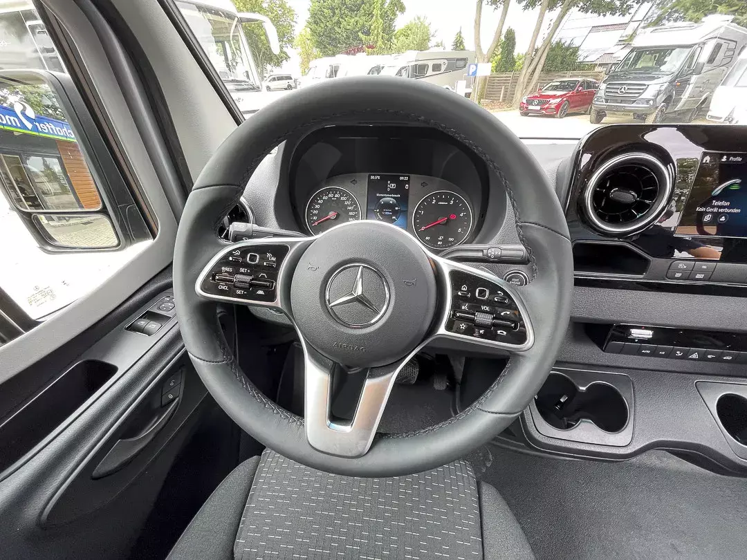 Angetrieben von einem 2,0-Liter-Mercedes-Benz-Motor mit 170 PS und Automatikgetriebe, überzeugt der Free S 600 mit souveränem Fahrverhalten. Die umfangreiche Ausstattung umfasst unter anderem Klimaanlage, Lederlenkrad, Sitzheizung, Markise, Multifunktionslenkrad, Tempomat, Einparkhilfe mit 360°-Kamera, Regensensor, Zentralverriegelung und zahlreiche Assistenzsysteme wie aktiven Spurhalte- und Abstandsassistenten, Totwinkel-Assistent und Verkehrszeichenerkennung.