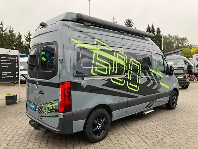 - Edition Campus: Mercedes-Benz 125 KW/ 170 PS, Pastell Blau-Grau, Automatikgetriebe 9G-TRONIC, 92 l Kraftstofftank, Außenspiegel elektrisch verstell-/beheizbar, Kühlergrill Chrom, 16" Leichtmetallräder (schwarz) mit Ganzjahresbereifung, Halbautomatische Klimaanlage TEMPMATIC, Lederlenkrad, Tempomat, Aktiver Abstands-Assistent DISTRONIC PLUS, Aufstelldach in Wagenfarbe, Markise, Designbeklebung Fenster Füllung Schwarz matt (vollflächige Folierung im Fensterbereich der Seitenwände), MBUX 10,25" Multimedia System inkl. Navigationen, DAB+, Touchscreen, Rückfahrkamera für MBUX, Faltverdunkelung für