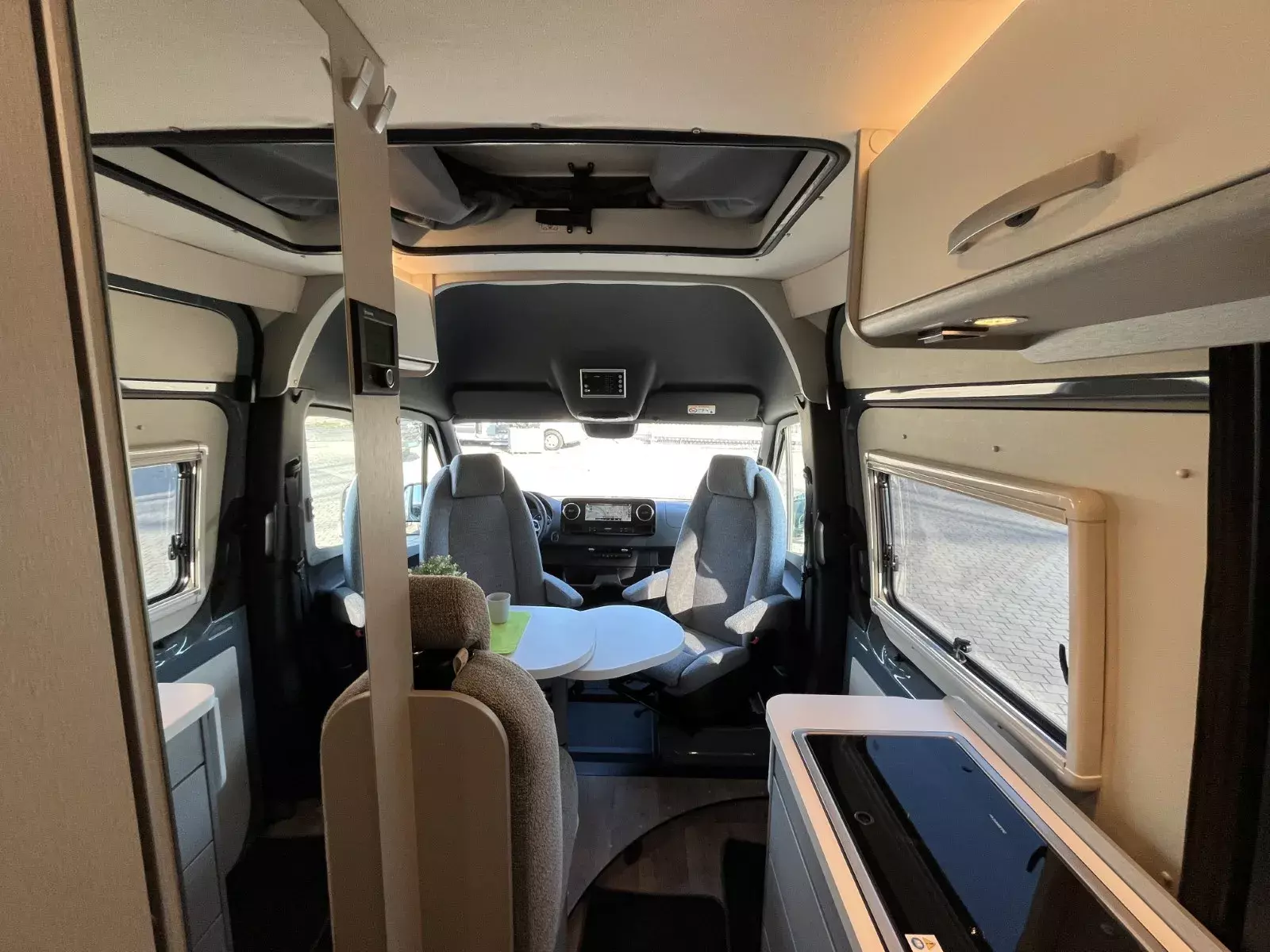 * Für entspannte Fahrten sorgen das große MBUX-Display mit Navigation, DAB+, Rückfahrkamera und modernen Assistenzsystemen wie DISTRONIC PLUS, Spurhalteassistent, Fernlichtautomatik, Verkehrszeichenerkennung und Totwinkelwarnung. Die hochwertige Camper-Ausstattung mit Klapptisch, Stühlen, Safe und vielen praktischen Upgrades macht den Van sofort urlaubsbereit.