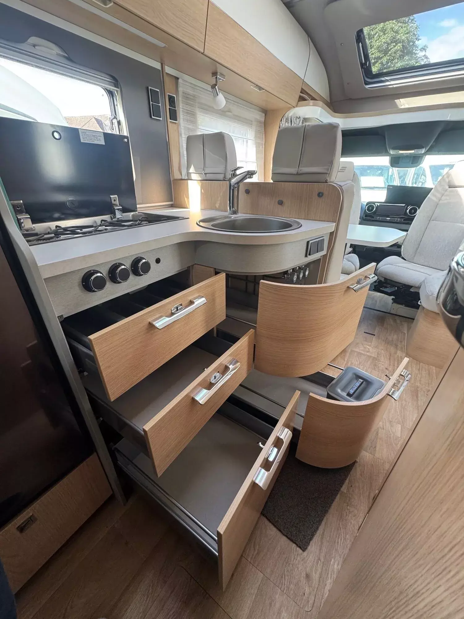 - Autarkie-Paket Lithium XL (HYMER-Smart-Battery-System 2.0 - Erweiterung: Zweites Batteriemodul Aufbau 80 Ah LFP inkl. Zusatzlader (Gesamtkapazität 160 Ah), HYMER-Smart-Battery-System 2.0 - Erweiterung: Drittes und Viertes Batteriemodul Aufbau 2 x 80 Ah LFP (Gesamtkapazität 320 Ah), Wechselrichter 12 V auf 230 V, 1800 Watt mit Netzvorrangschaltung)
