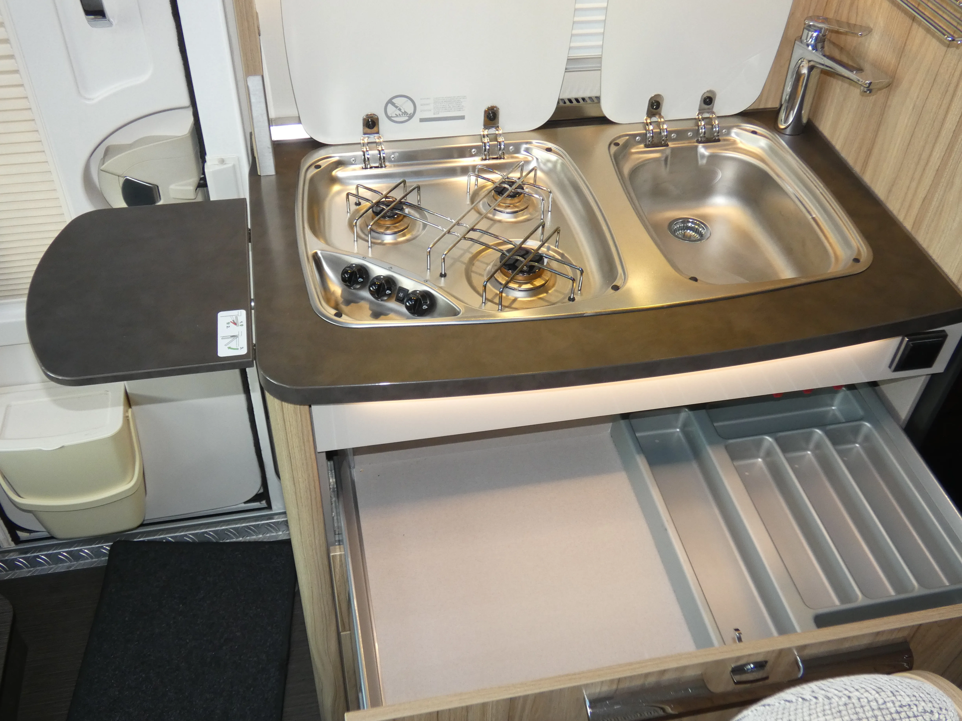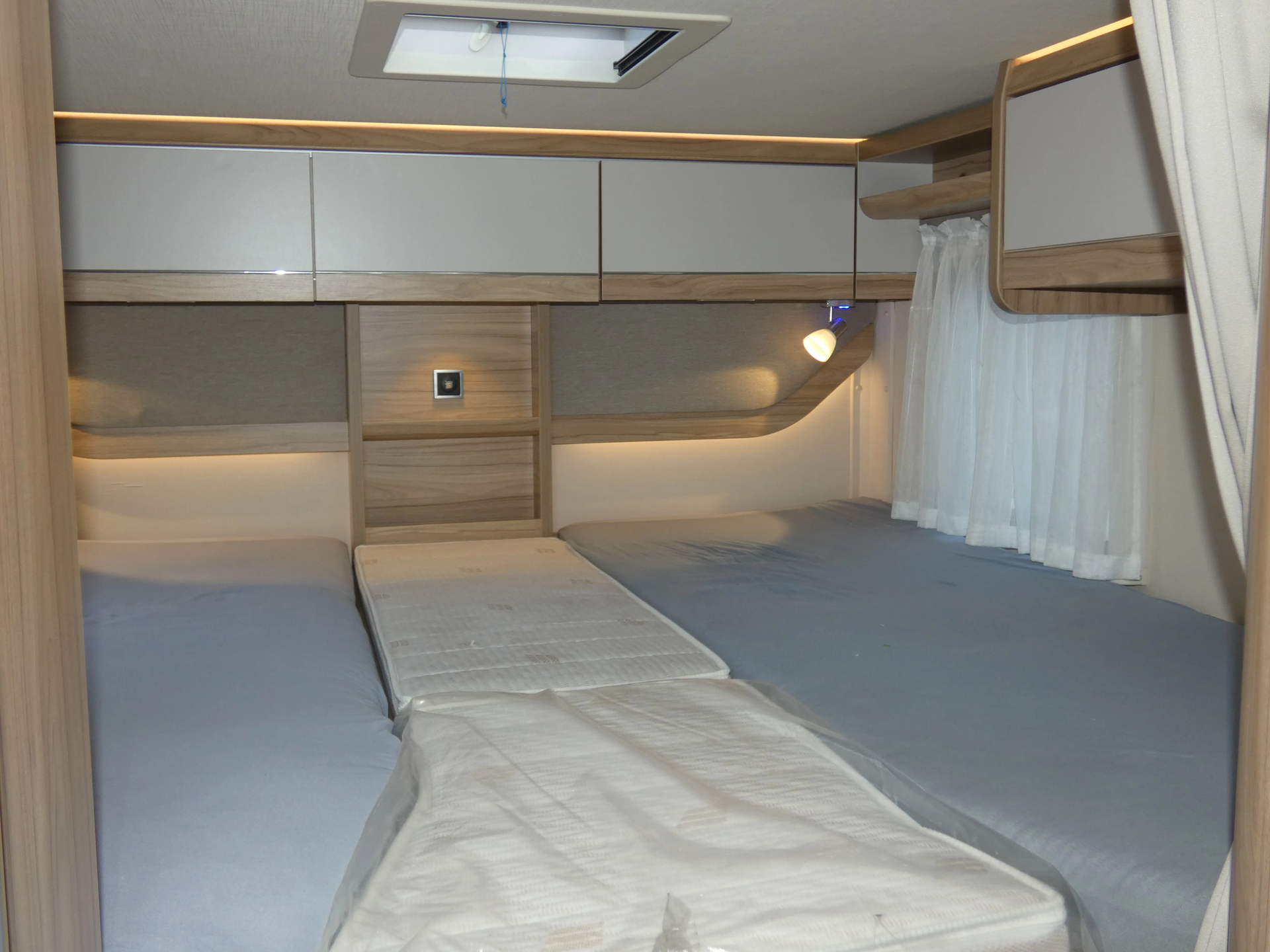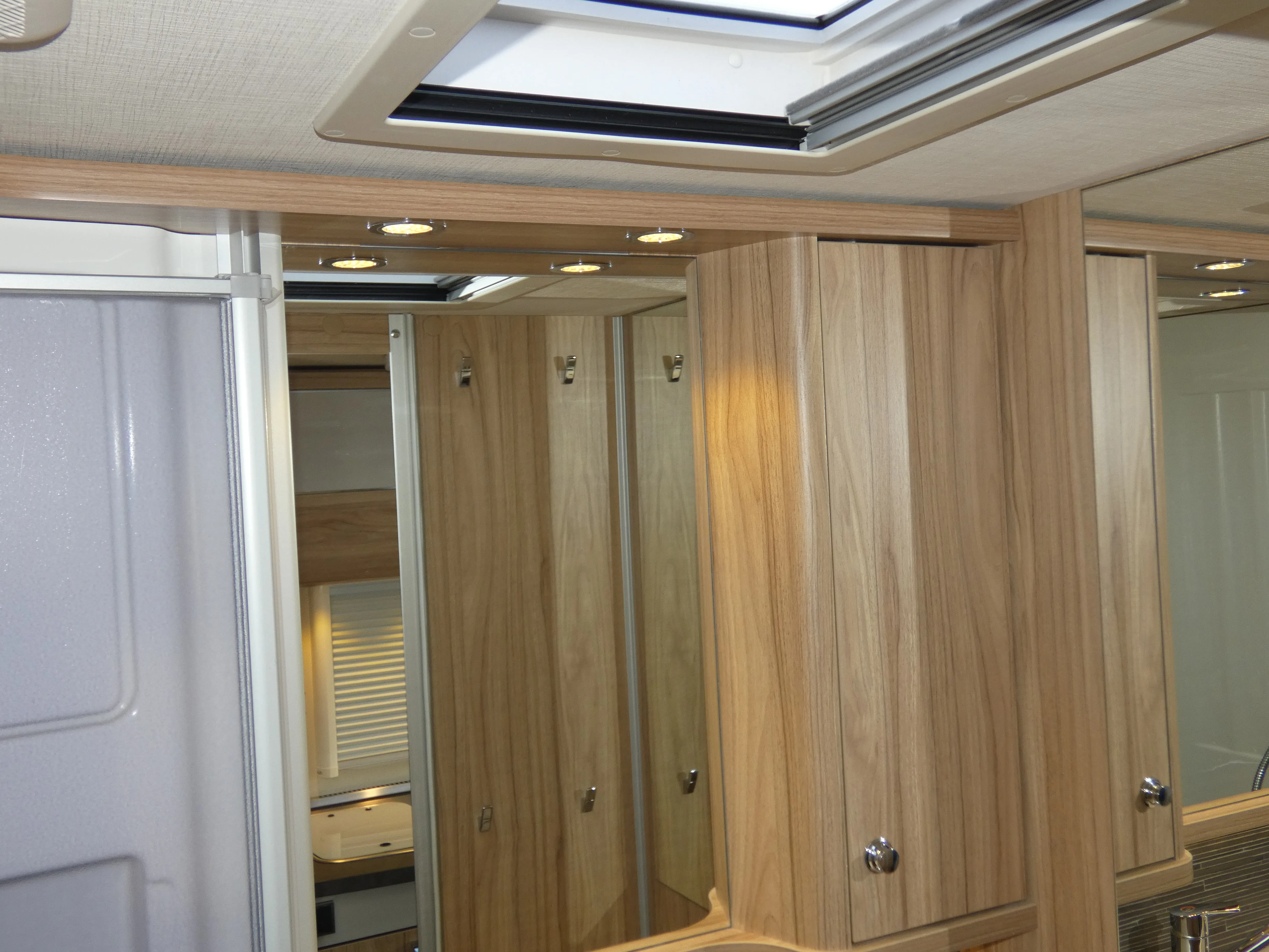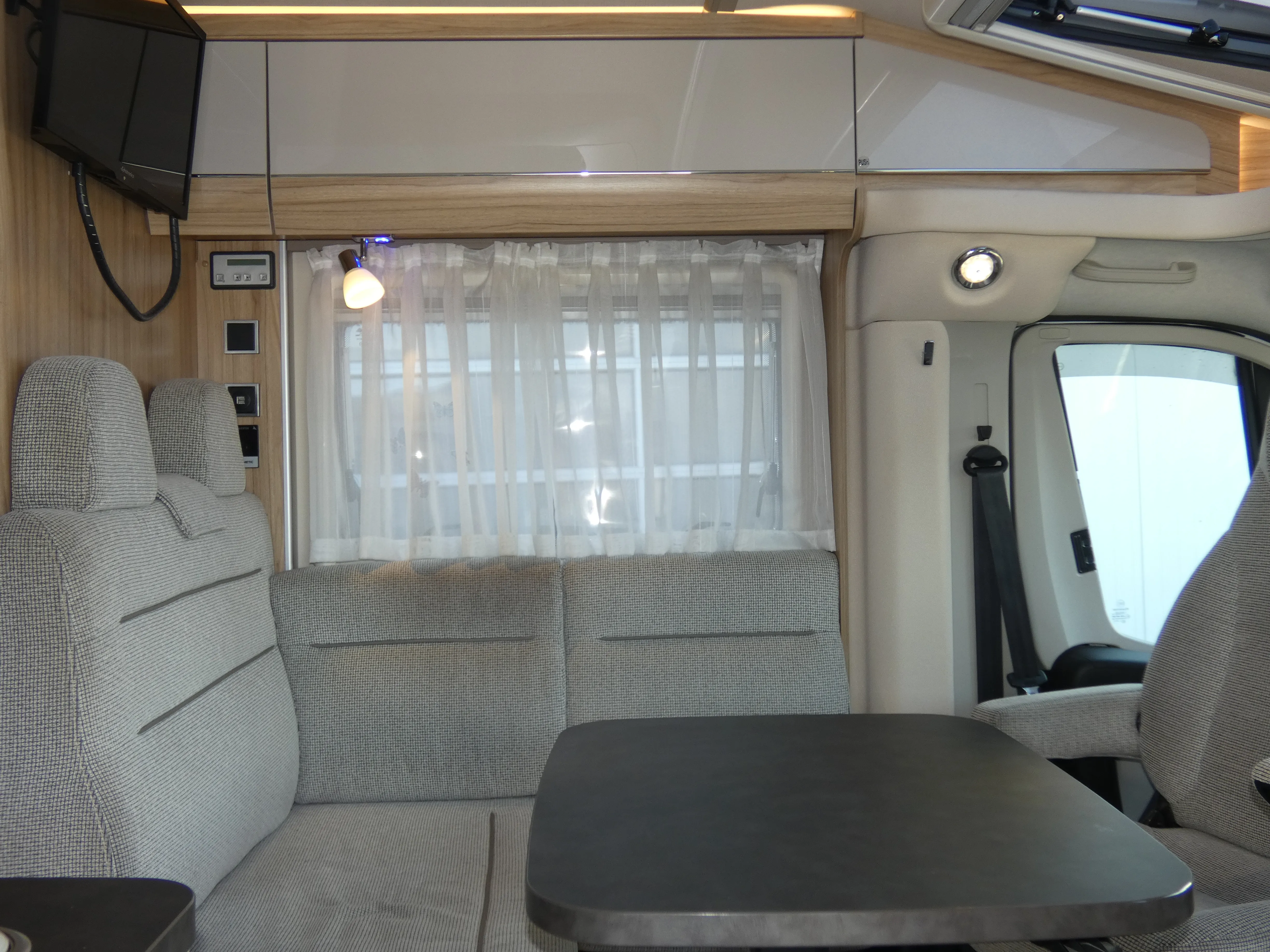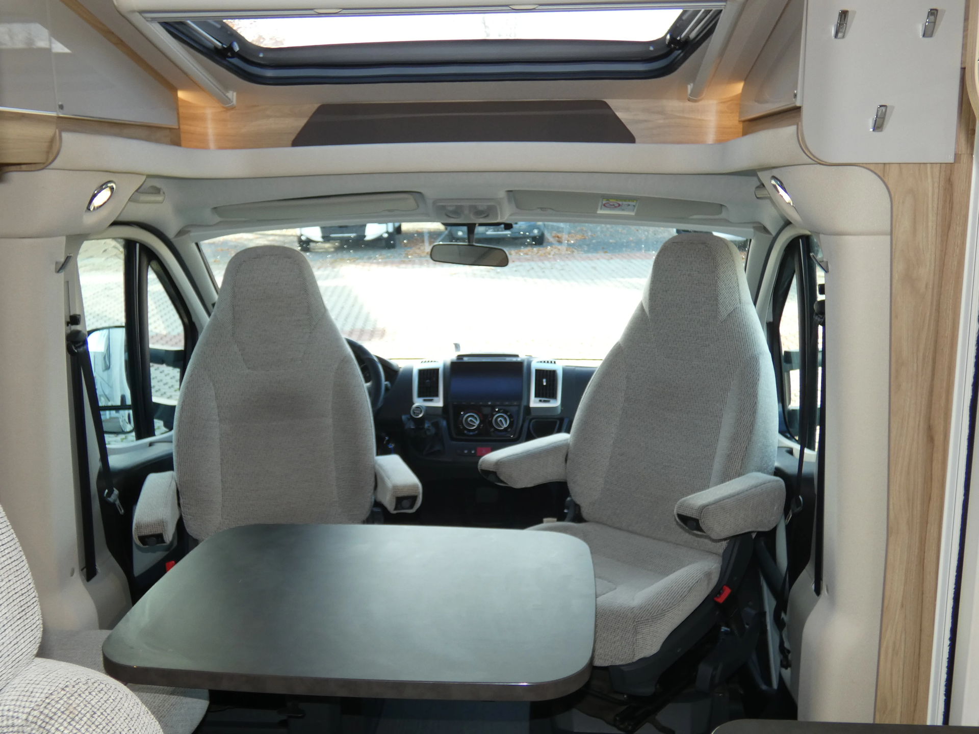 Exsis T Komfort-Line-Paket: Klimaanlage m. Pollenfilter, motorbetrieben / Spoiler lackiert / Tempomat / Fliegenschutzrollo an Eingangstür / Panoramadachhaube über FH, manuell ausstellbar / Fenster in Eingangtür m. Verdunkelungsrollo und integr. Mülleimer / 160 L Jumbo Kühlschrank.