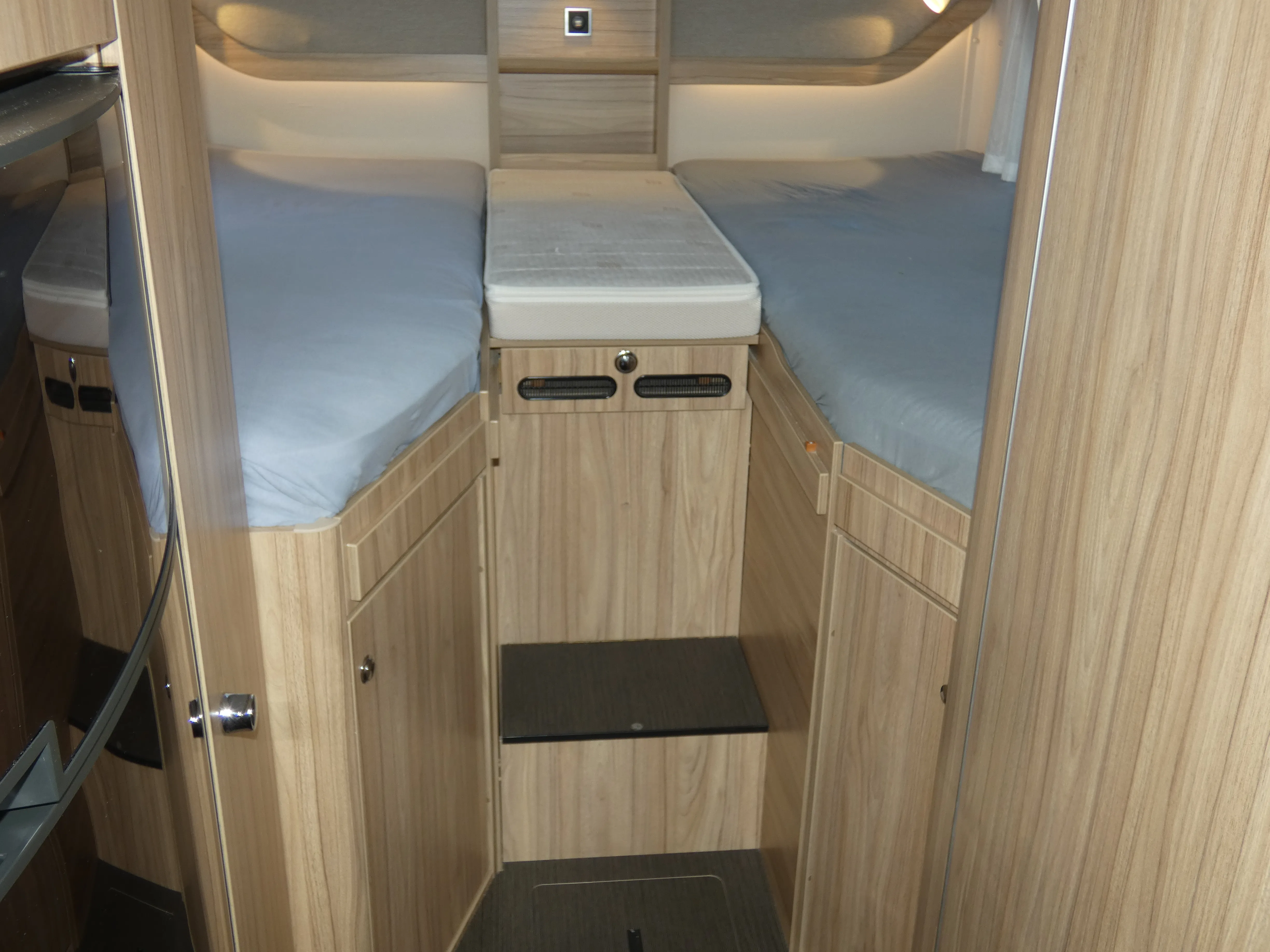 - Zusatzpolster zwischen Längseinzelbetten mit Aufstiegsleiter.