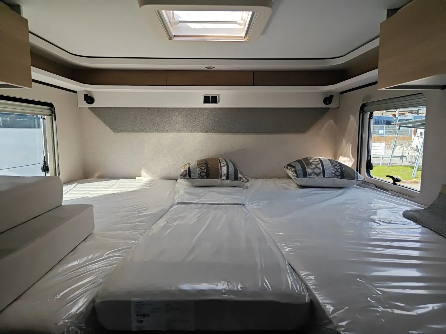 - Aufbau-Paket (Ambiente-Beleuchtung, 4 x 230 V / 1 x 12 V / 1 x Doppel-USB Zusatzsteckdosen, Spannbettlaken nach Maß für Heckbetten individuell an Matratzen angepasst, Raumtrennvorhang im Heckbereich, 2 Kissen mit Bezug)