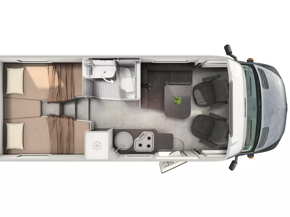 Das Xperience-Designpaket mit Tenoritgrau Metallic, schwarzen Leichtmetallrädern und LED-Scheinwerfern sorgt für einen hochwertigen, sportlichen Auftritt. Innen überzeugt die Wohnwelt „Indiana“, eine durchdachte Raumaufteilung mit Seitensitzgruppe, festen Einzelbetten und einer großzügigen Heckgarage.
