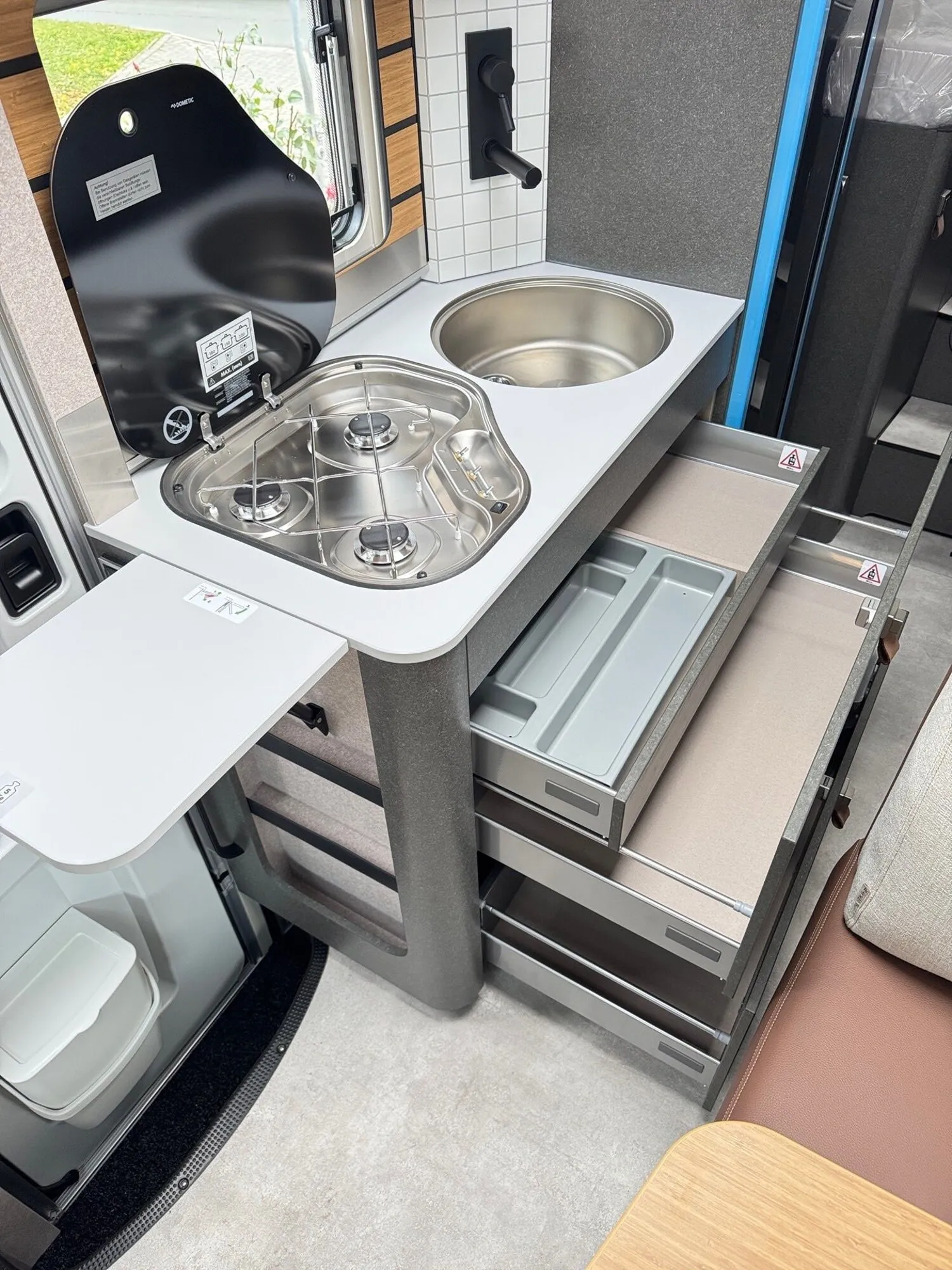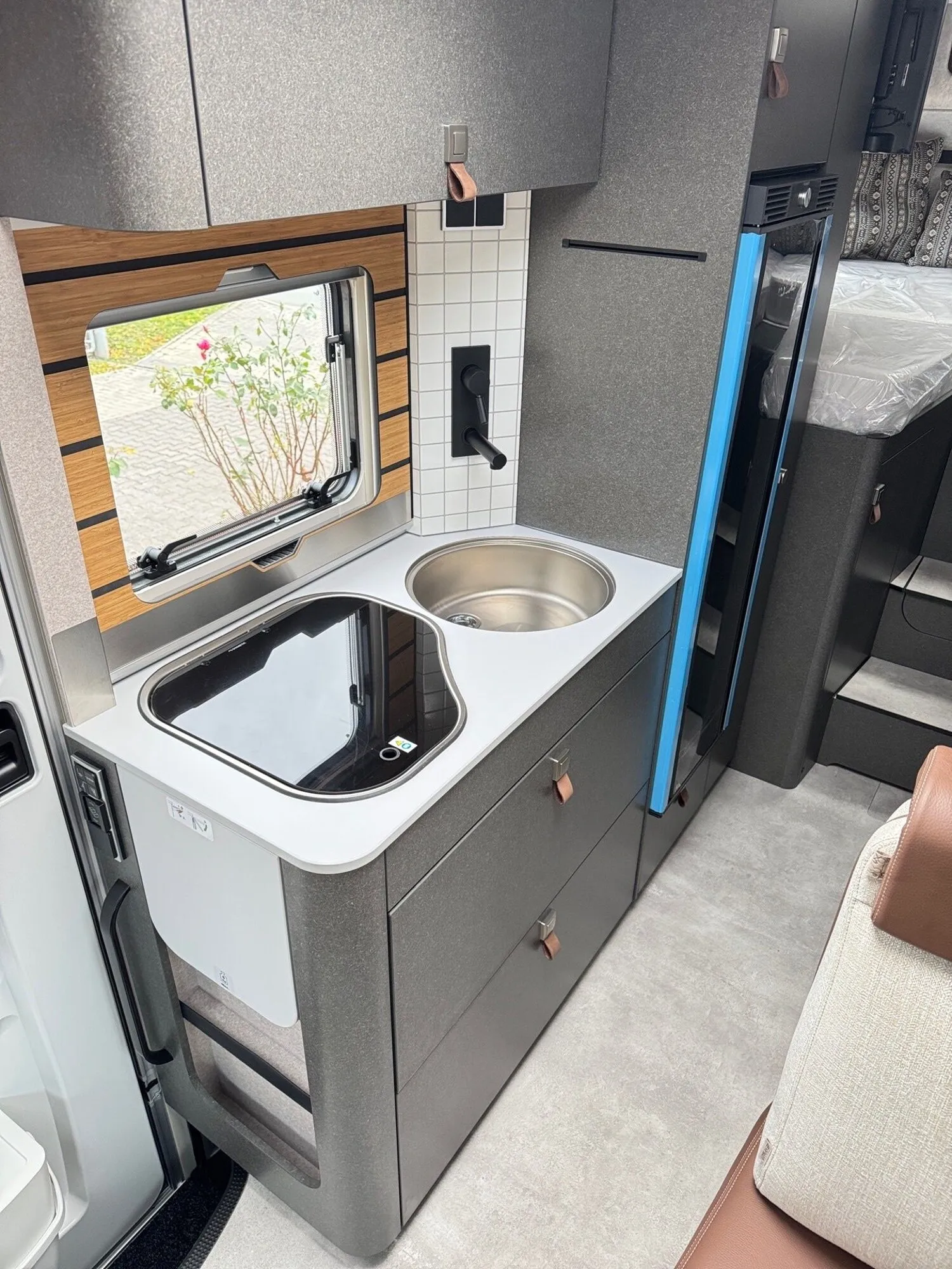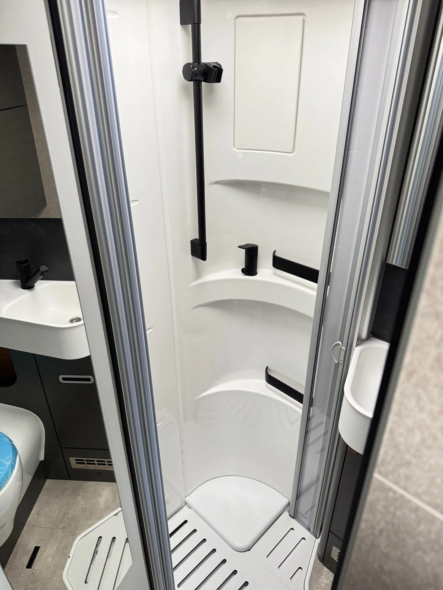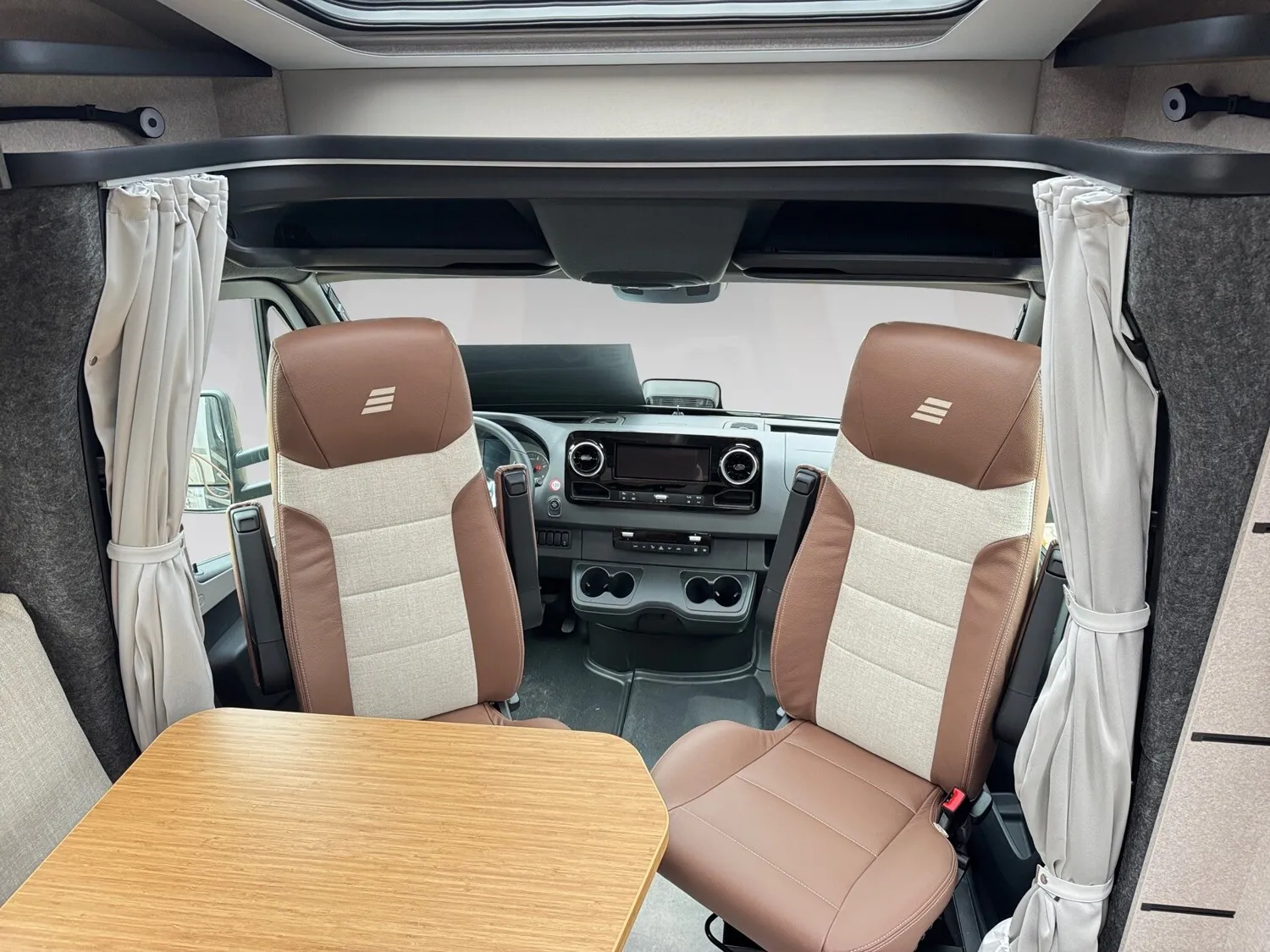 - Arktis-Paket (Gas-Warmwasserheizung inkl. Fußboden- und Garagenbodenheizung, Wärmetauscher für Gas-Warmwasserheizung, Wärmetauscher-Vorbereitung Mercedes-Benz, Komfort-Eingangstür mit Fenster, Verdunkelungsrollo, integriertem Mülleimer und 2-fach Verriegelung, Isolier-Trennvorhang für Fahrerhaus, doppellagig genäht, Isoliermatte für Fahrerhaus-Fußraum, lose beigelegt, Zuheizer (unterstützt die Heizung beim Erwärmen des Fahrzeugs), Riffelblechboden in Heckgarage)