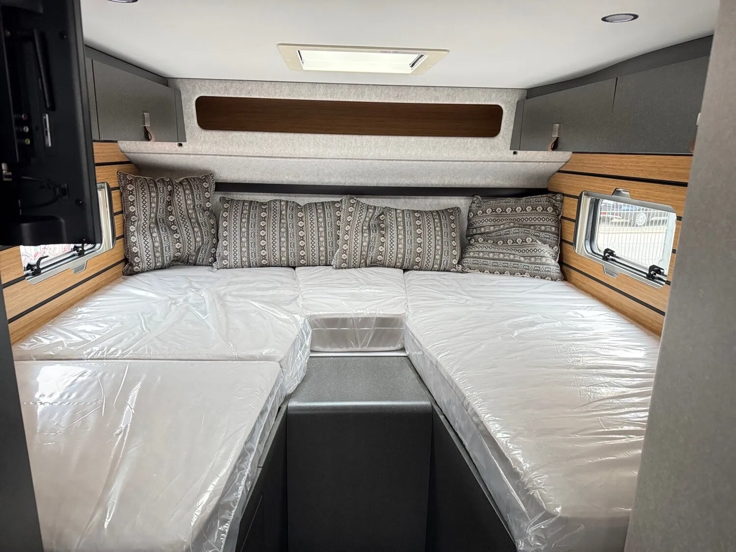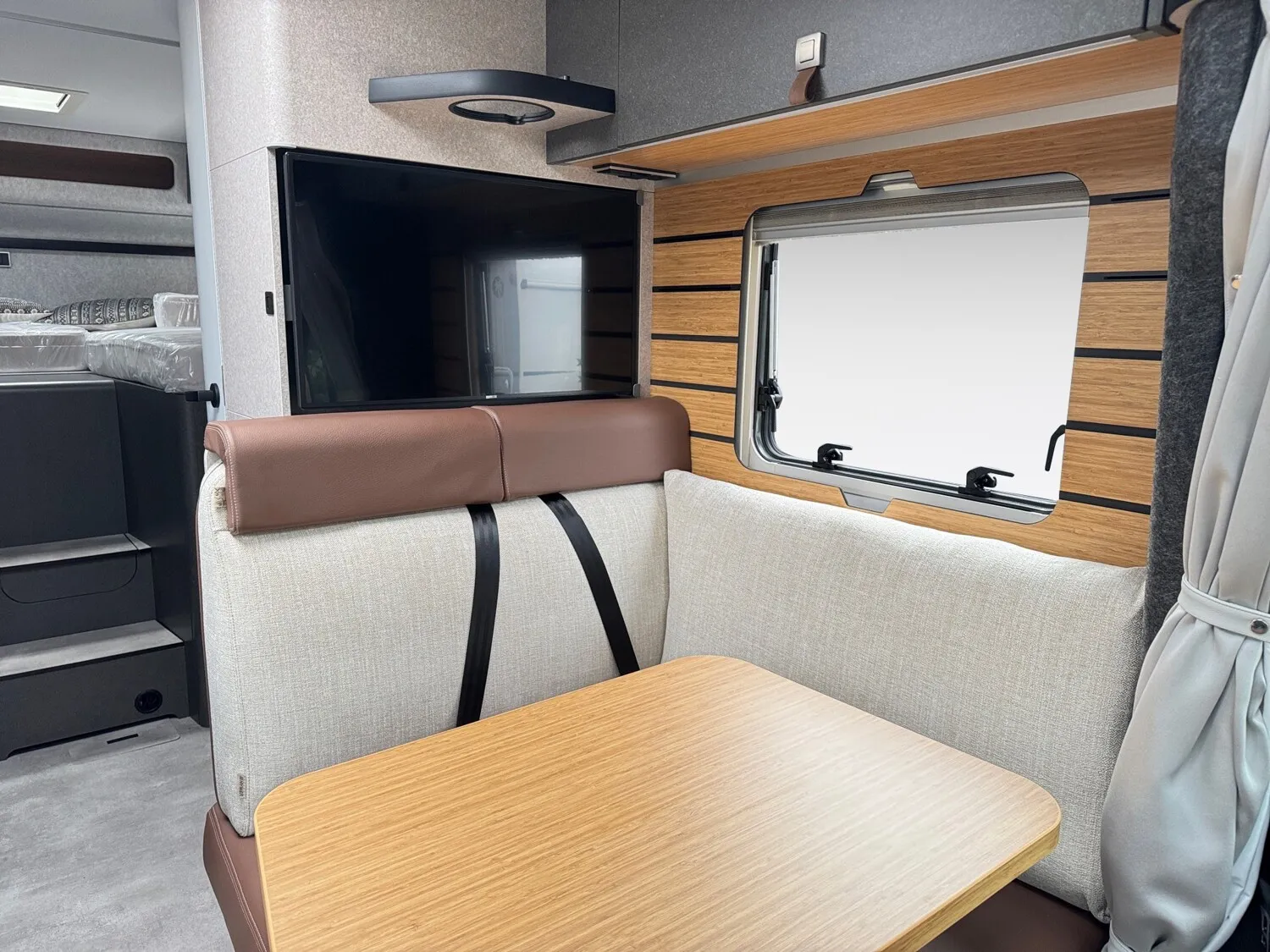- Wohnkomfort-Paket 4 (Schlafsystem mit Tellerfederrost für Heckbett(en), Spannbettlaken nach Maß für Heckbetten individuell an Matratzenkonturen angepasst, Filzverkleidung in Heckgarage, Einlegeboden in der Dusche für ebenen Laufboden, 4 Kissen mit Bezug, Ambient-Light-System: Mehr-Ebenen Lichtsystem mit dynamischer und individueller Steuerung der Beleuchtung (inkl. Lichttemperatur) sowie stimmungsvoller Sockelbeleuchtung, Lichtpaket (Multifunktionale Pendelleuchte sowie eine Ambiente-Leseleuchte für die Multifunktionswände), 4 x 230 V / 1 x 12 V Zusatzsteckdosen)