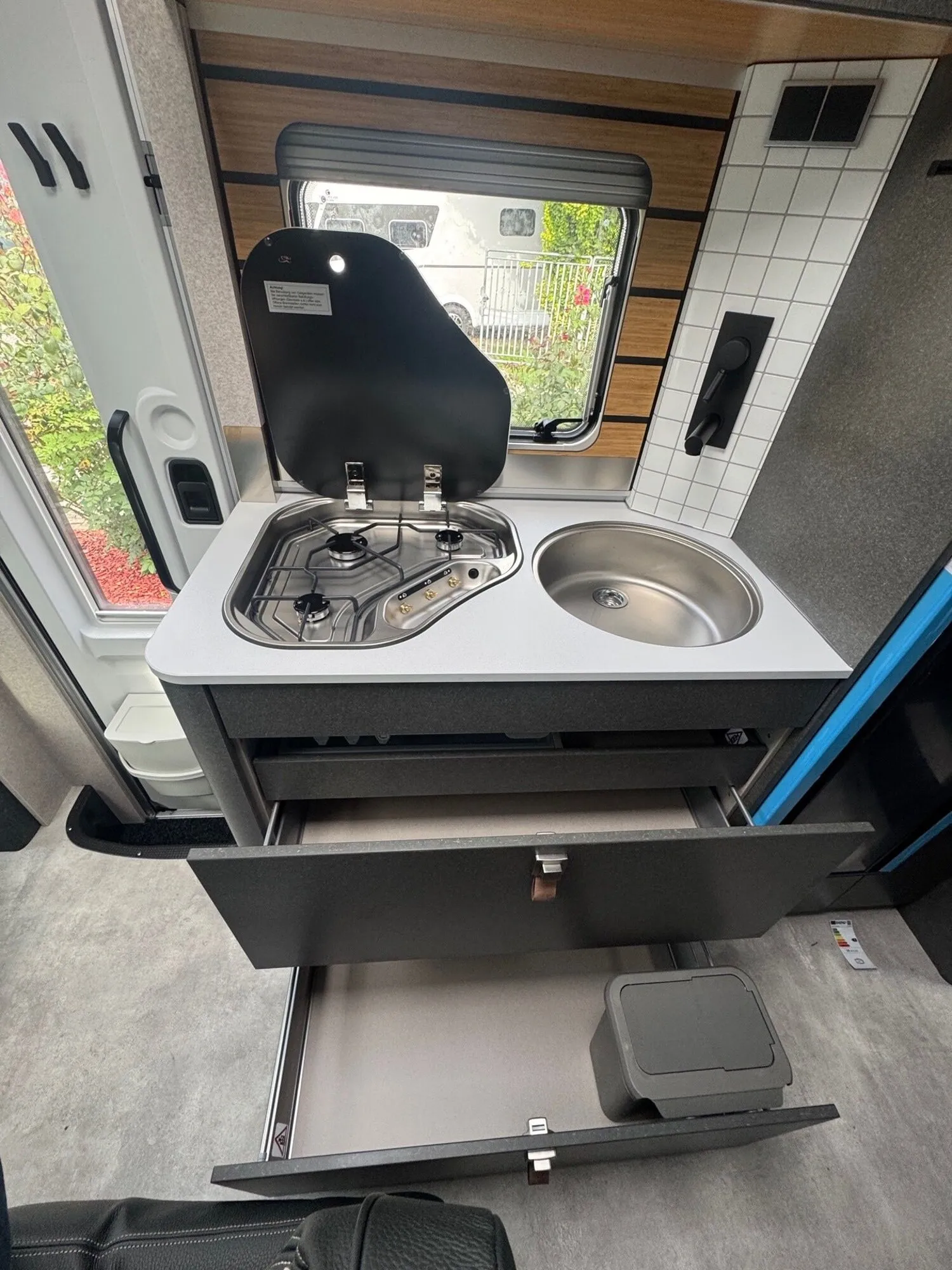 - Autarkie-Paket LFP XL (HYMER-Smart-Battery-System 2.0: Zweite Aufbaubatterie 80 Ah LFP inkl. Zusatzlader, HYMER-Smart-Battery-System 2.0: Dritte Aufbaubatterie 160 Ah LFP inkl. Zusatzlader, Wechselrichter 12 V auf 230 V, 1800 Watt mit Netzvorrangschaltung)