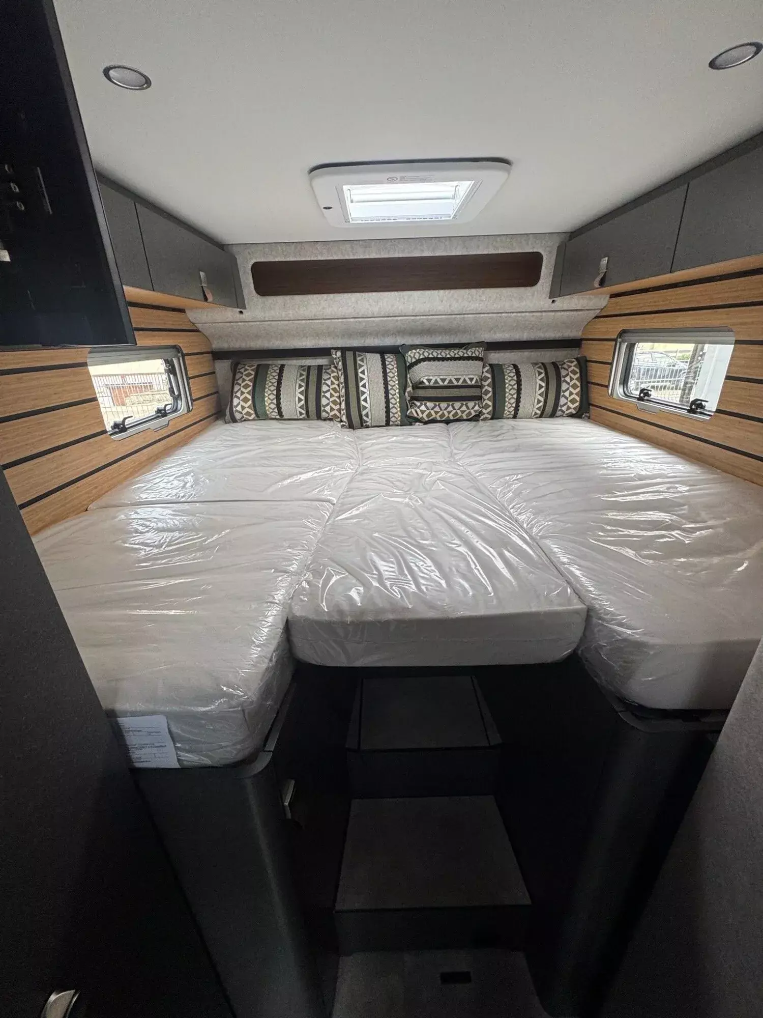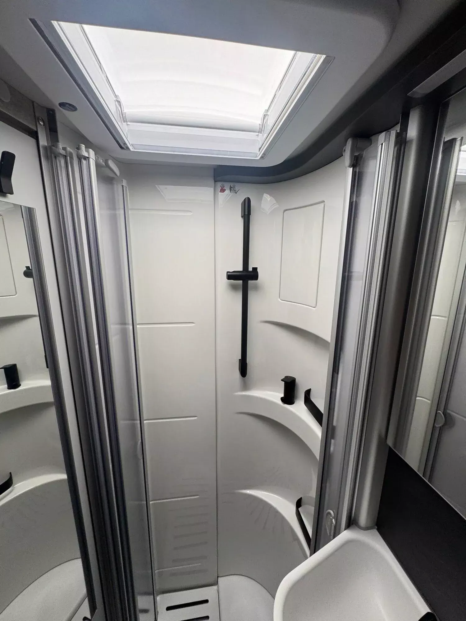 - Wohnkomfort-Paket 4 (Schlafsystem mit Tellerfederrost für Heckbett(en), Spannbettlaken nach Maß für Heckbetten individuell an Matratzenkonturen angepasst, Filzverkleidung in Heckgarage, Einlegeboden in der Dusche für ebenen Laufboden, 4 Kissen mit Bezug, Ambient-Light-System: Mehr-Ebenen Lichtsystem mit dynamischer und individueller Steuerung der Beleuchtung (inkl. Lichttemperatur) sowie stimmungsvoller Sockelbeleuchtung, Lichtpaket (Multifunktionale Pendelleuchte sowie eine Ambiente-Leseleuchte für die Multifunktionswände), 4 x 230 V / 1 x 12 V Zusatzsteckdosen)