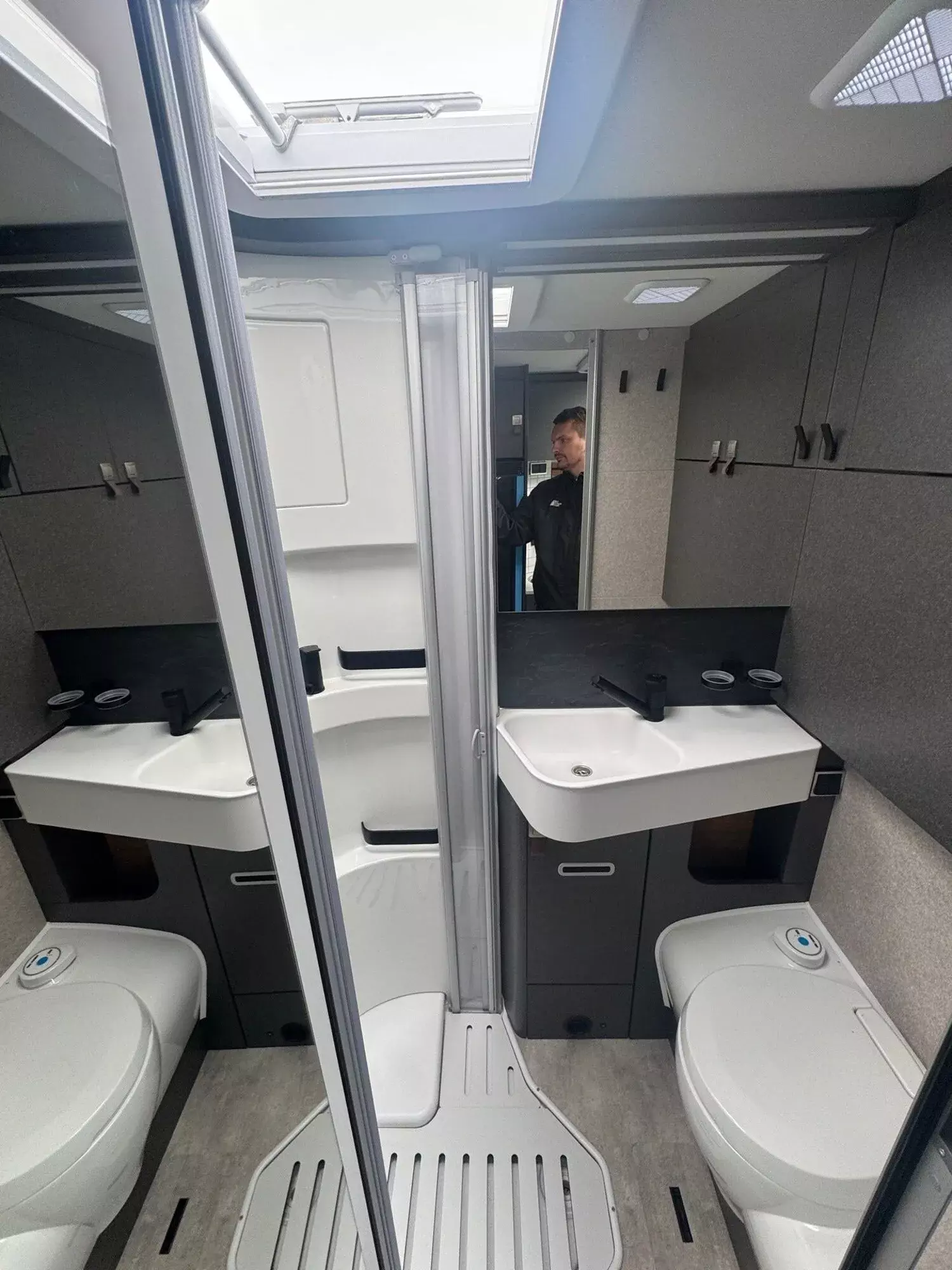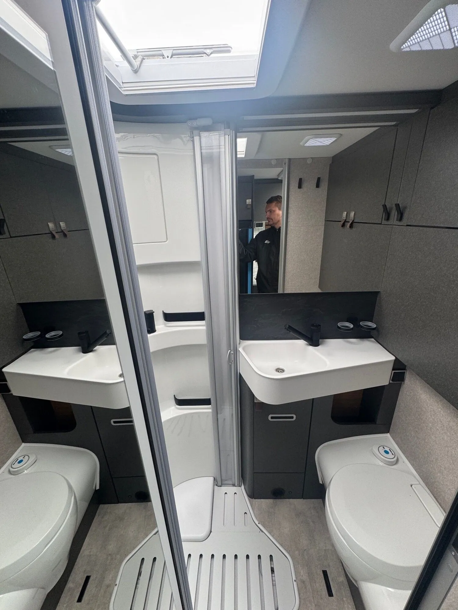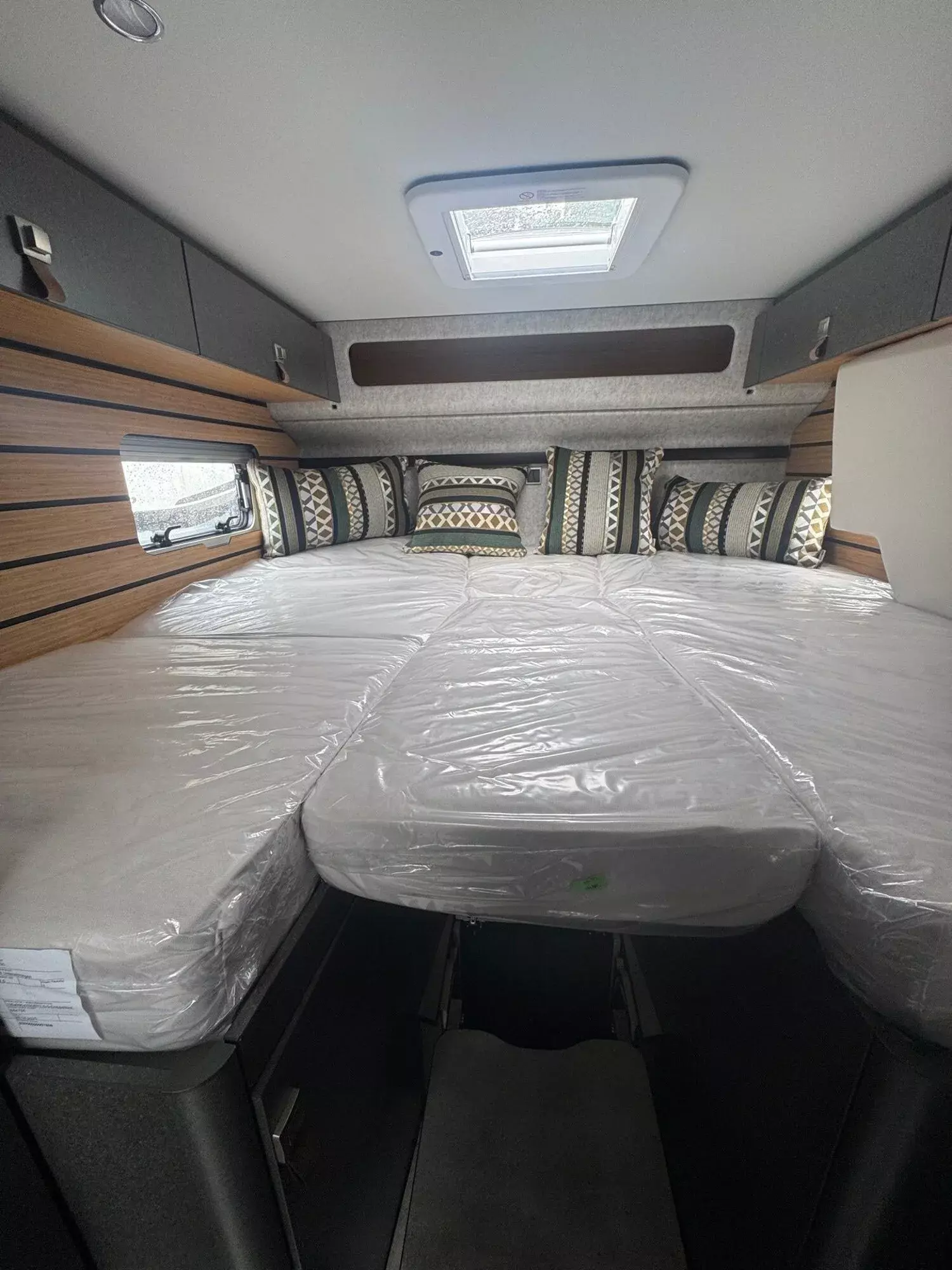 - Wohnkomfort-Paket 4 (Schlafsystem mit Tellerfederrost für Heckbett(en), Spannbettlaken nach Maß für Heckbetten individuell an Matratzenkonturen angepasst, Filzverkleidung in Heckgarage, Einlegeboden in der Dusche für ebenen Laufboden, 4 Kissen mit Bezug, Ambient-Light-System: Mehr-Ebenen Lichtsystem mit dynamischer und individueller Steuerung der Beleuchtung (inkl. Lichttemperatur) sowie stimmungsvoller Sockelbeleuchtung, Lichtpaket (Multifunktionale Pendelleuchte sowie eine Ambiente-Leseleuchte für die Multifunktionswände), 4 x 230 V / 1 x 12 V Zusatzsteckdosen)