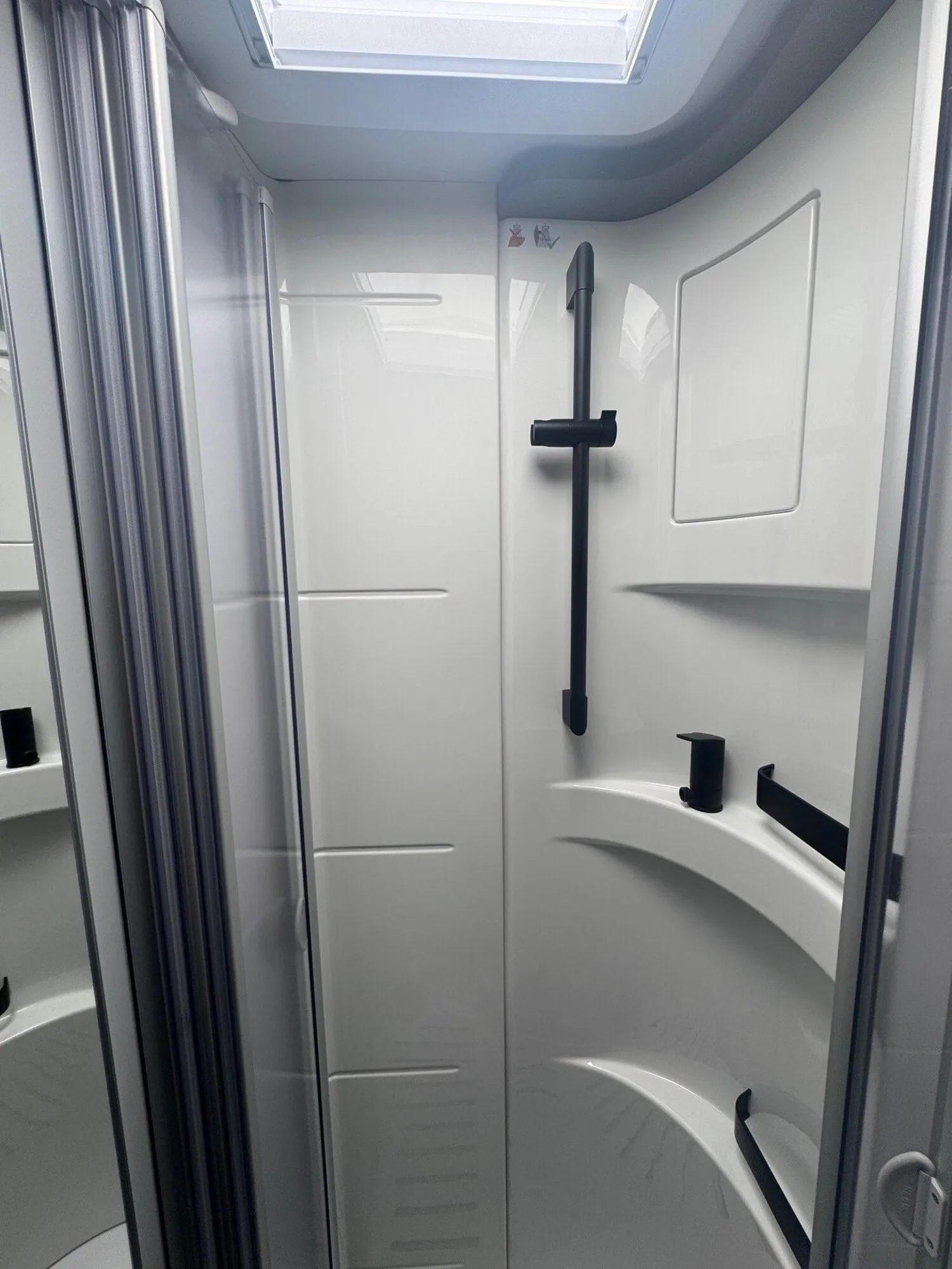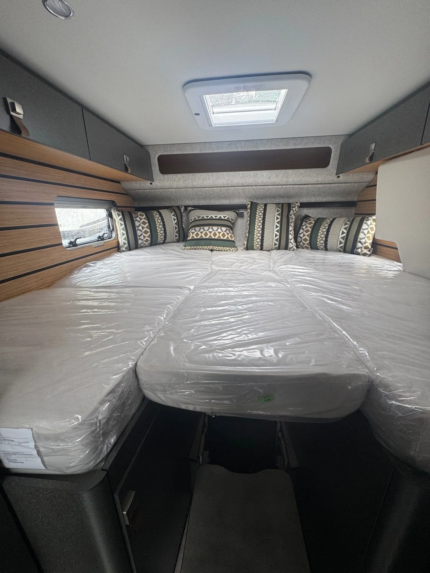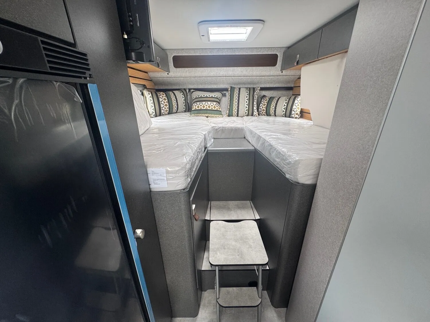 - Wohnkomfort-Paket 4 (Schlafsystem mit Tellerfederrost für Heckbett(en), Spannbettlaken nach Maß für Heckbetten individuell an Matratzenkonturen angepasst, Filzverkleidung in Heckgarage, Einlegeboden in der Dusche für ebenen Laufboden, 4 Kissen mit Bezug, Ambient-Light-System: Mehr-Ebenen Lichtsystem mit dynamischer und individueller Steuerung der Beleuchtung (inkl. Lichttemperatur) sowie stimmungsvoller Sockelbeleuchtung, Lichtpaket (Multifunktionale Pendelleuchte sowie eine Ambiente-Leseleuchte für die Multifunktionswände), 4 x 230 V / 1 x 12 V Zusatzsteckdosen)
