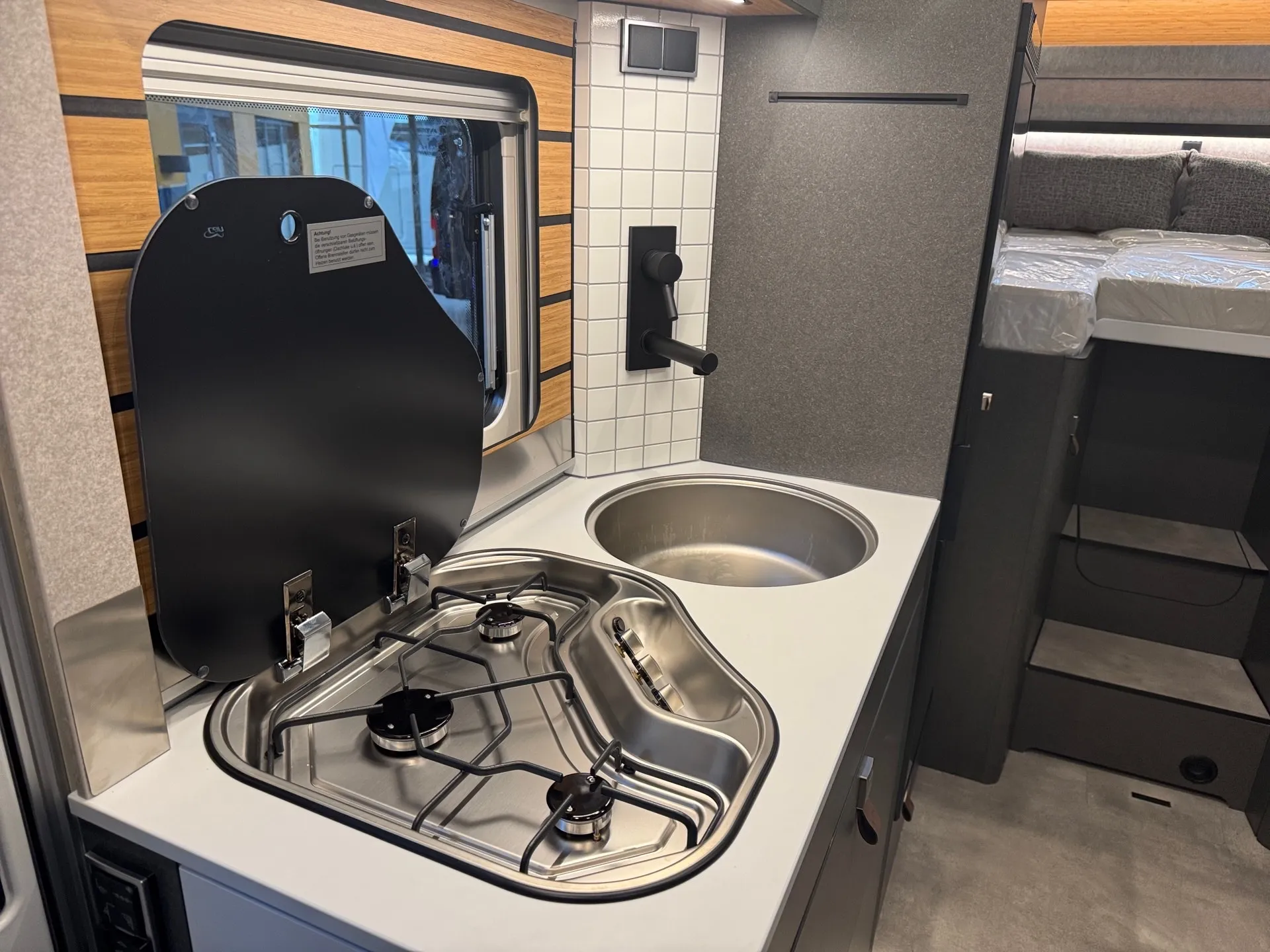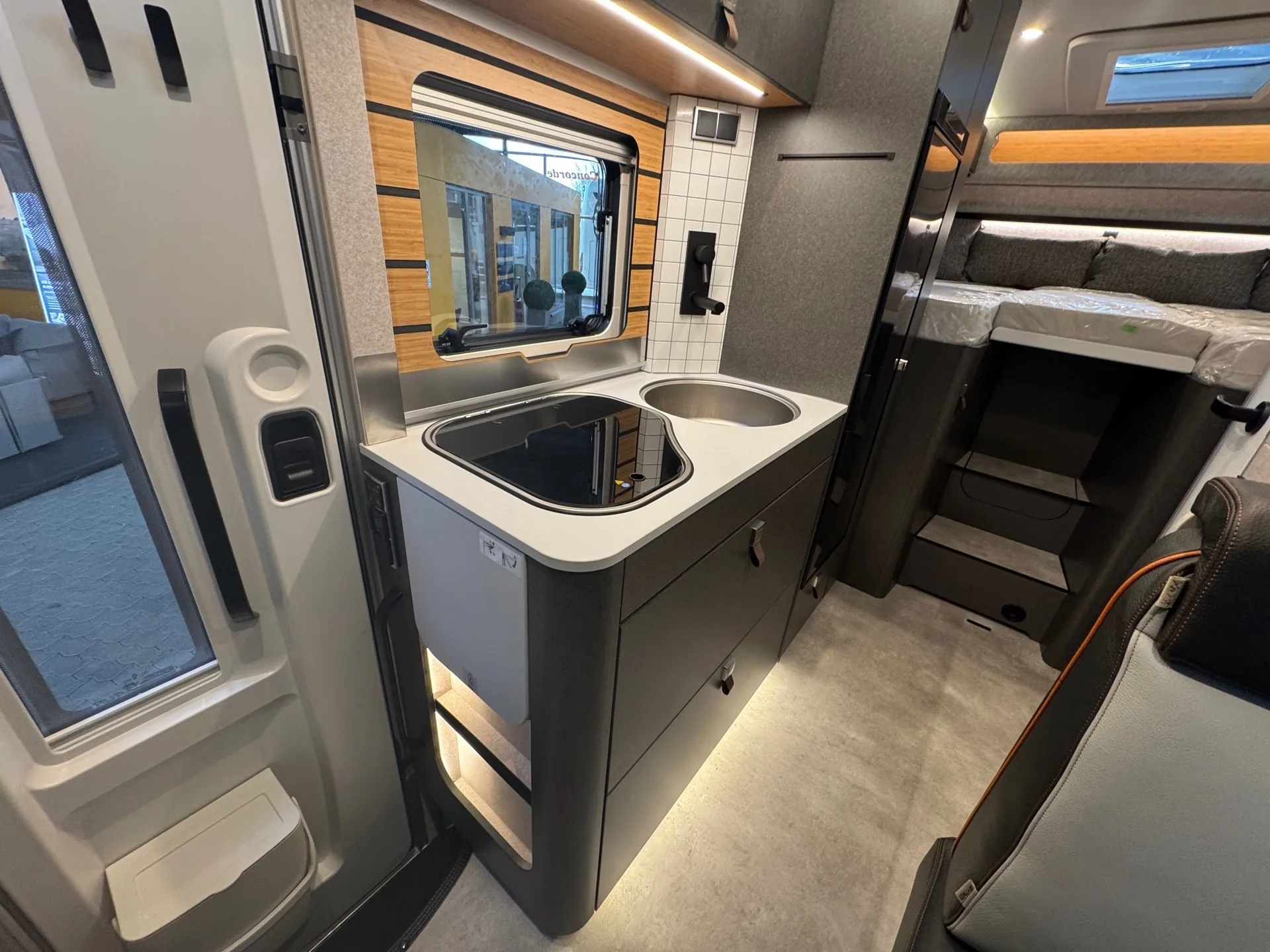 Bettenbau für Komfort L-Sitzgruppe inkl. Zusatzpolster und absenkbarem Tisch unter Einbeziehung des Fahrersitzes;