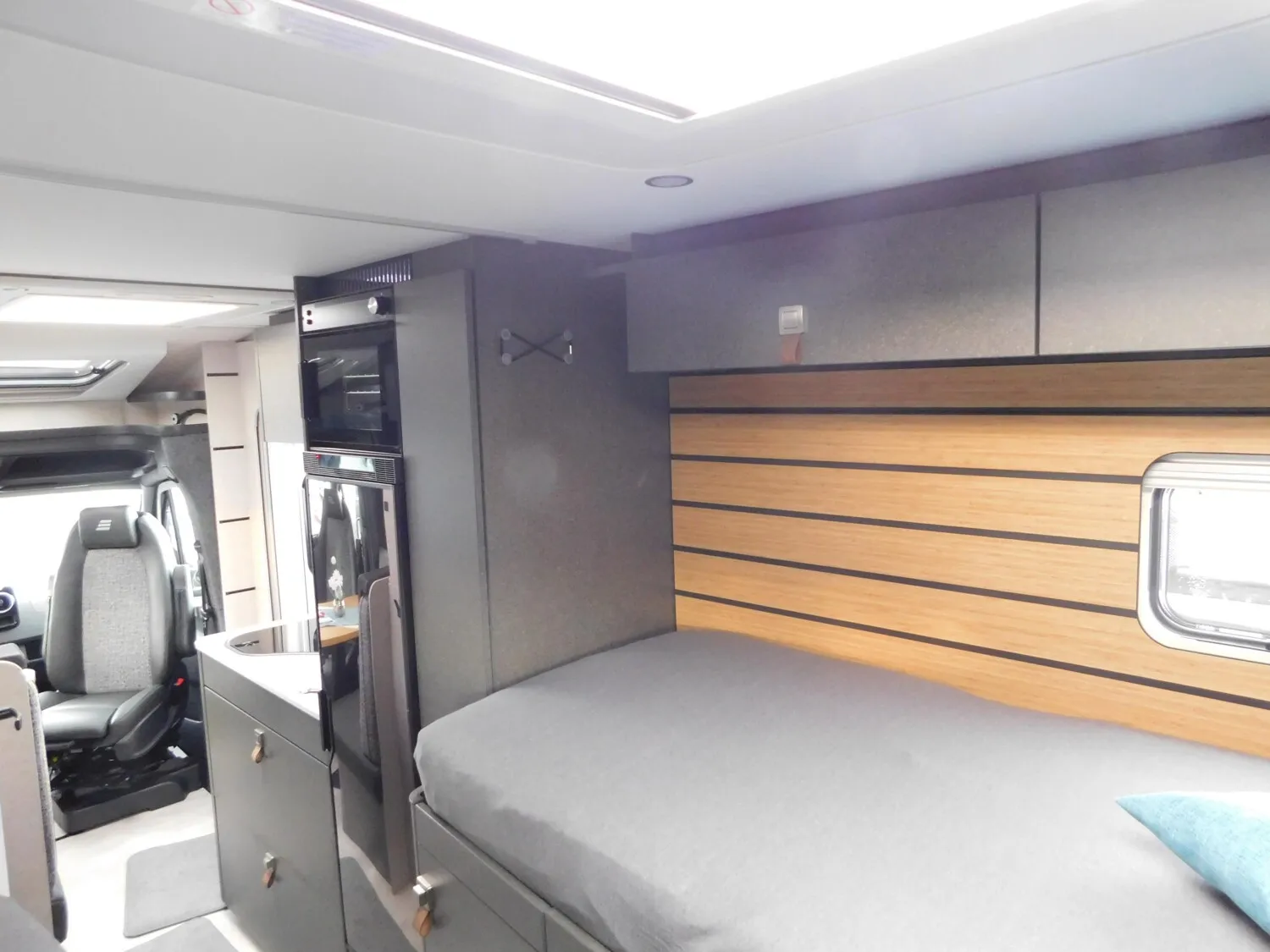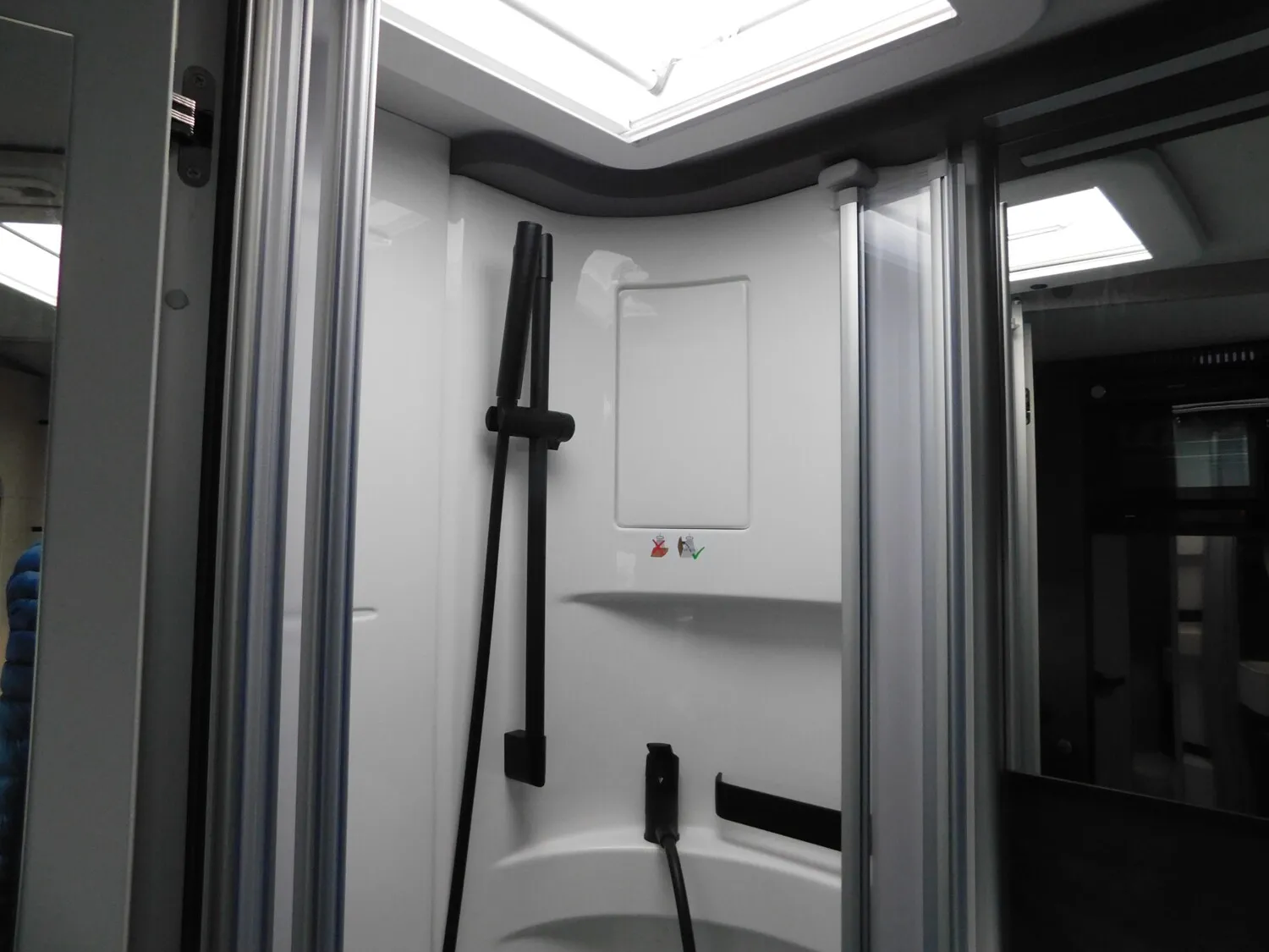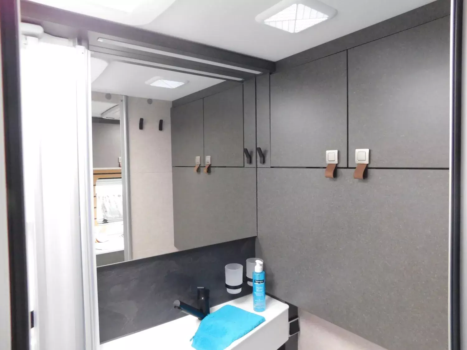- Wohnkomfort-Paket (Schlafsystem mit Tellerfederrost für Heckbett(en), Spannbettlaken nach Maß für Heckbetten individuell an Matratzen angepasst, Filzverkleidung in Heckgarage, Einlegeboden in der Dusche für ebenen Laufboden, 4 Kissen mit Bezug, Ambient-Light-System: Mehr-Ebenen Lichtsystem mit dynamischer und individueller Steuerung der Beleuchtung (inkl. Lichttemperatur) sowie stimmungsvoller Sockelbeleuchtung, Lichtpaket (Multifunktionale Pendelleuchte sowie eine Ambiente-Leseleuchte für die Multifunktionswände), 4 x 230 V / 1 x 12 V Zusatzsteckdosen)