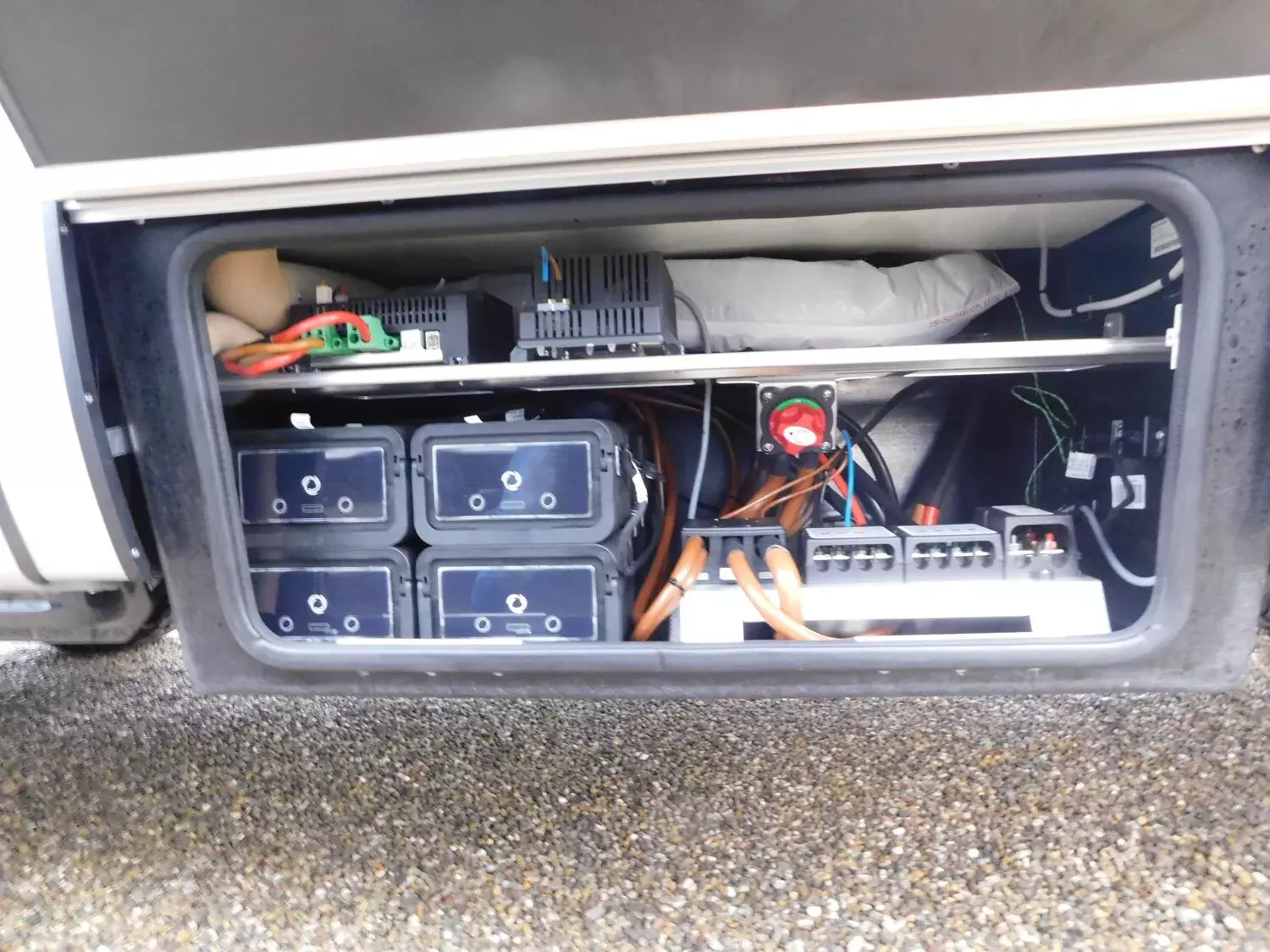 - Autarkie-Paket Lithium XL (HYMER-Smart-Battery-System 2.0 - Erweiterung: Zweites Batteriemodul Aufbau 80 Ah LFP inkl. Zusatzlader (Gesamtkapazität 160 Ah), HYMER-Smart-Battery-System 2.0 - Erweiterung: Drittes und Viertes Batteriemodul Aufbau 2 x 80 Ah LFP (Gesamtkapazität 320 Ah), Wechselrichter 12 V auf 230 V, 1800 Watt mit Netzvorrangschaltung)