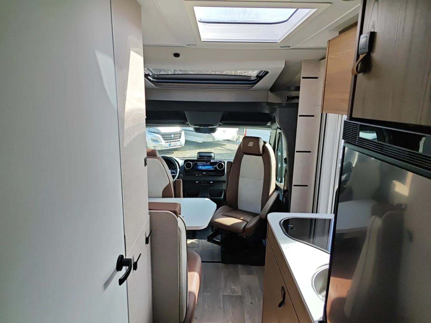 - Ausstattungslinie Premium Teilintegriert: Radio OEM-MBUX10,25"/Navi/DAB/RFK/Smartphoneintegration, Lenkrad-in Leder, Getriebe-Automatik, Abstandsregel-Tempomat, Verkehrszeichen- Assistent, Ablage Smartphone, Ladepaket Instrumententafel, Scheinwerfer LED, Automatische Klimaanlage