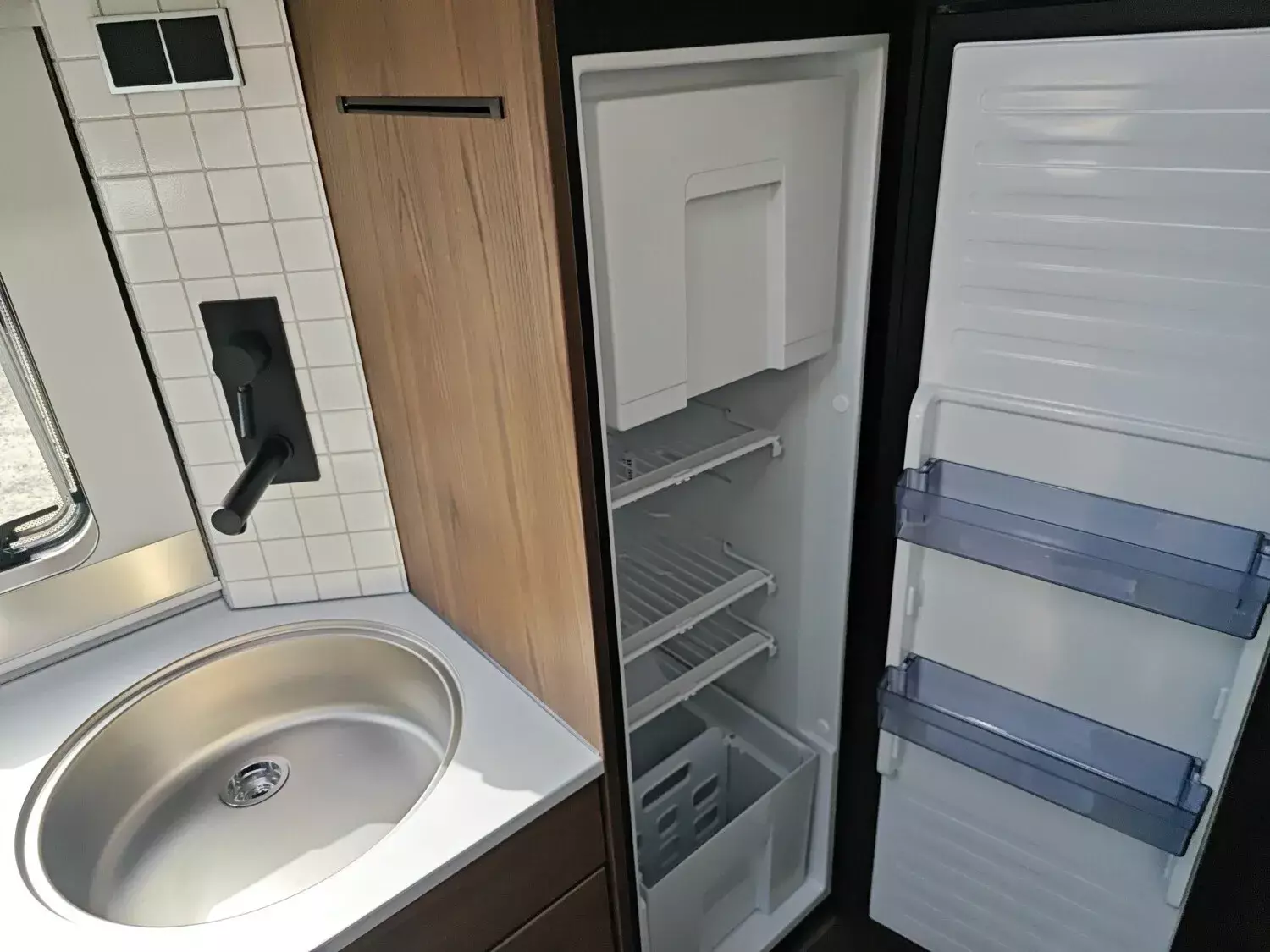 - Komfort-Eingangstür mit Fenster, Verdunkelungsrollo, integriertem Mülleimer und 2-fach Verriegelung