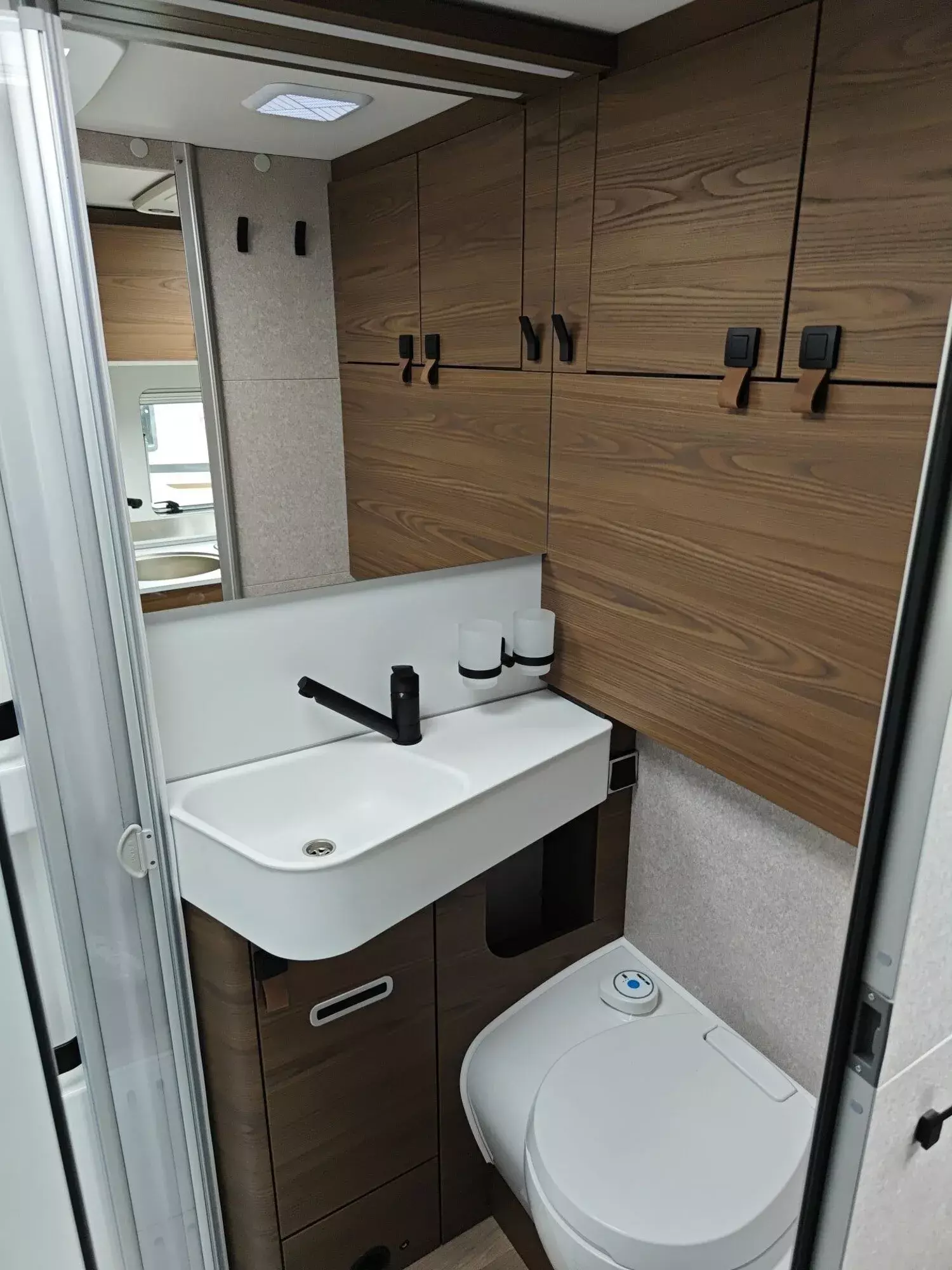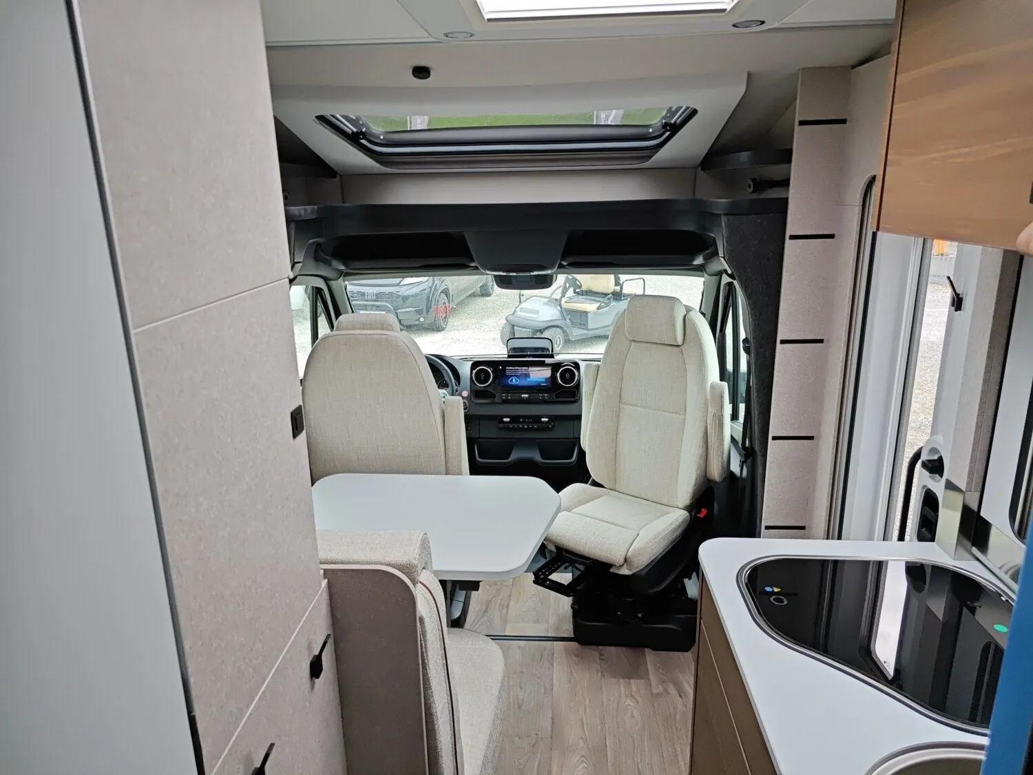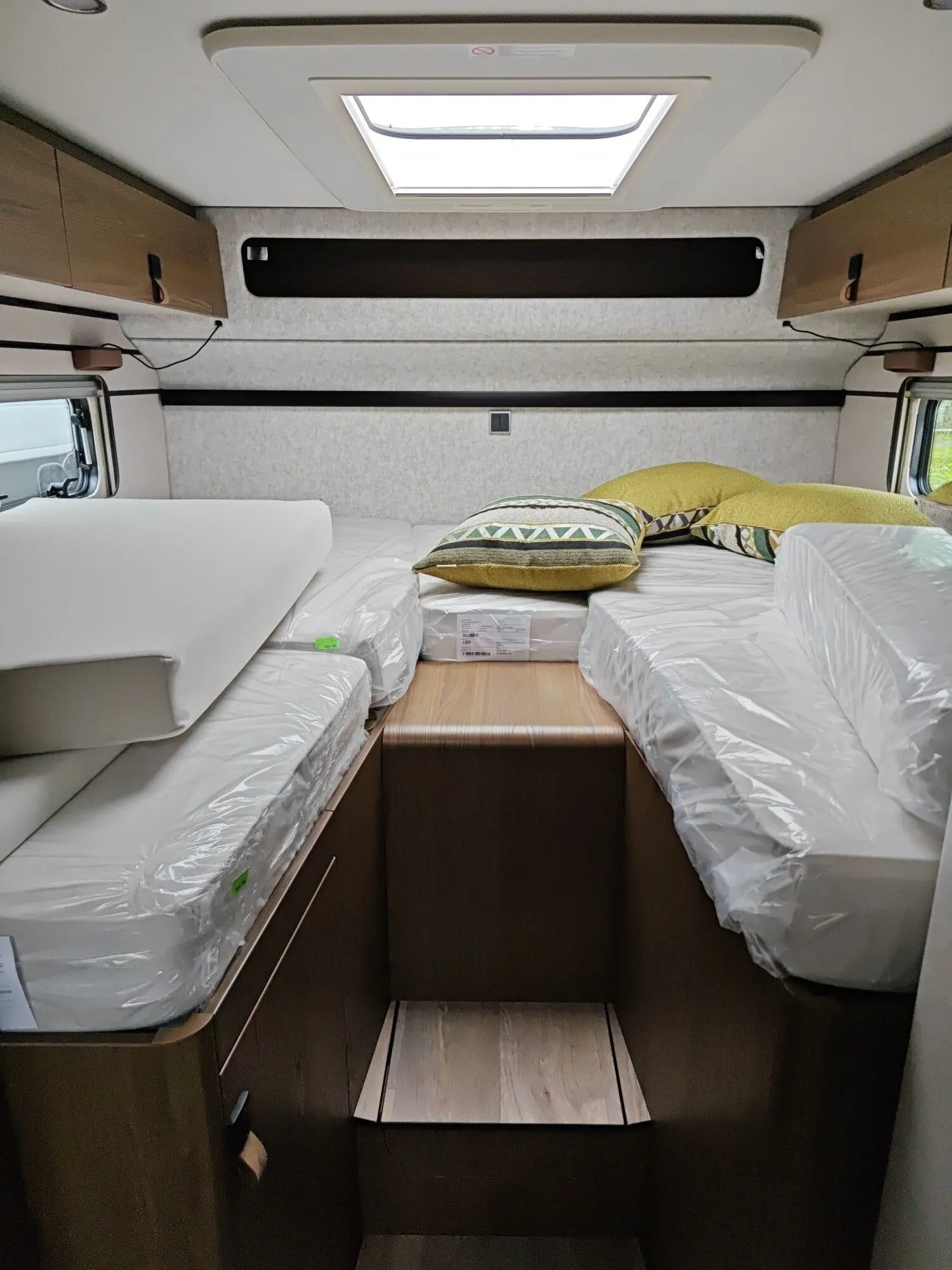 - Wohnkomfort-Paket (Schlafsystem mit Tellerfederrost für Heckbett(en), Spannbettlaken nach Maß für Heckbetten individuell an Matratzen angepasst, Filzverkleidung in Heckgarage, Einlegeboden in der Dusche für ebenen Laufboden, 4 Kissen mit Bezug, Ambient-Light-System: Mehr-Ebenen Lichtsystem mit dynamischer und individueller Steuerung der Beleuchtung (inkl. Lichttemperatur) sowie stimmungsvoller Sockelbeleuchtung, Lichtpaket (Multifunktionale Pendelleuchte sowie eine Ambiente-Leseleuchte für die Multifunktionswände), 3 x 230 V / 1 x 12 V Zusatzsteckdosen)
