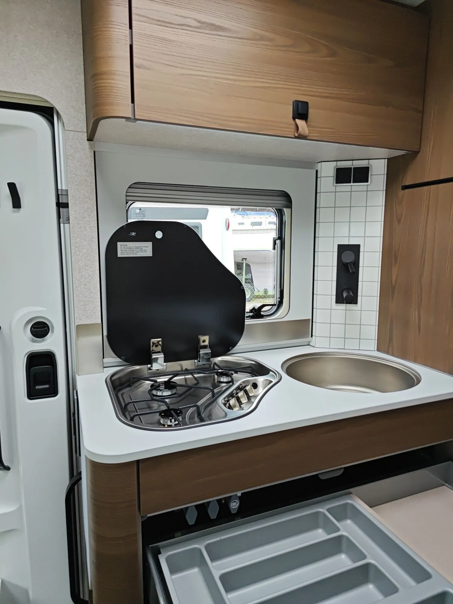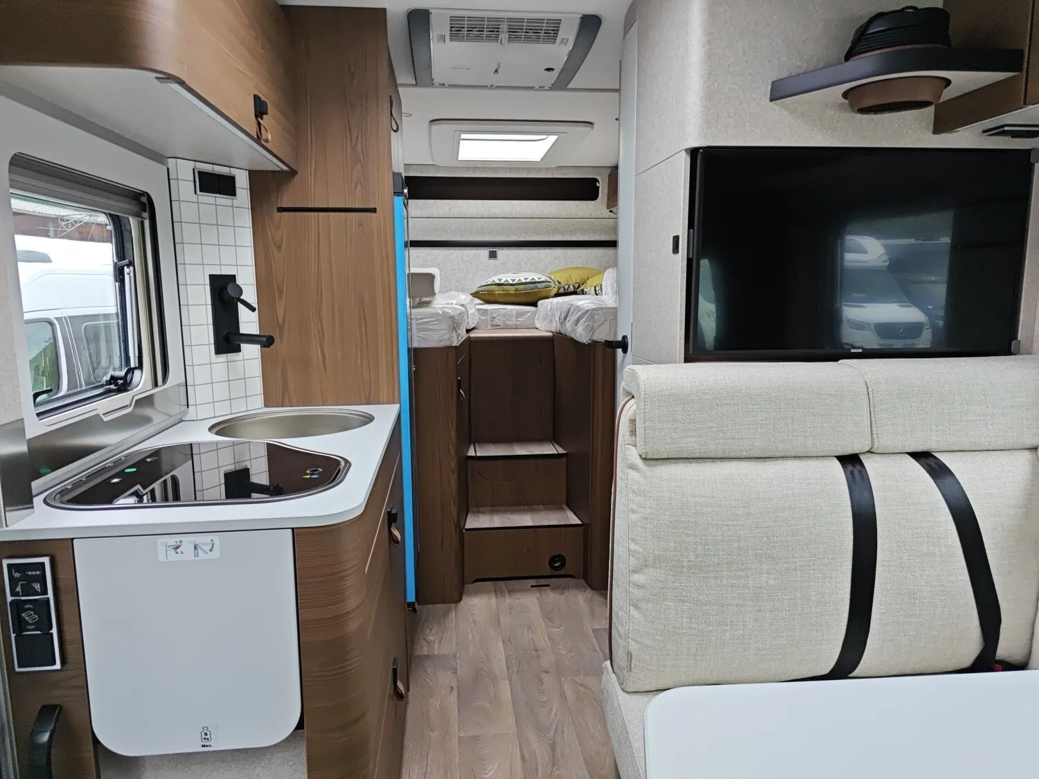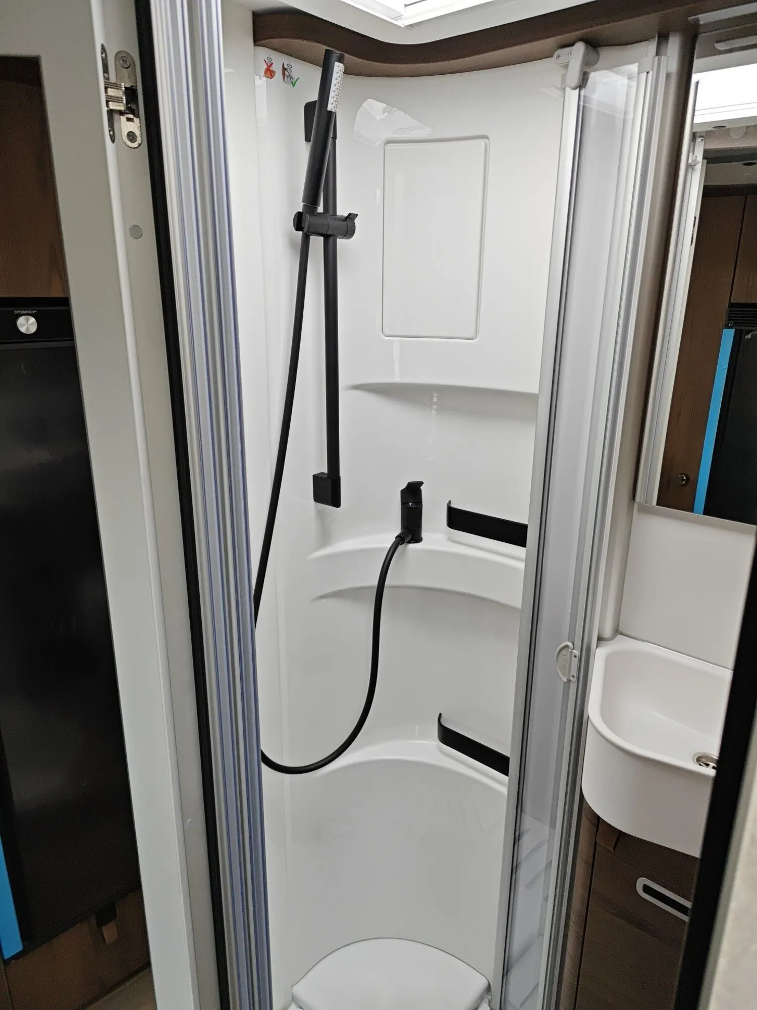 - Wohnkomfort-Paket (Schlafsystem mit Tellerfederrost für Heckbett(en), Spannbettlaken nach Maß für Heckbetten individuell an Matratzen angepasst, Filzverkleidung in Heckgarage, Einlegeboden in der Dusche für ebenen Laufboden, 4 Kissen mit Bezug, Ambient-Light-System: Mehr-Ebenen Lichtsystem mit dynamischer und individueller Steuerung der Beleuchtung (inkl. Lichttemperatur) sowie stimmungsvoller Sockelbeleuchtung, Lichtpaket (Multifunktionale Pendelleuchte sowie eine Ambiente-Leseleuchte für die Multifunktionswände), 3 x 230 V / 1 x 12 V Zusatzsteckdosen)
