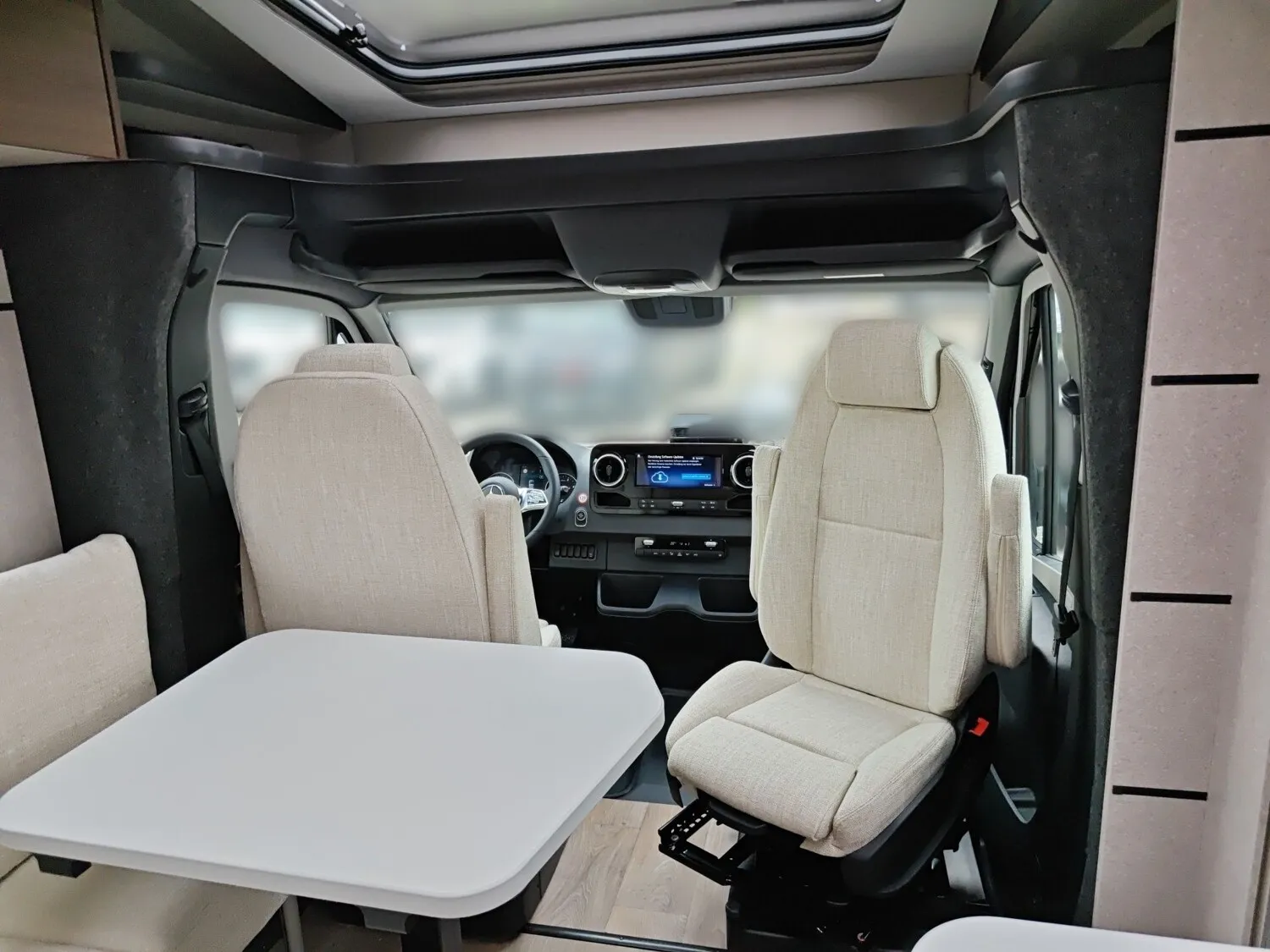 - Bettenbau für Komfort L-Sitzgruppe inkl. Zusatzpolster und absenkbarem Tisch unter Einbeziehung des Fahrersitzes