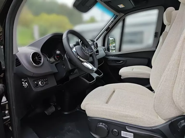- Winterpaket (Sitzheizung und Lordosenstütze für Mercedes Benz Originalsitze, Warmluft-Zusatzheizung elektrisch, Wet Wiper System (Scheibenwischer mit integ. Spritzdüse), Lenkradheizung, Wärmeisolierendes Fahrerhaus)
