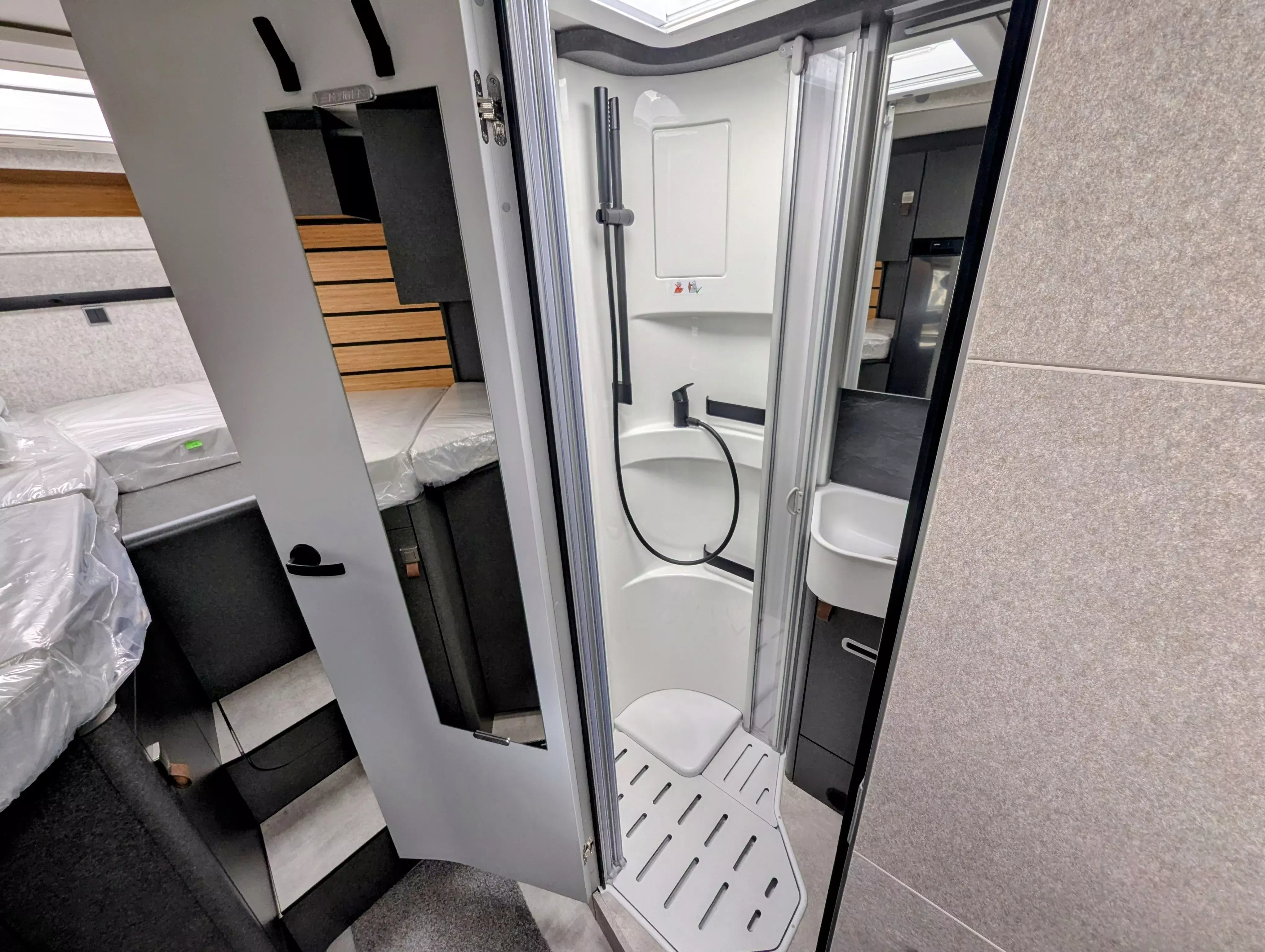 - Komfort-Eingangstür mit Fenster, Verdunkelungsrollo, integriertem Mülleimer und 2-fach Verriegelung