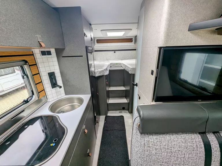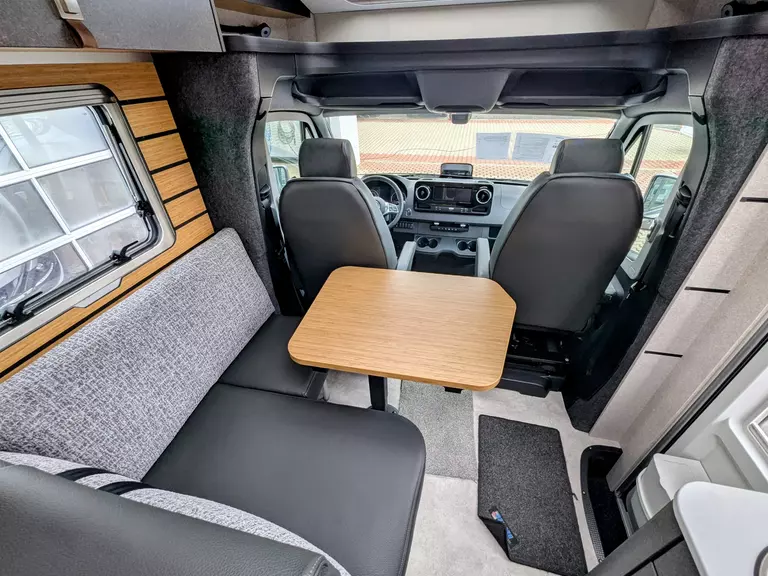 - Bettenbau für Komfort L-Sitzgruppe inkl. Zusatzpolster und absenkbarem Tisch unter Einbeziehung des Fahrersitzes