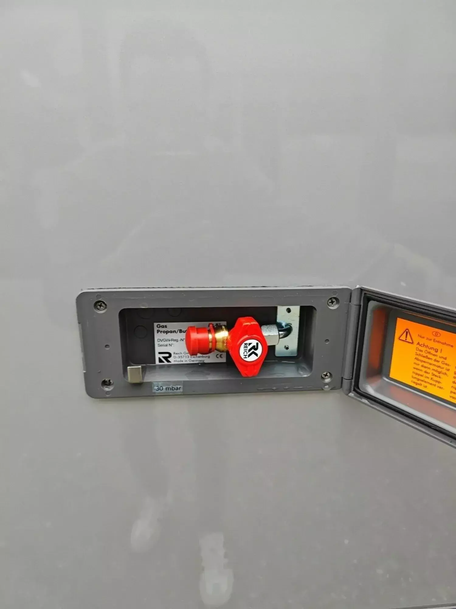 - Gassteckdose außen mit Absperrhahn