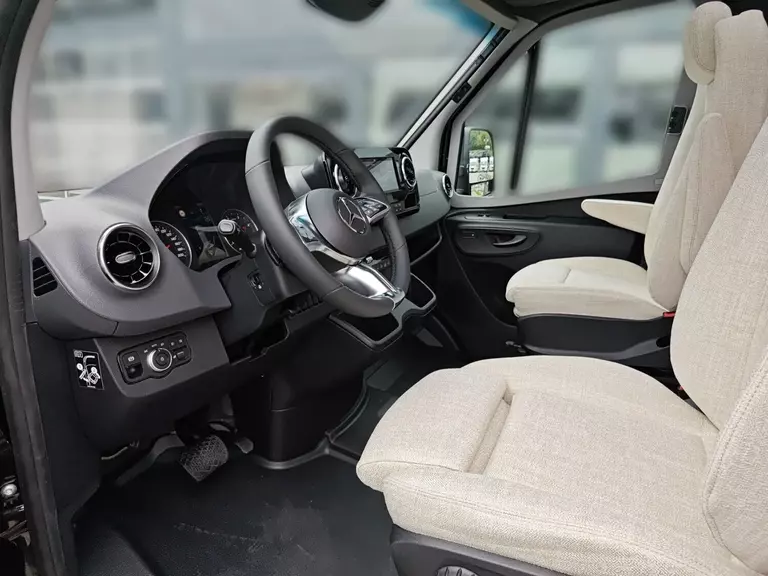 - Winterpaket (Sitzheizung und Lordosenstütze für Mercedes Benz Originalsitze, Warmluft-Zusatzheizung elektrisch, Wet Wiper System (Scheibenwischer mit integ. Spritzdüse), Lenkradheizung, Wärmeisolierendes Fahrerhaus)