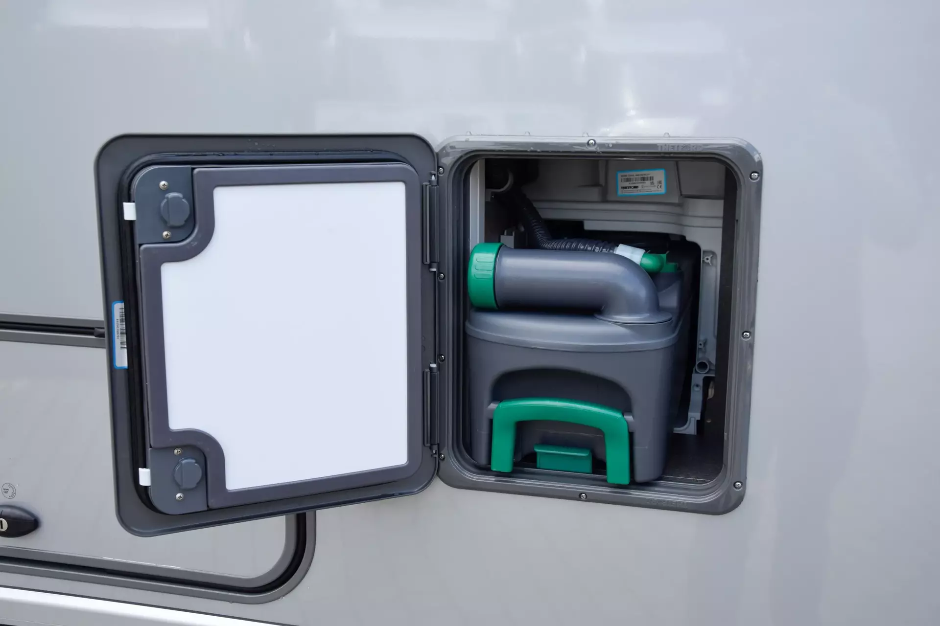- Komfort-Eingangstür mit Fenster, Verdunkelungsrollo, integriertem Mülleimer und 2-fach Verriegelung
