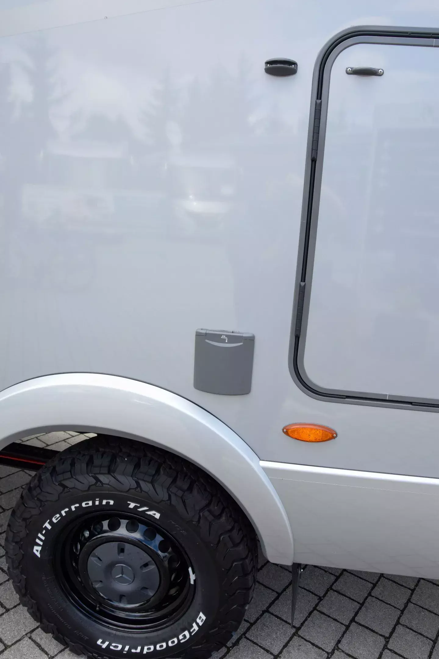 - 16'' Stahl Reserverad inkl. Stollenbereifung (All-Terrain) und Halterung außen an der Heckwand