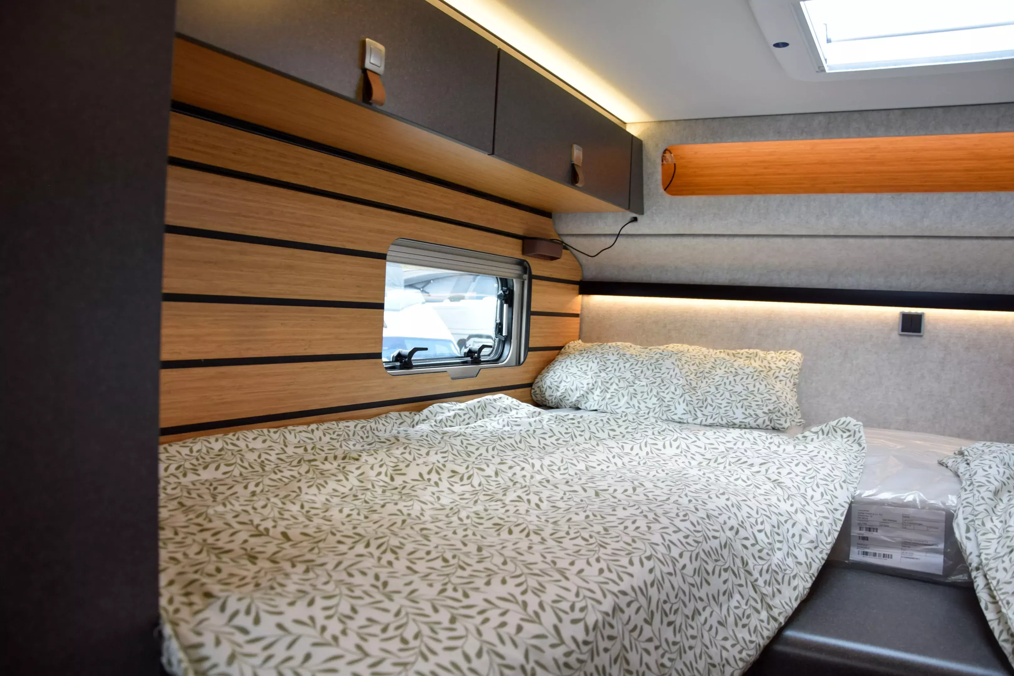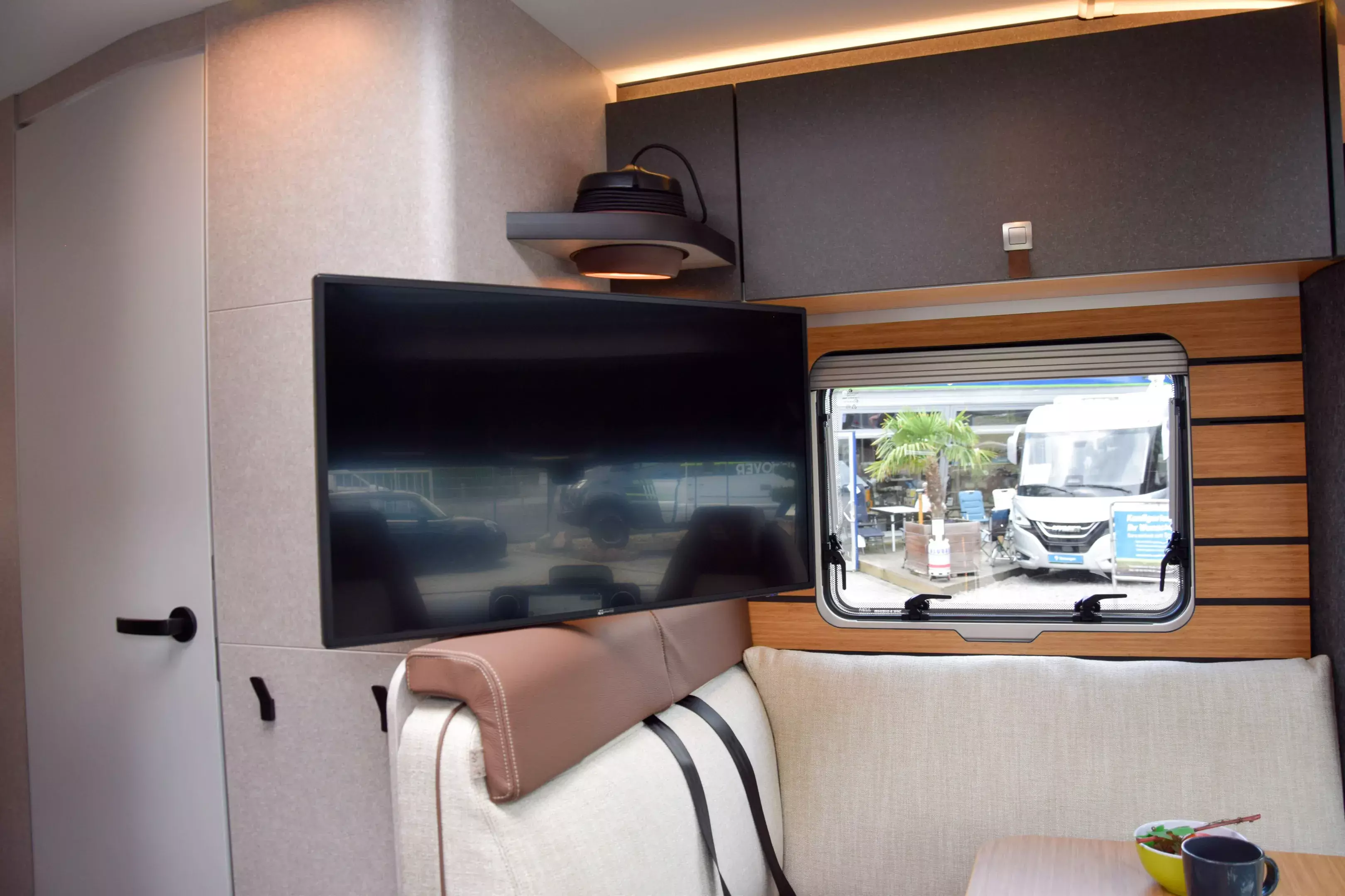 - Wohnkomfort-Paket; Schlafsystem mit Tellerfederrost für Heckbett(en); Spannbettlaken nach Maß für Heckbetten individuell an Matratzen angepasst; Filzverkleidung in Heckgarage; Einlegeboden in der Dusche für ebenen Laufboden; 4 Kissen mit Bezug; Ambient-Light-System: Mehr-Ebenen Lichtsystem mit dynamischer und individueller Steuerung der Beleuchtung (inkl. Lichttemperatur) sowie stimmungsvoller Sockelbeleuchtung; Lichtpaket (Multifunktionale Pendelleuchte sowie eine Ambiente-Leseleuchte für die Multifunktionswände); 4 x 230 V /x 12 V Zusatzsteckdosen