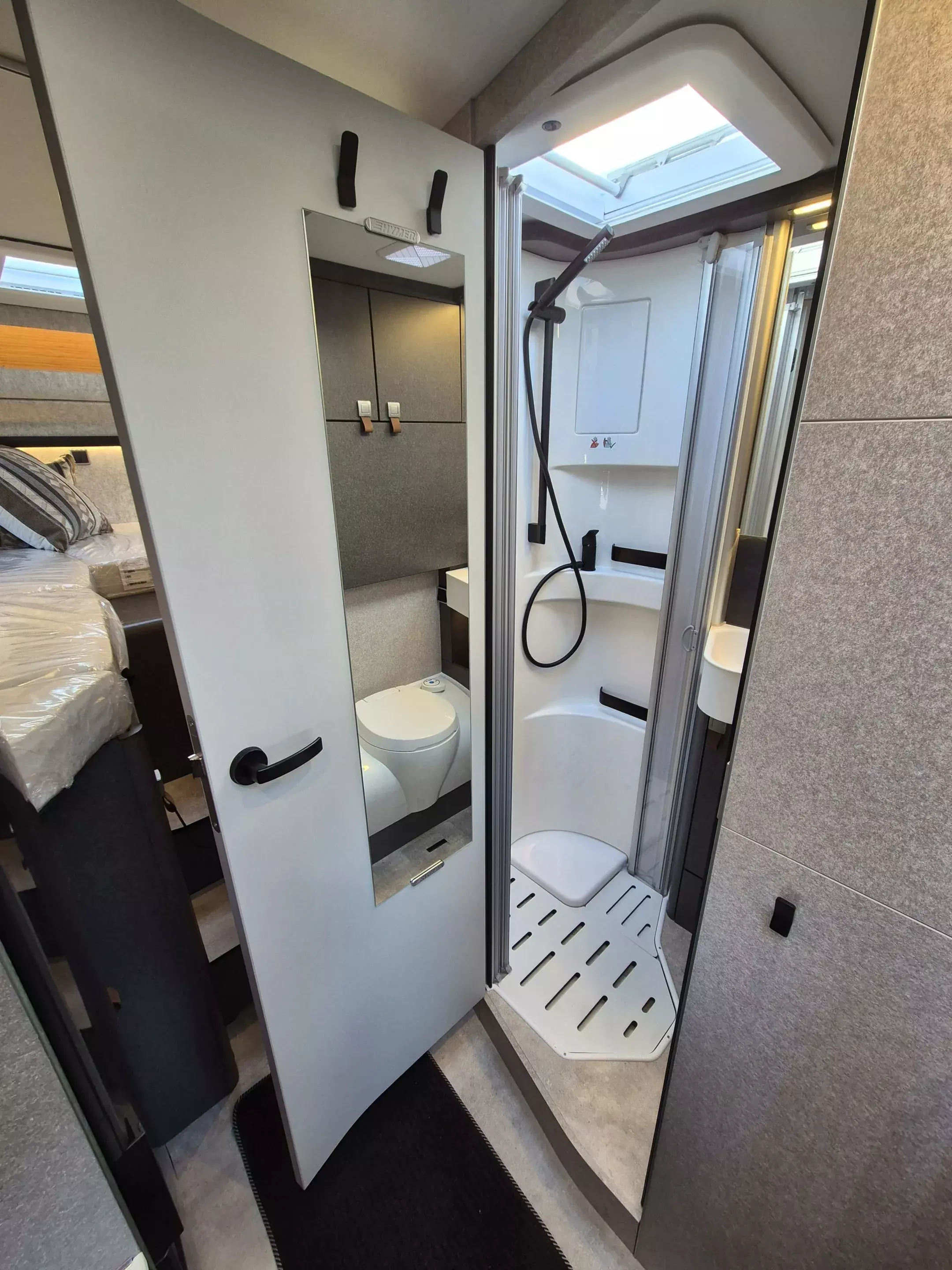 - Komfort-Eingangstür mit Fenster, Verdunkelungsrollo, integriertem Mülleimer und 2-fach Verriegelung