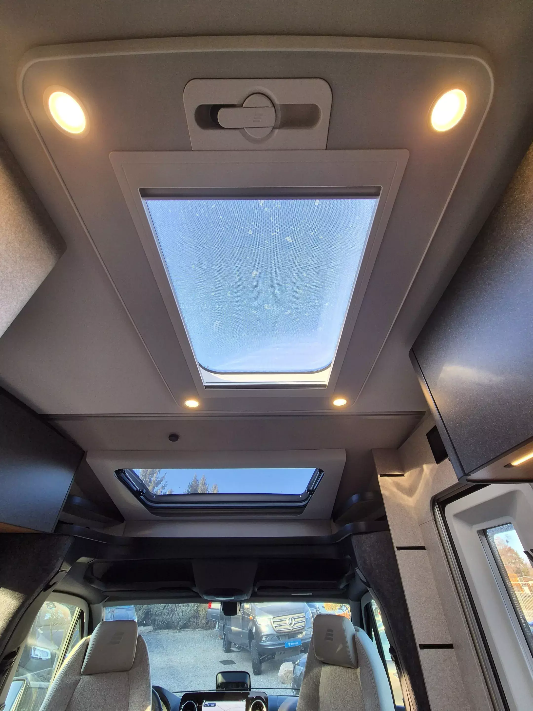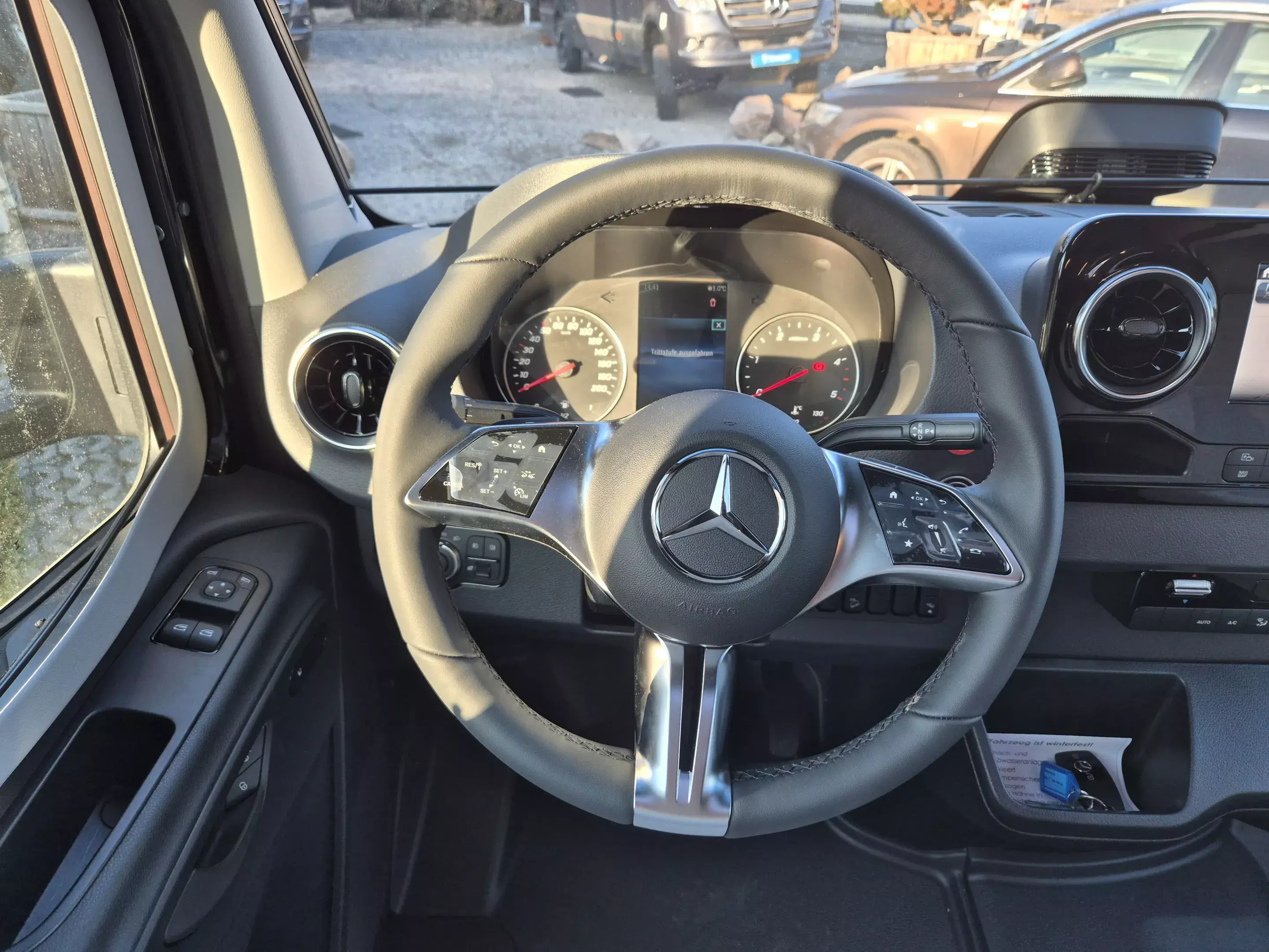 - Winterpaket: Sitzheizung und Lordosenstütze für Mercedes Benz Originalsitze; Warmluft-Zusatzheizung elektrisch; Wet Wiper System (Scheibenwischer mit integ. Spritzdüse); Lenkradheizung; Wärmeisolierendes Fahrerhaus