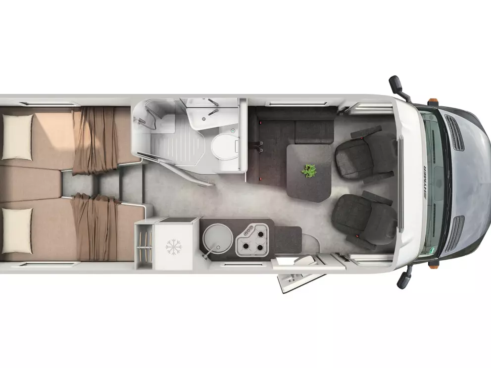 Der hochwertige Grundriss mit komfortablen Einzelbetten im Heck, großzügiger Heckgarage und wohnlicher Sitzgruppe verbindet Reisekomfort mit Funktionalität. Die exklusive Wohnwelt Valletta mit Möbeldekor Native Bamboo schafft ein modernes, hochwertiges Ambiente. Dank Bettverlängerung und Zusatzpolstern lässt sich der Schlafbereich flexibel erweitern.