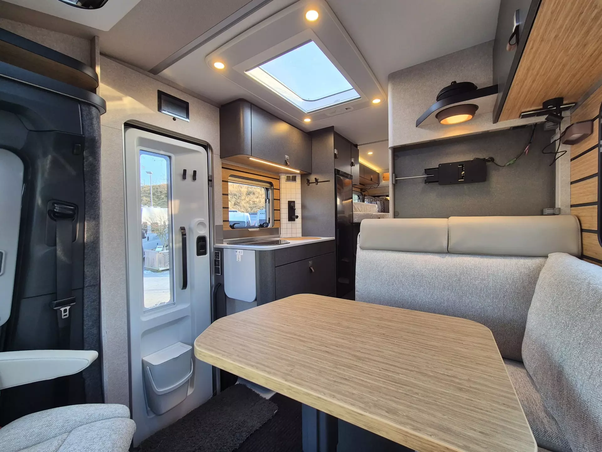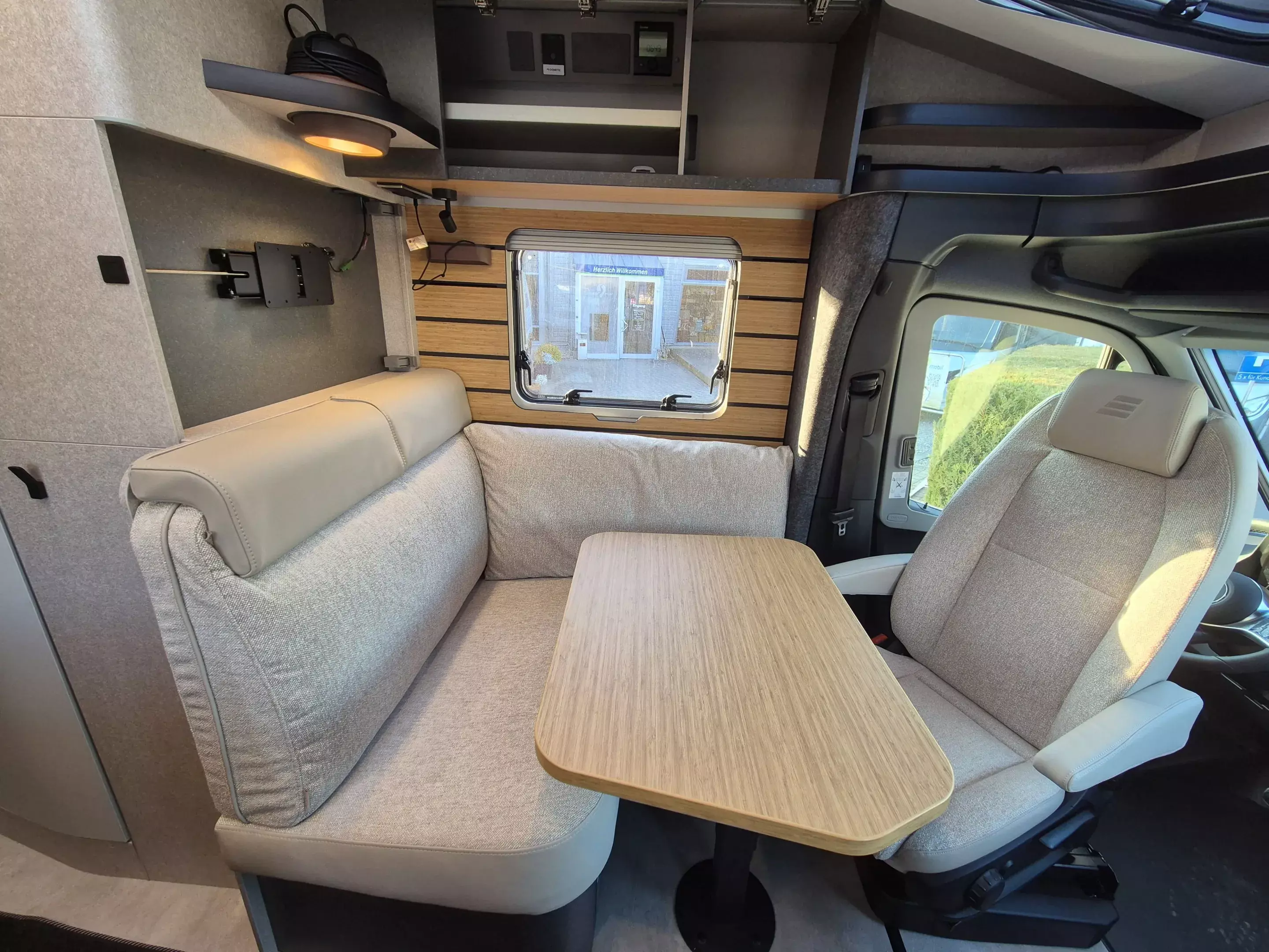 - Bettenbau für Komfort L-Sitzgruppe inkl. Zusatzpolster und absenkbarem Tisch unter Einbeziehung des Fahrersitzes