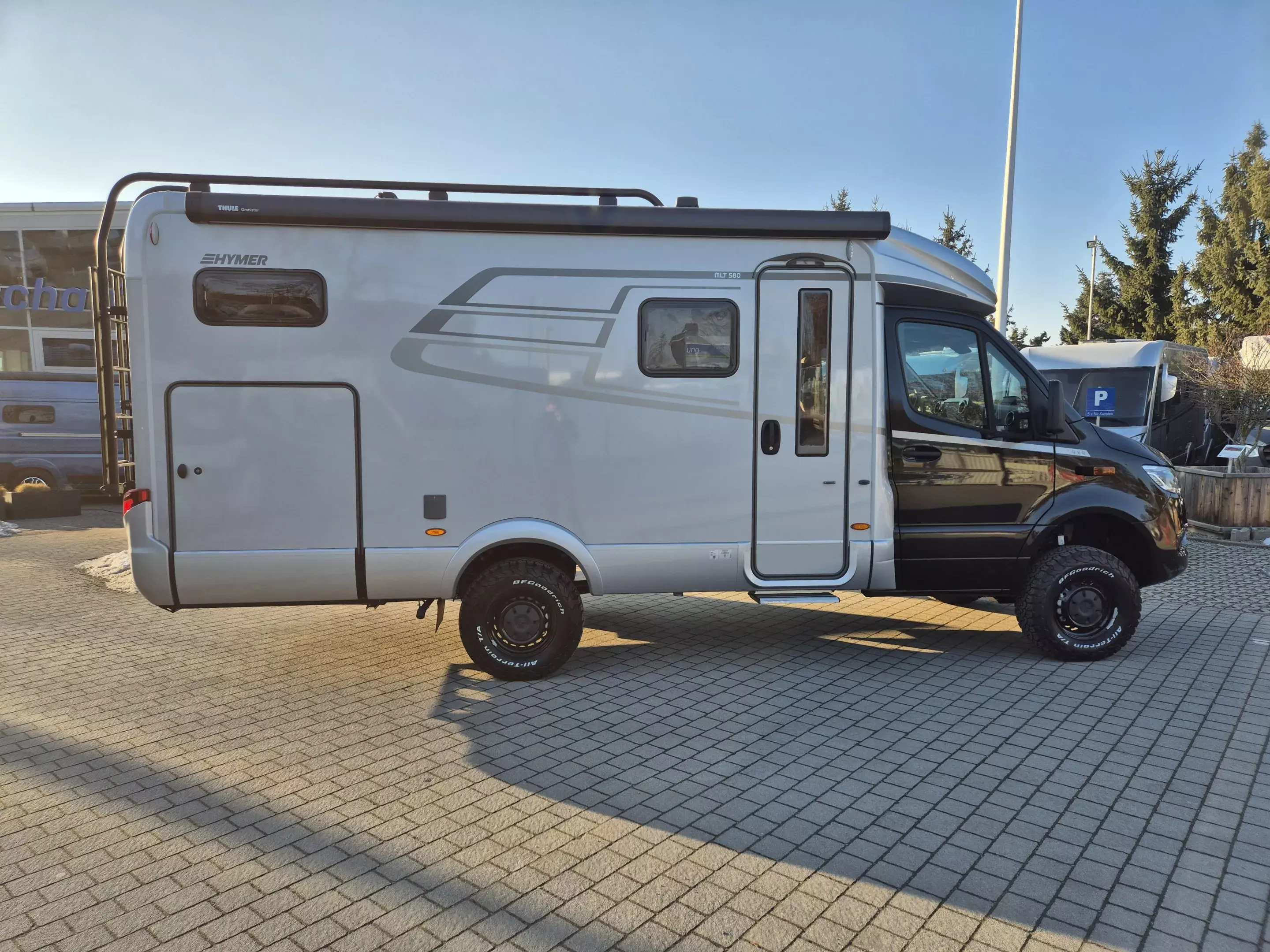 Der HYMER ML-T 580 Allrad ist ein kompromissloses Premium-Reisemobil für alle, die maximale Unabhängigkeit, Leistung und Komfort suchen. Auf Basis des Mercedes-Benz Sprinter 419 CDI mit 190 PS, 9G-TRONIC Automatik und permanentem Allradantrieb (Torque-on-Demand) bietet dieses Fahrzeug souveräne Fahreigenschaften – auf der Straße ebenso wie abseits befestigter Wege.