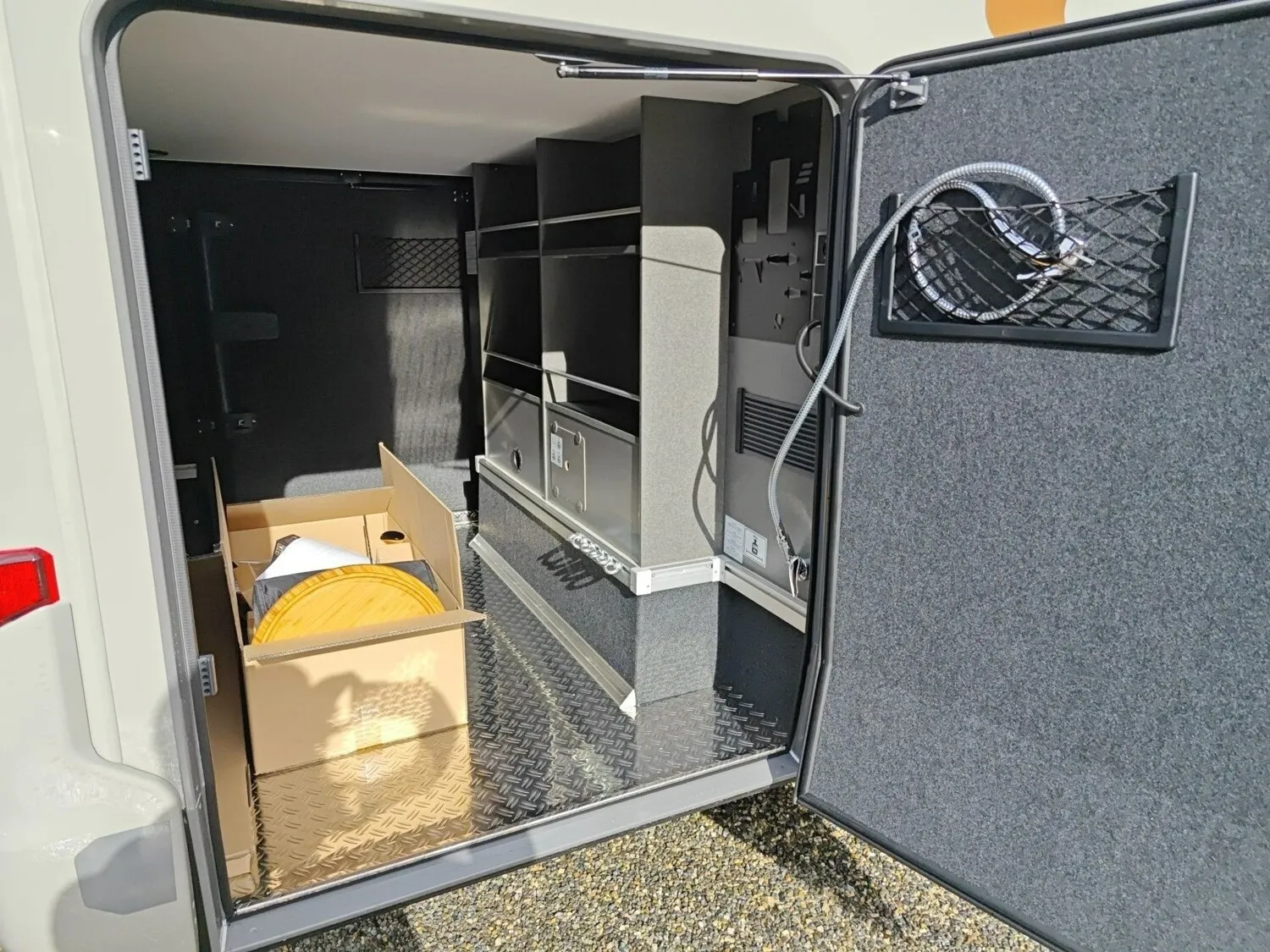- Riffelblechboden und Filzverkleidung in Heckgarage