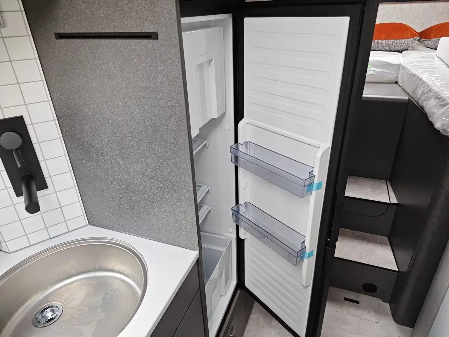 - Komfort-Eingangstür mit Fenster, Verdunkelungsrollo, integriertem Mülleimer und 2-fach Verriegelung