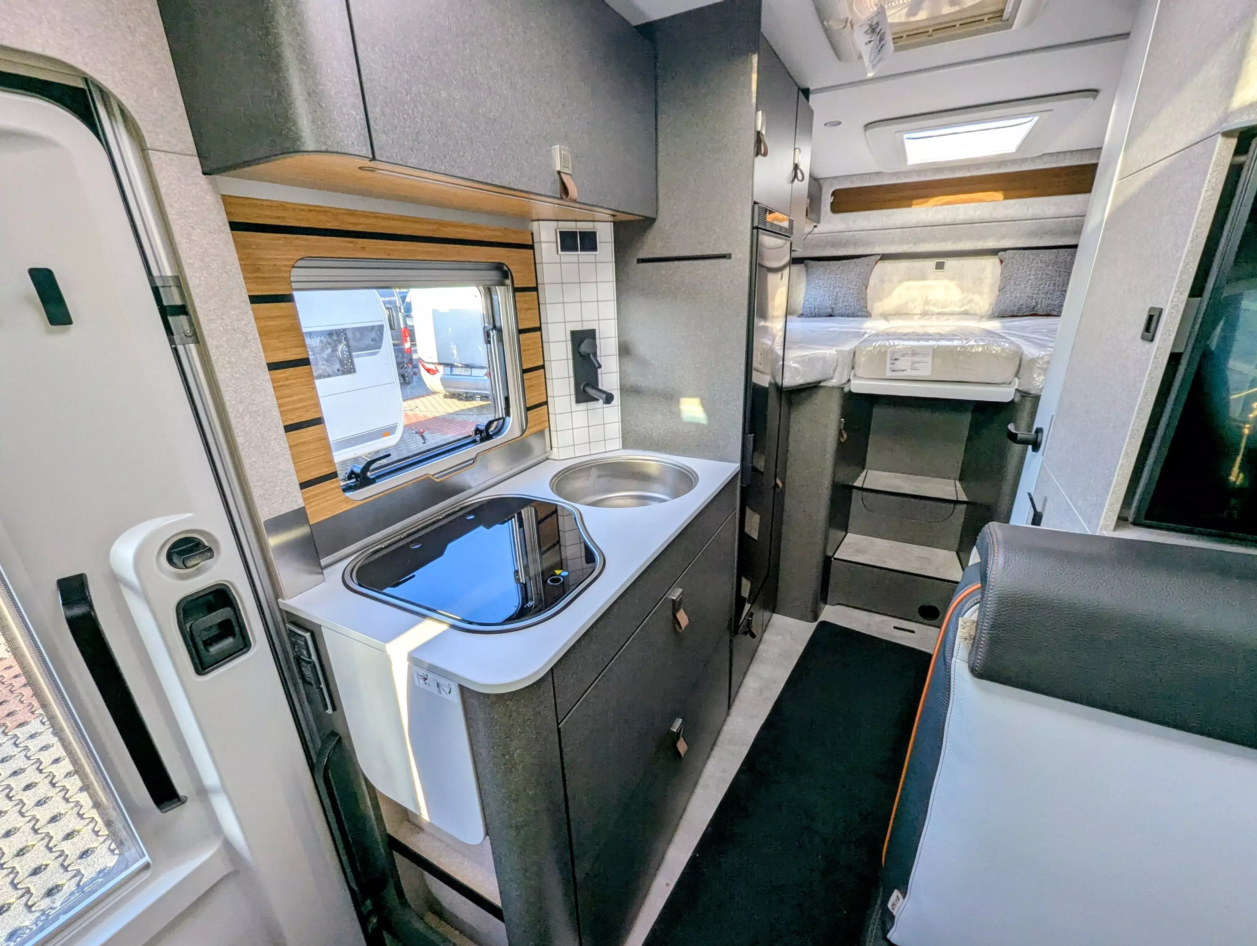 - Bettenbau für Komfort L Sitzgruppe inkl. Zusatzpolster und absenkbaremTisch unter Einbeziehung des Fahrersitzes