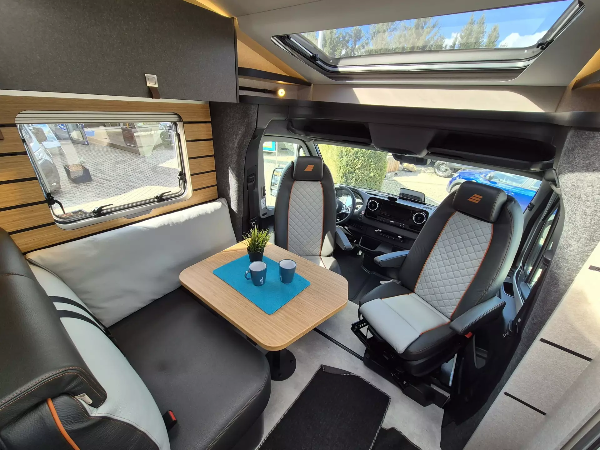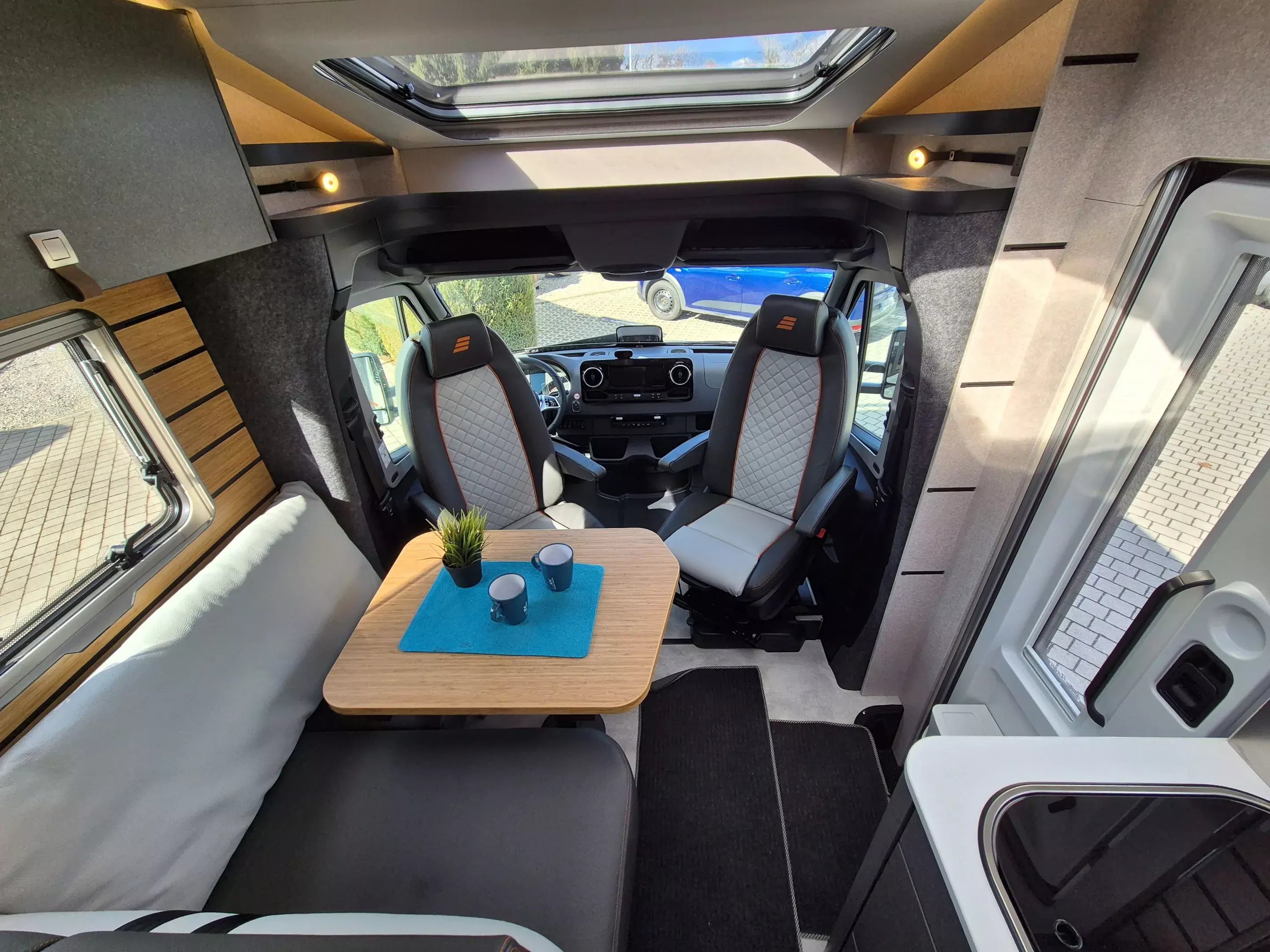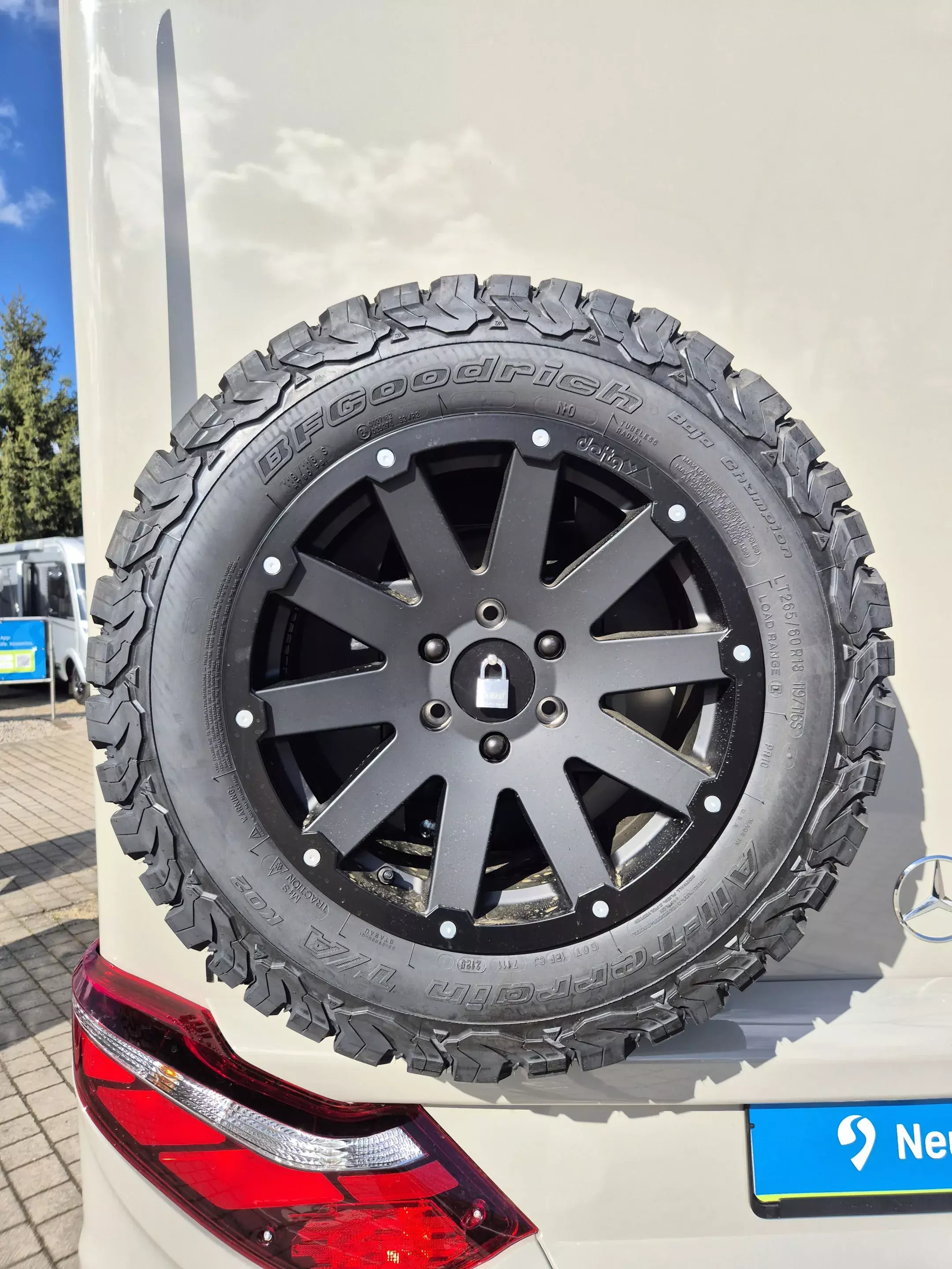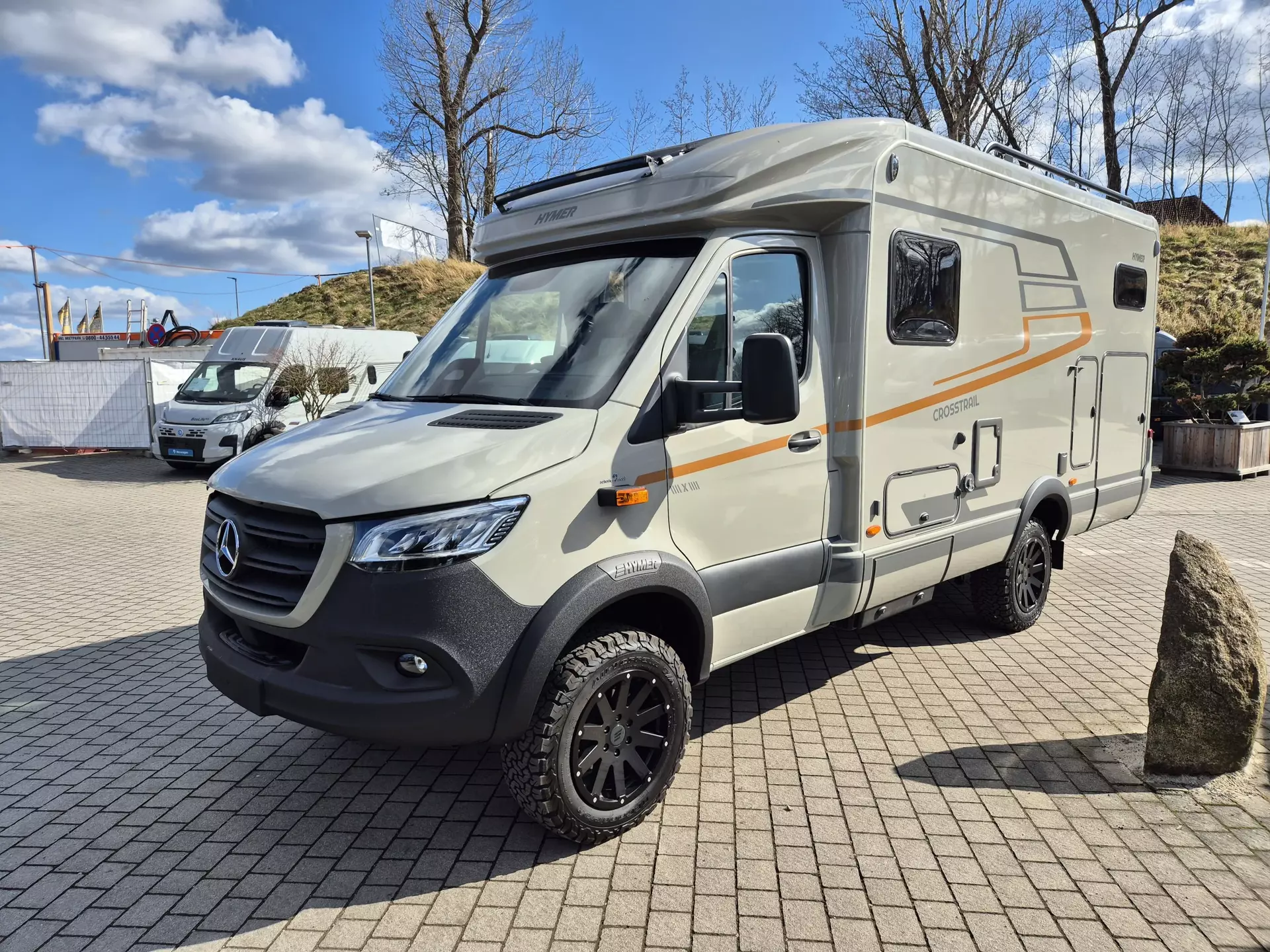 - CrossTrail Paket (Teil 1): Mercedes-Benz Sprinter 4,1 t - 140 KW/ 190 PS, Außenfarbe Fahrerhaus und Aufbau Steingrau Pastell, Allradantrieb, Automatikgetriebe 9G-TRONIC, LED-High-Performance-Scheinwerfer, Nebelscheinwerfer mit Abbiegelicht, Stoßfänger mit Raptorlack beschichtet, Windschutzscheibe beheizbar, 18" Leichtmetallräder Delta Hanma (schwarz) mit Stollenbereifung (All-Terrain), 18" Delta Reserverad inkl. Stollenbereifung und Halterung außen an Heckwand, Smartphoneablage mit wireless charging, Ladepaket Instrumententafel mit 2x USB-C Stecker 5V / 1x 12V-Steckdose.