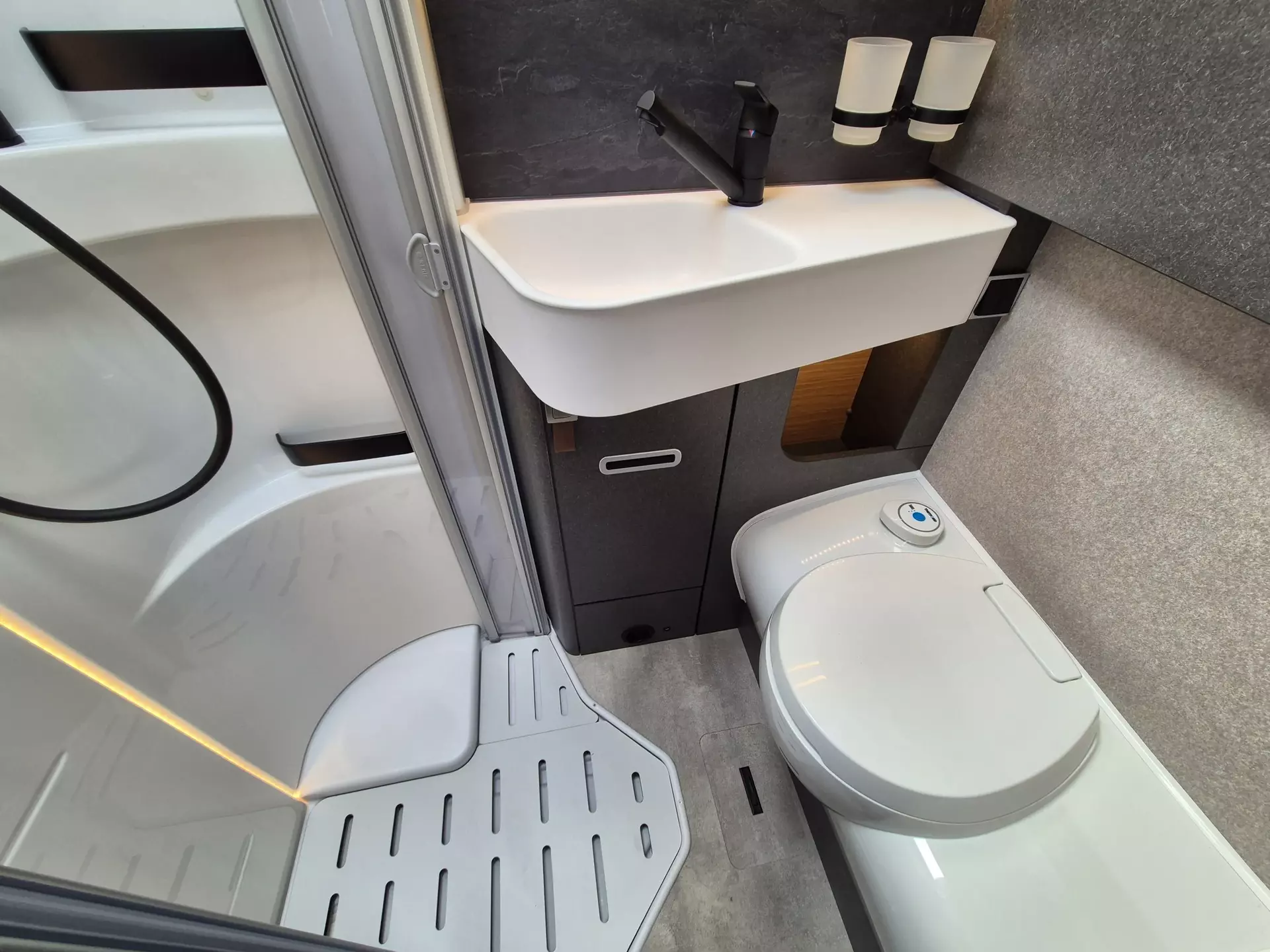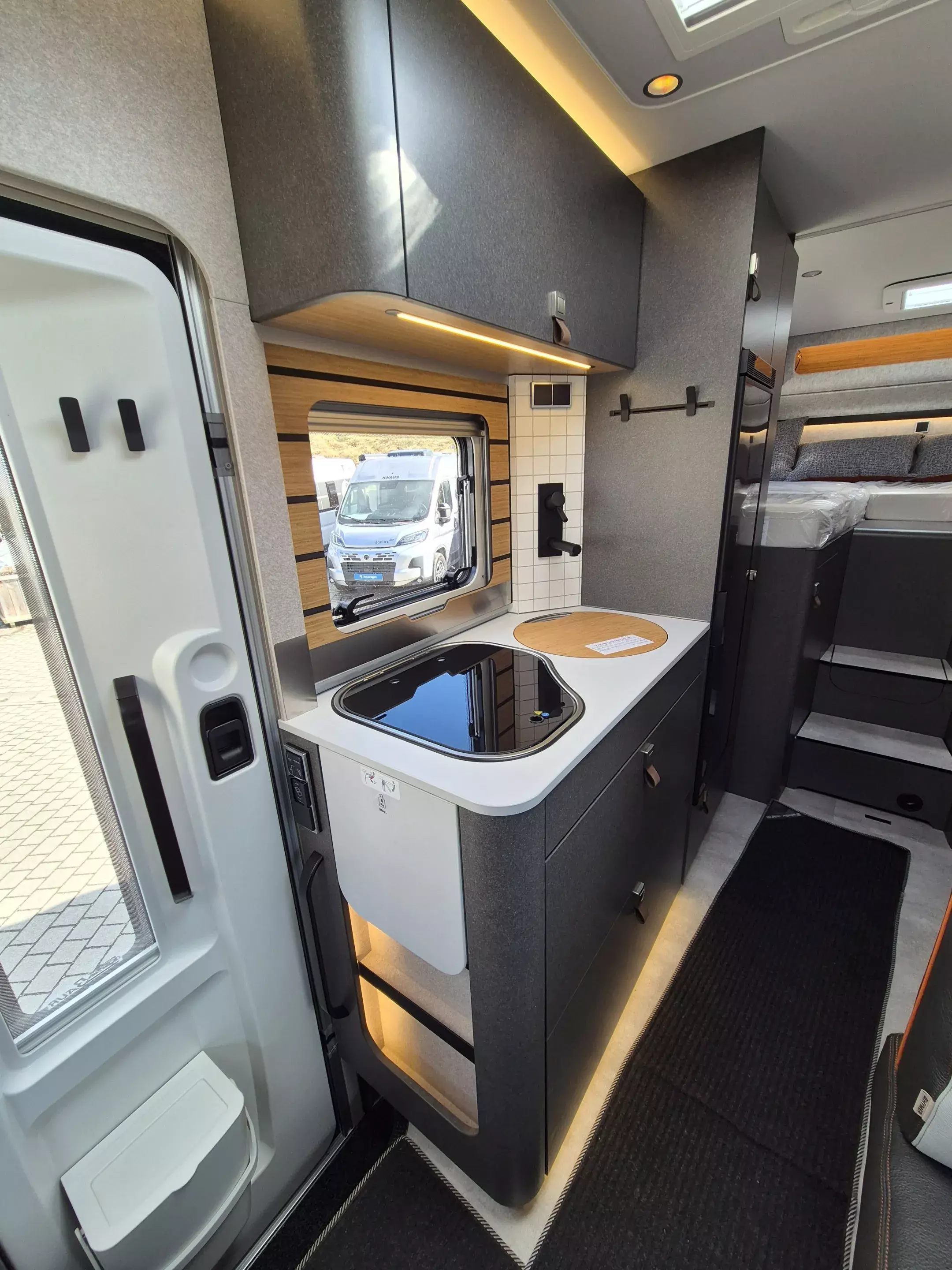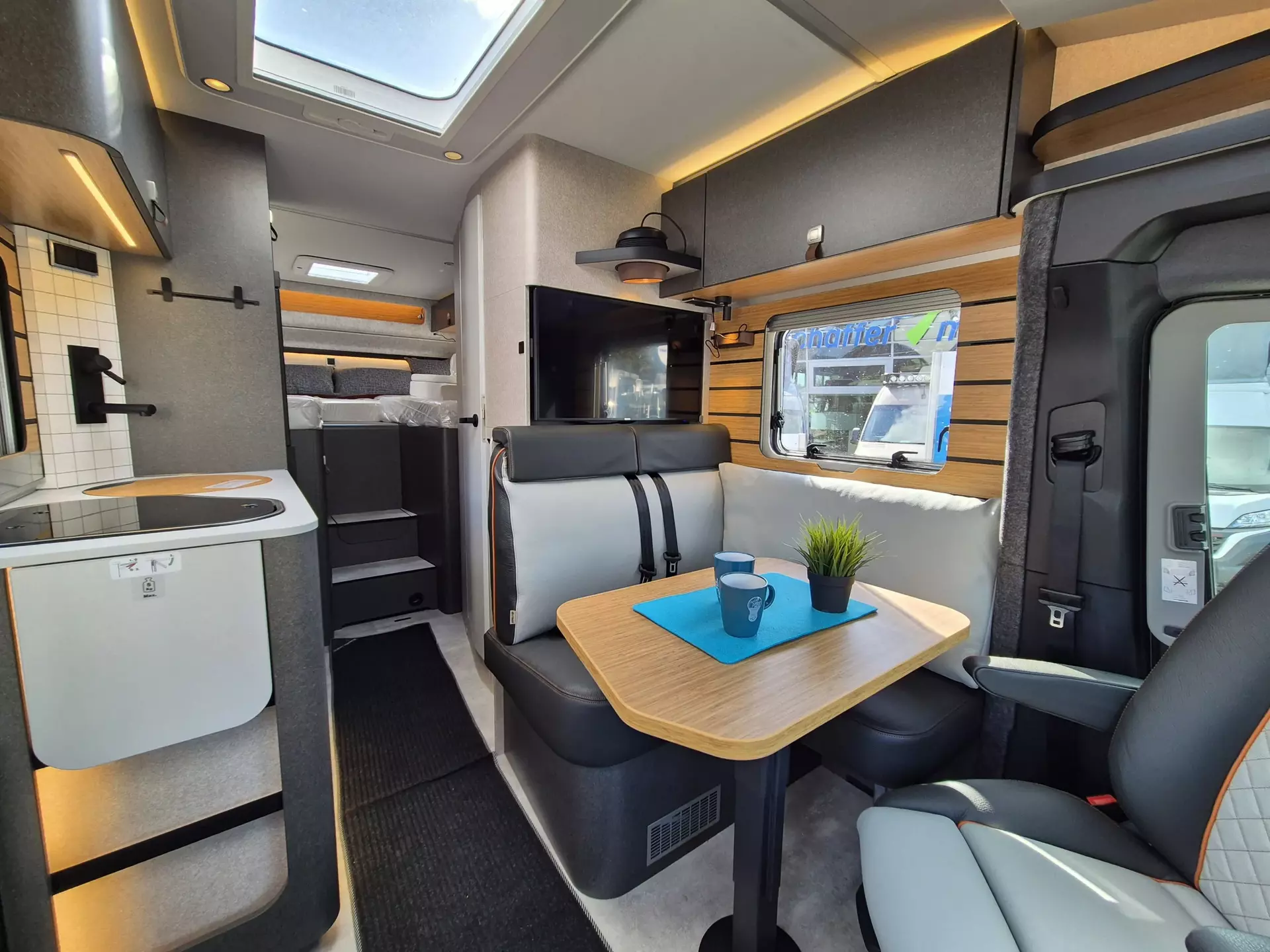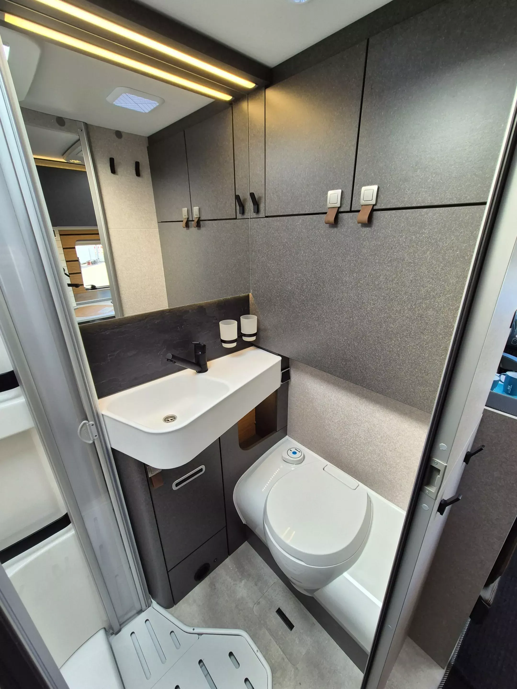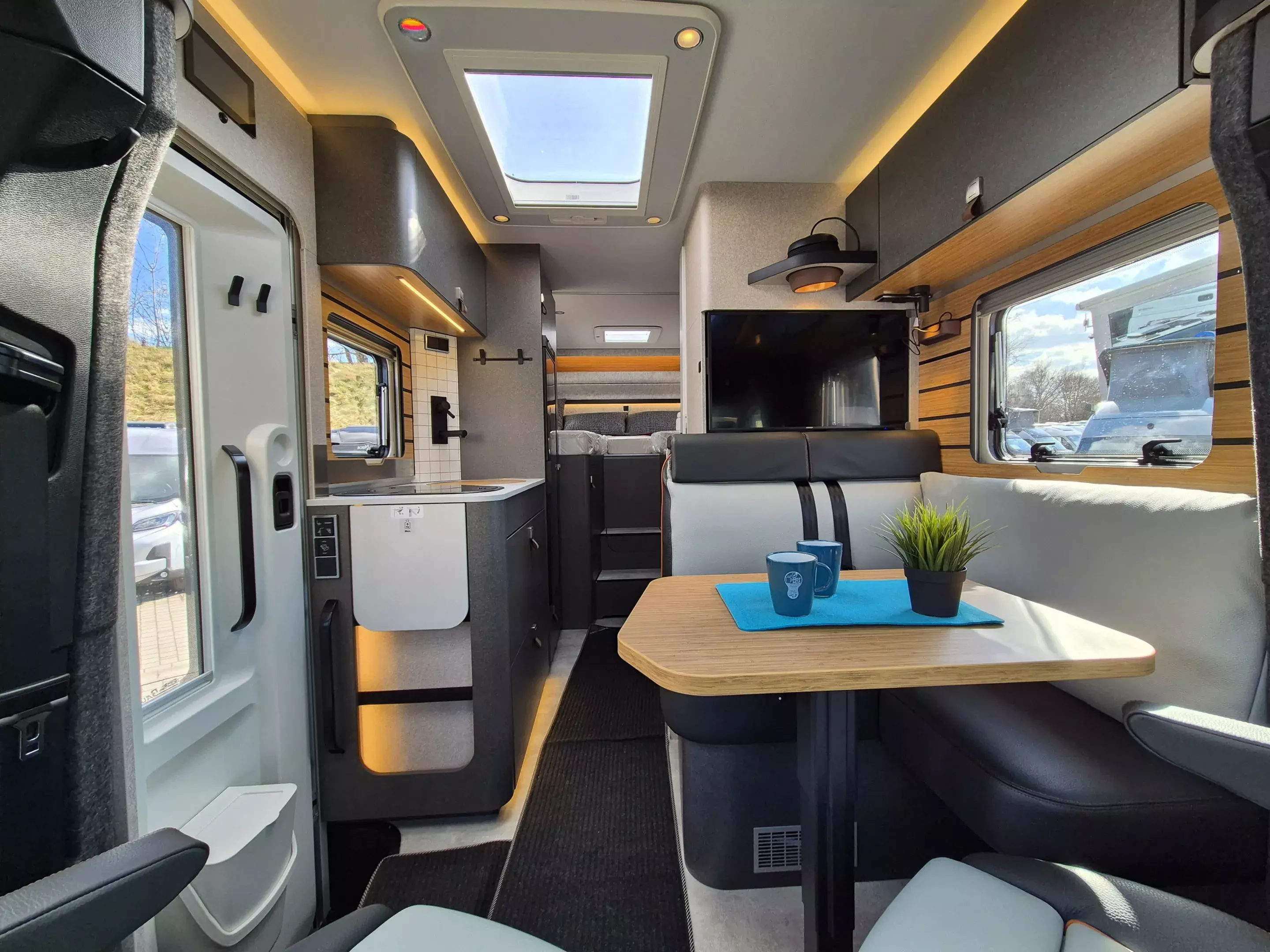 - CrossTrail Paket (Teil 4): Zweite Toilettenkassette inkl. Halterung, Ambient-Light-System: Mehr-Ebenen Lichtsystem mit dynamischer und individueller Steuerung der Beleuchtung sowie stimmungsvoller Sockelbeleuchtung, Lichtpaket (Multifunktionale Pendelleuchte sowie eine Ambiente-Leseleuchte für die Multifunktionswände, 1.800 W Elektroheizstab (für 6 kW Diesel-Warmluftheizung), HYMER-Smart-Battery-System 2.0 - zusätzlich 3x 80 Ah LFP (Gesamtleistung 320 Ah), 5G-WLAN-Router mit Außenantenne und Dual-SIM-Slot (SIM-Karte nicht inbegriffen).