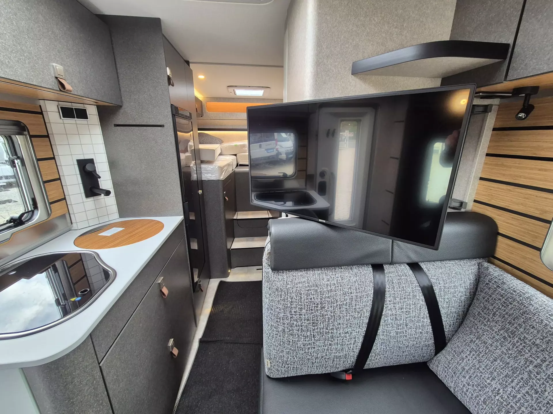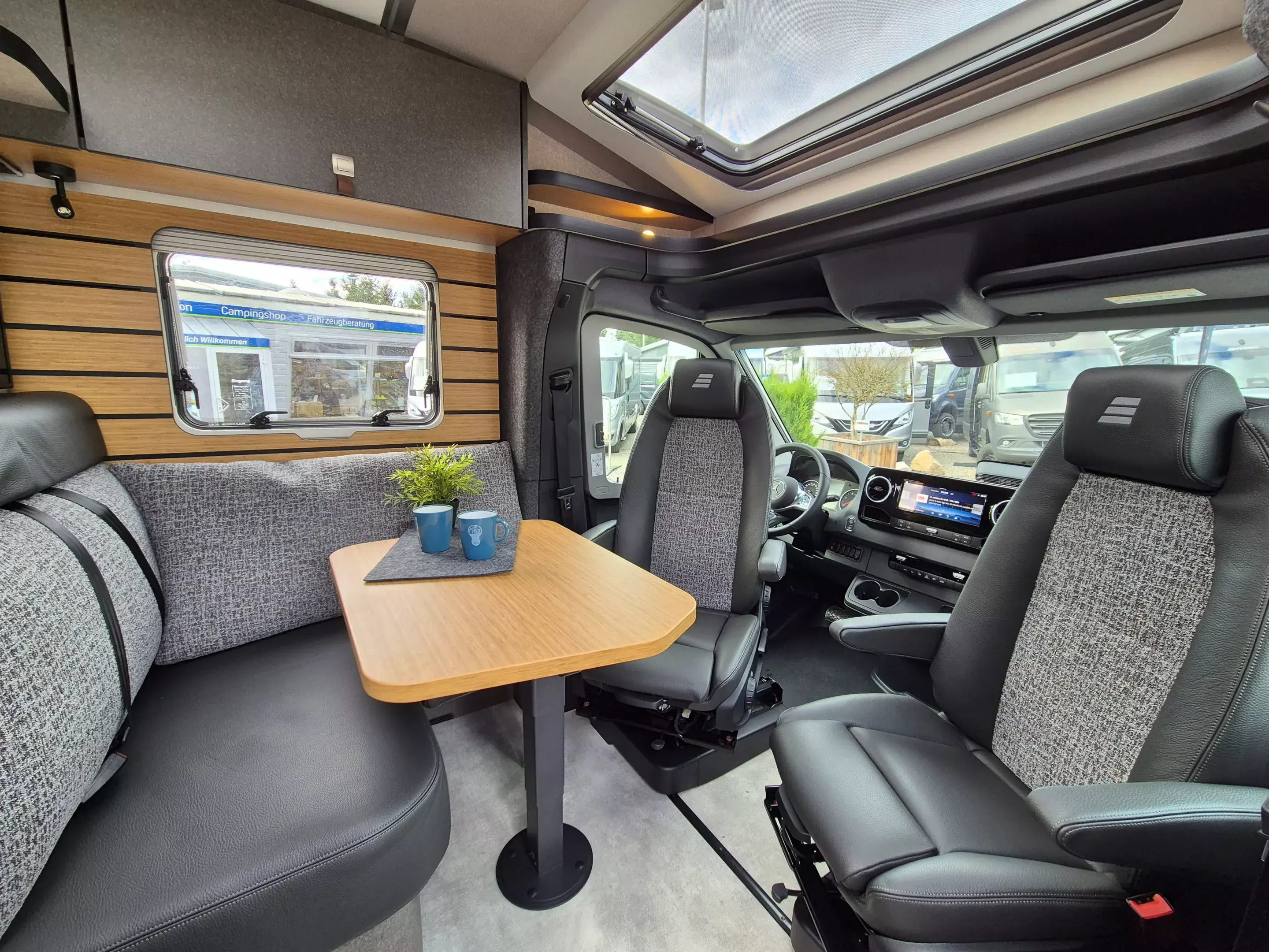 - Edition - Xperience Exterieur/Interieur: Markise inkl. LED-Beleuchtung, Gehäuse schwarz, 400 x 250 cm, Komfort-Eingangstür mit Fenster, Verdunkelungsrollo, integriertem Mülleimer und 2-fach Verriegelung, Bettenbau für Komfort L-Sitzgruppe inkl. Zusatzpolster und absenkbarem Tisch unter Einbeziehung des Fahrersitzes, Komfort L-Sitzgruppe mit Loungepolstern, längs-/quer verschiebbarem Tisch und 2 integrierten 3-Punkt-Gurten, Schlafsystem mit Tellerfederrost für Heckbett(en), Zusatzpolster zwischen den Längseinzelbetten inkl. integrierter Komfortaufstieg, 4 Kissen mit Bezug, MBUX 10,25" Mult