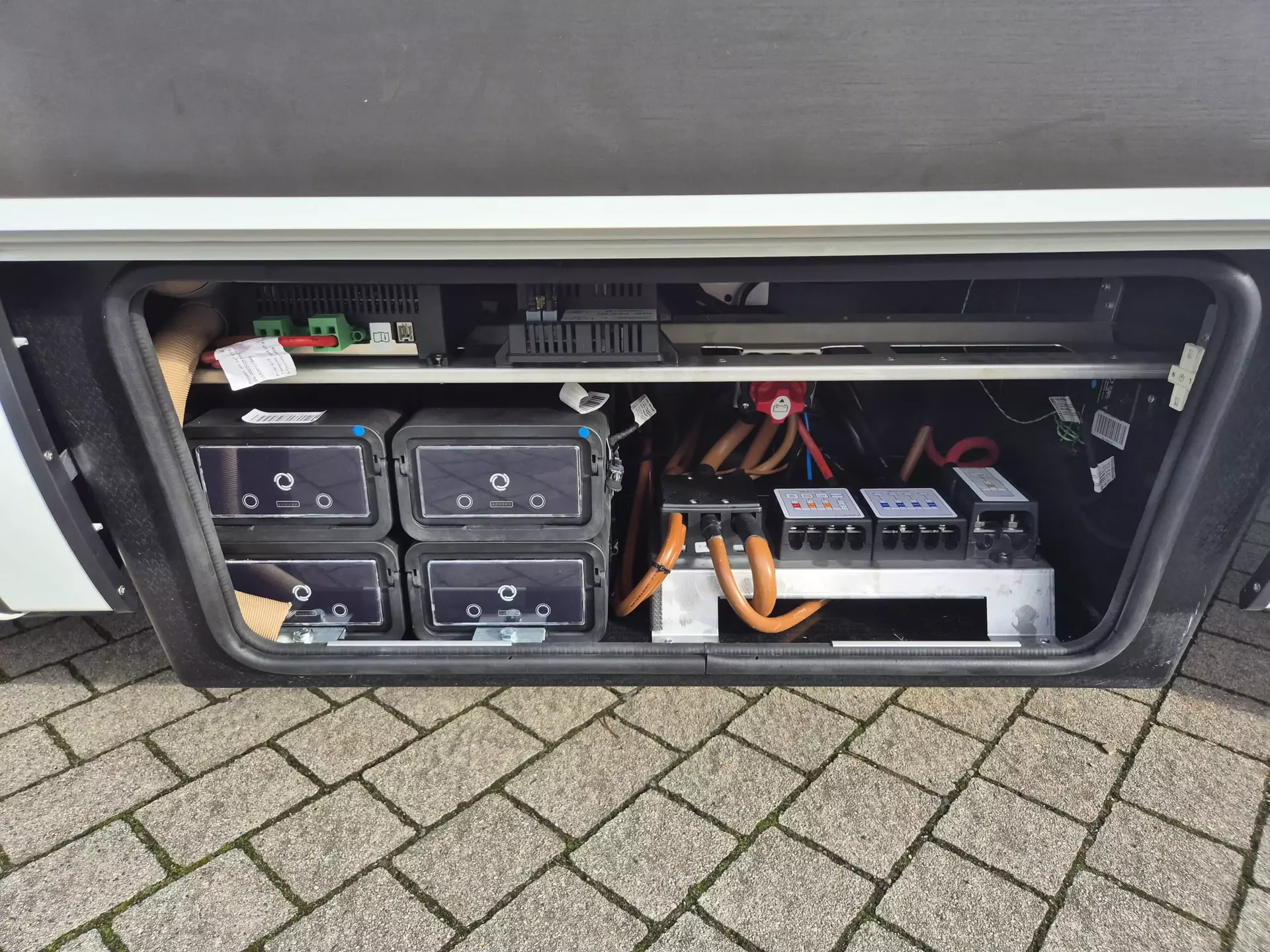 - Autarkie-Paket Lithium XL: HYMER-Smart-Battery-System 2.0: Zweite Aufbaubatterie 80 Ah LFP inkl. Zusatzlader HYMER-Smart-Battery-System 2.0: Dritte Aufbaubatterie 160 Ah LFP Wechselrichter 12 V auf 230 V, 1800 Watt mit Netzvorrangschaltung