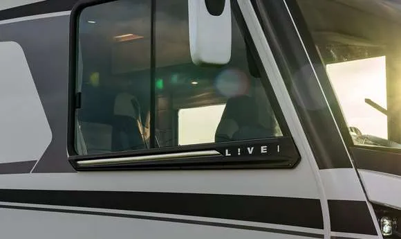 Fahrerhaus - Seitenfenster mit schwarzem Rahmen, Sideblade unter den Seitenfenstern mit Chromapplikationen ink. Baureihenbeschriftung