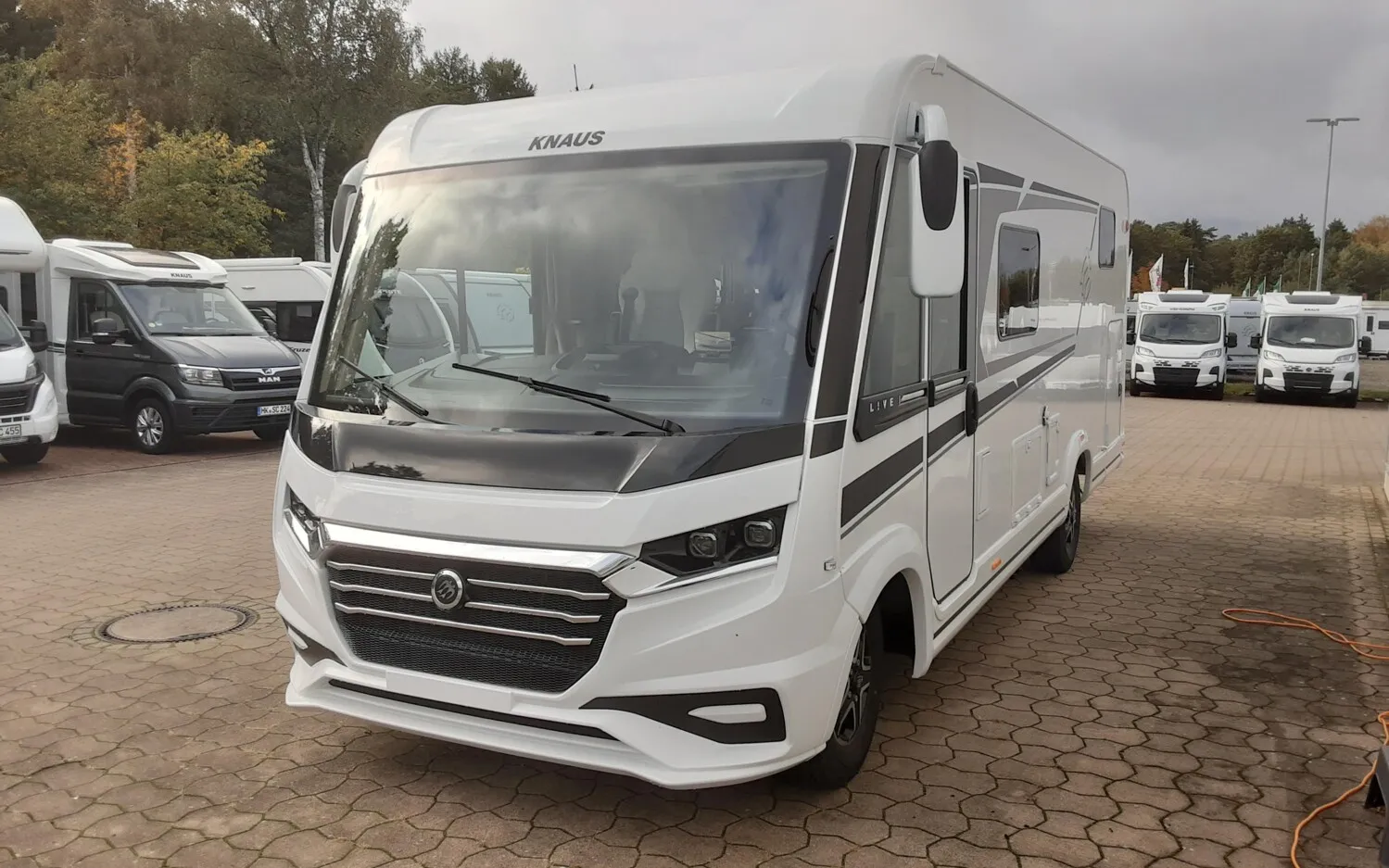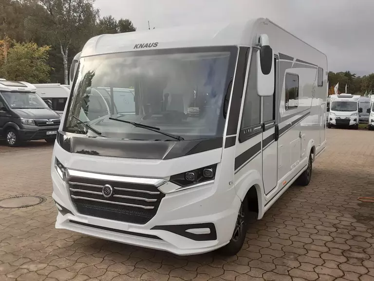- Styling-Paket L!VE I (16" Bereifung, Leichtmetallfelgen für Serienbereifung, KNAUS Embleme im Bug und im Heck, schwarz/chrom, Chromapplikationen im Kühlergrill, Fahrerhaus-Seitenfenster mit schwarzem Rahmen, Sideblade unter den Seitenfenstern mit Chromapplikation inkl. Baureihenschriftzug, Hochwertige Foliengrafik mit Elementen in Carbonoptik)