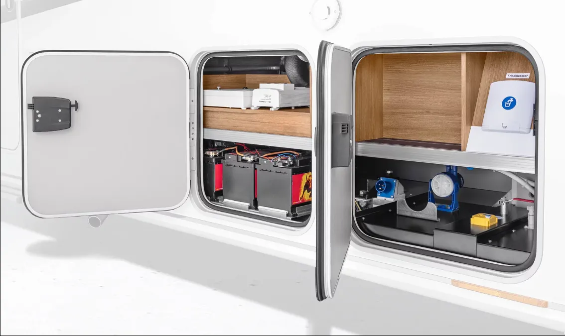 - SUN I Paket: Außenspiegel elektrisch einstell- und beheizbar / Höhenverstellung für Fahrerhaussitze / Lenkrad mit Bedienelementen für Radio / Wasserfiltersystem „BWT – Best-Camp S“ / Dachhaube (Hebe-Kipp) 70 x 50 cm klar, mit Beleuchtung, Insektenschutz und Verdunklung (Bug)