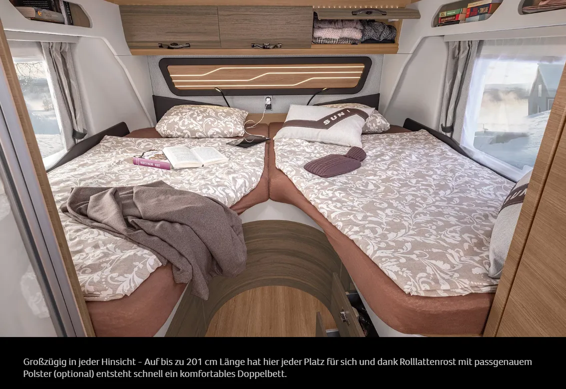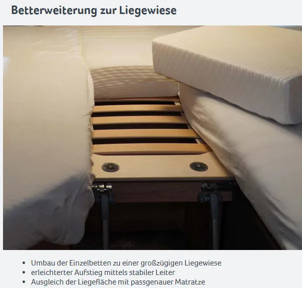| Betten | Einzelbett, Hubbett, Doppelbett längs |