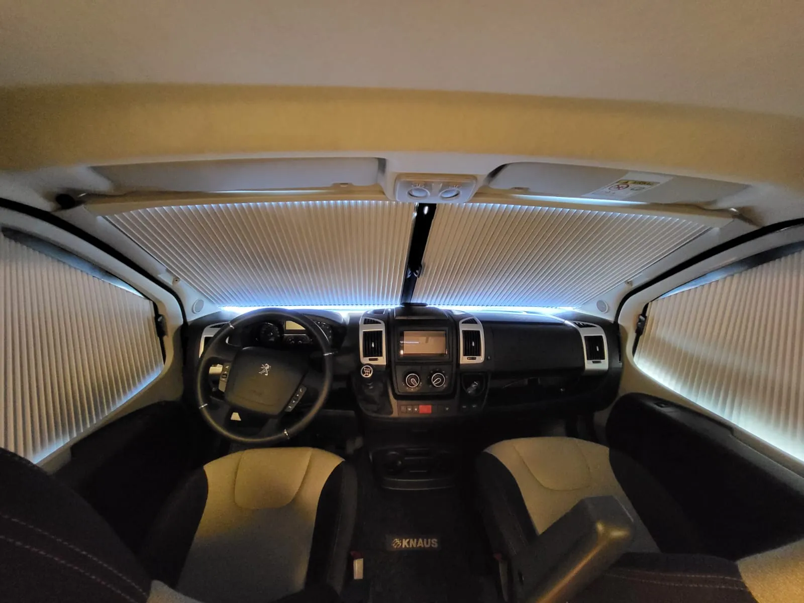 - VERMIETER-Paket – Basic KNAUS Camper Vans (PEUGEOT): (Fahrradträger für 2 Räder, Heck, Fußmattenset im Fahrerhaus im KNAUS Design, PIONEER Media-Center 6,8" (SPH/DA160DAB), Zusätzliche Bezugsstoffgarnitur für Wohnraumpolster, Tischfußverlängerung)