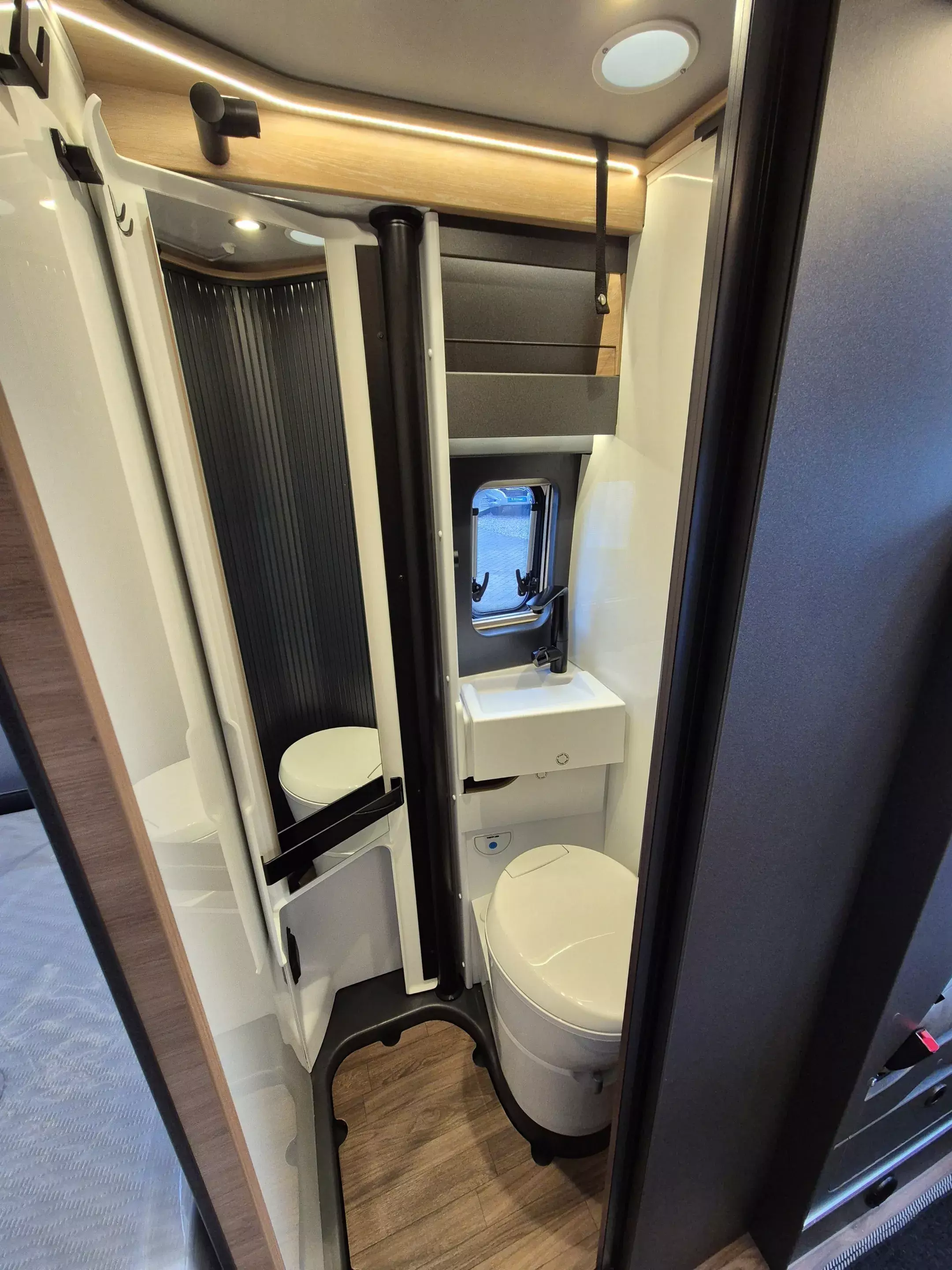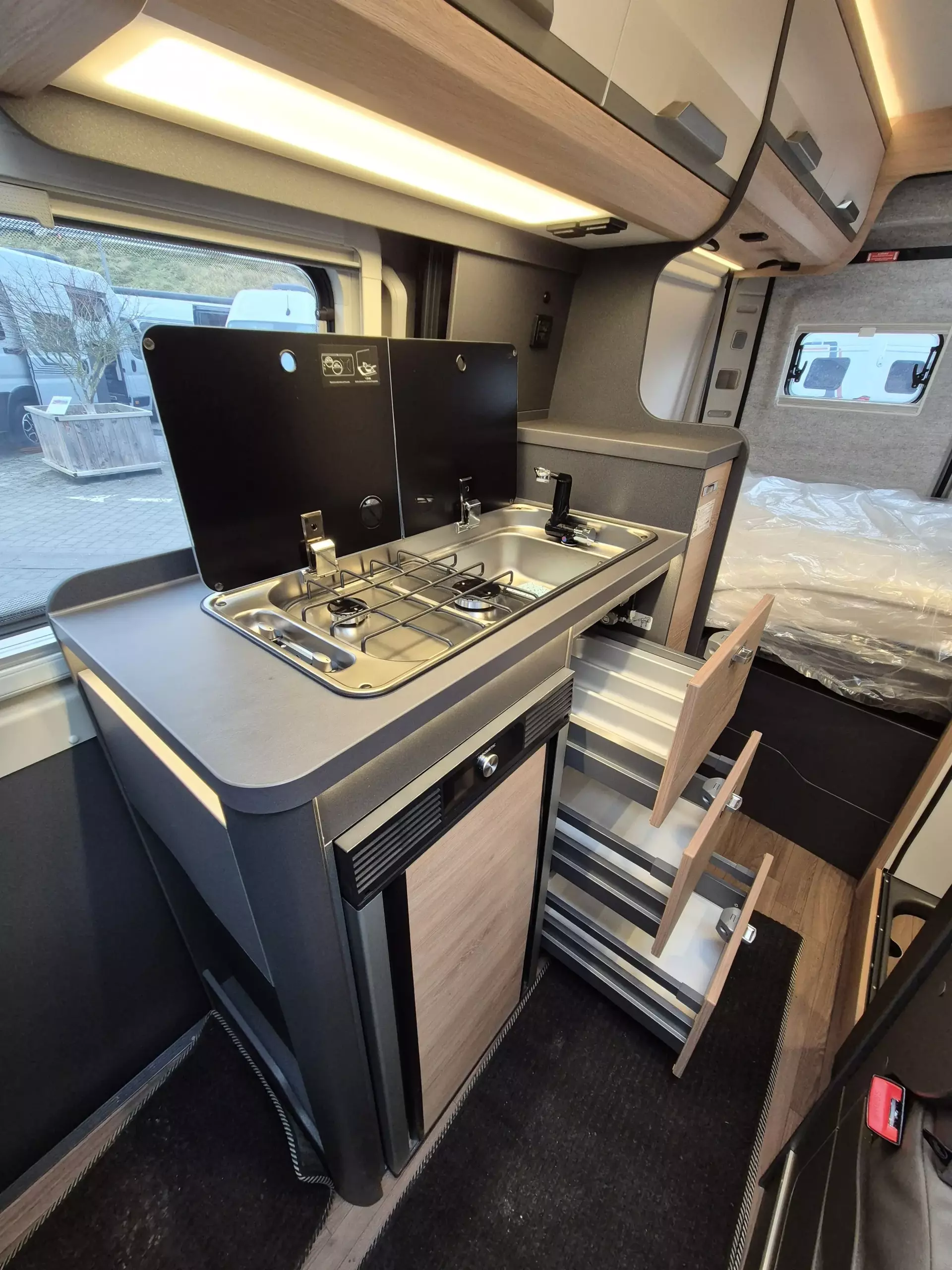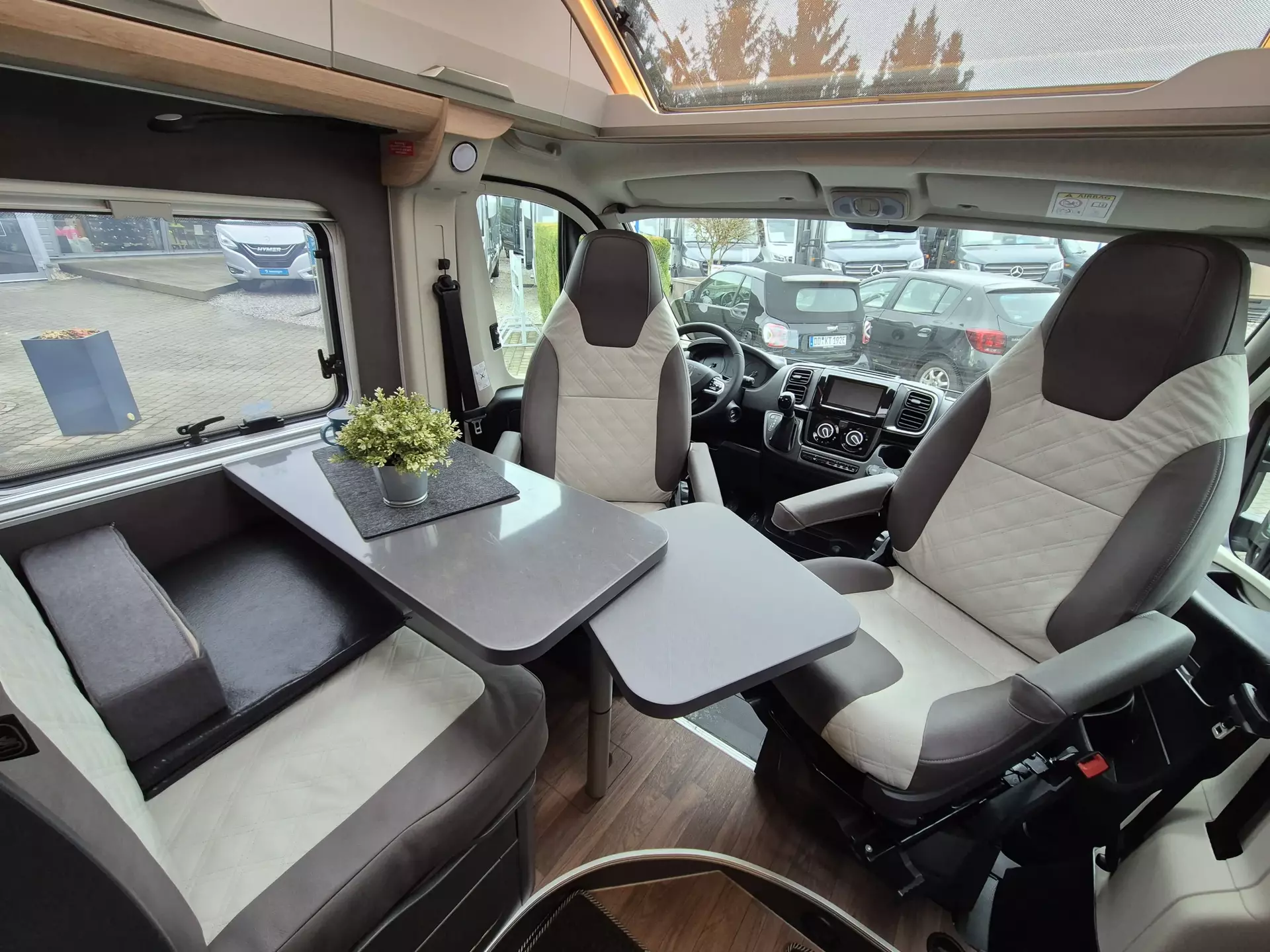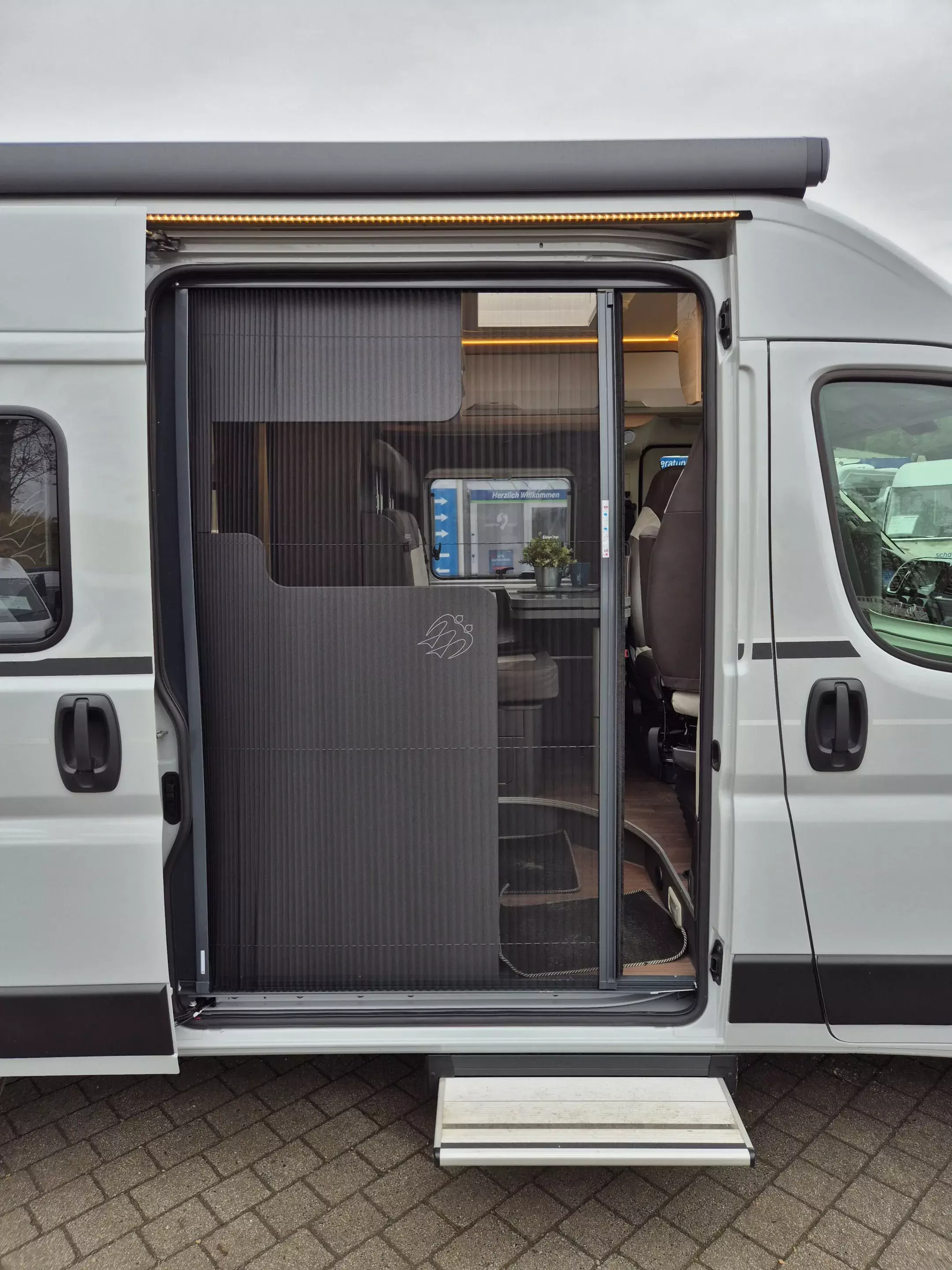 - Platinum Selection [2] (Regenrinne über der Schiebetür mit LED (dimmbar), Matratzentopper, Polster: Vegane Lederalternative "NATURAL STONE" "PLATINUM SELECTION", TRUMA CP-Plus, digitales Heizungsbedienpanel, Isolierhaube Abwassertank, beheizbar, Lichtsteuerung, Stimmungsvolle Ambientebeleuchtung, 230 V SCHUKO-Steckdose zusätzlich, im Heck (1 Stück), 230 V SCHUKO-Steckdose zusätzlich, im Deckenschrank Bug links (1 Stück), USB-Steckdose (1 Stück), im Toilettenraum, 12 V Powersteckdose (1 Stück), Kabelvorverlegung für Sat-Anlagen, Vorbereitung PV, Leselampe Schwanenhals im Sitzbereich inkl. USB-S